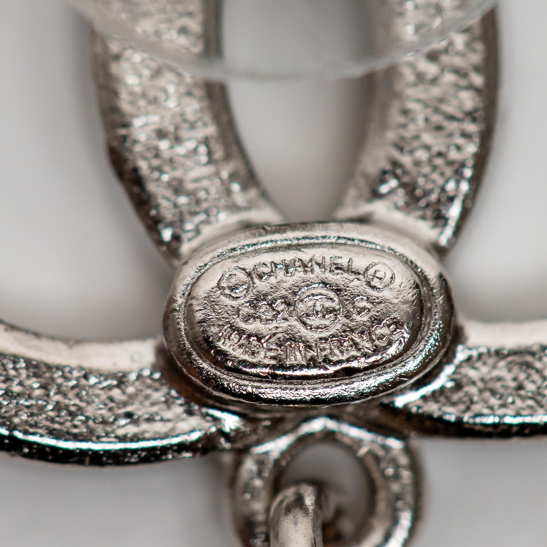 Chanel Silver Tone Pearl and Crystal Drop Earrings