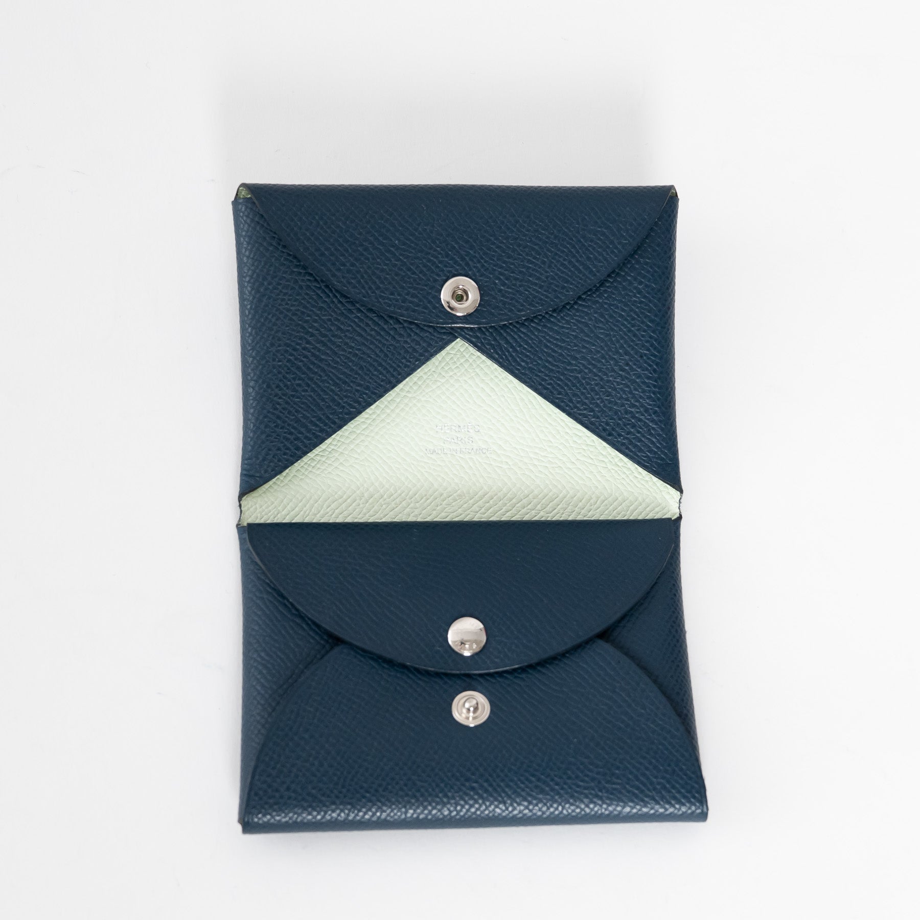 Hermes Bleu de Prusse & Vert Fizz Epsom Leather Calvi Verso Cardholder