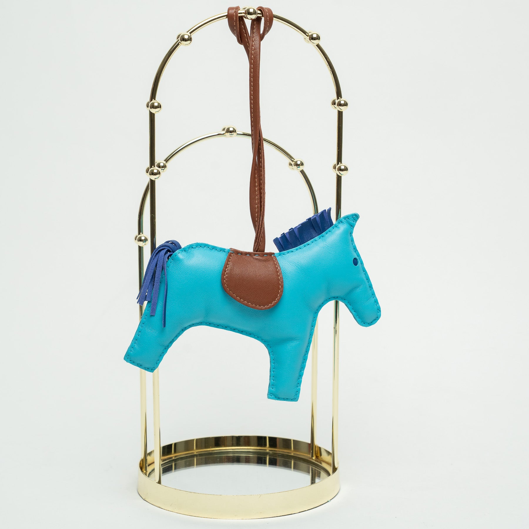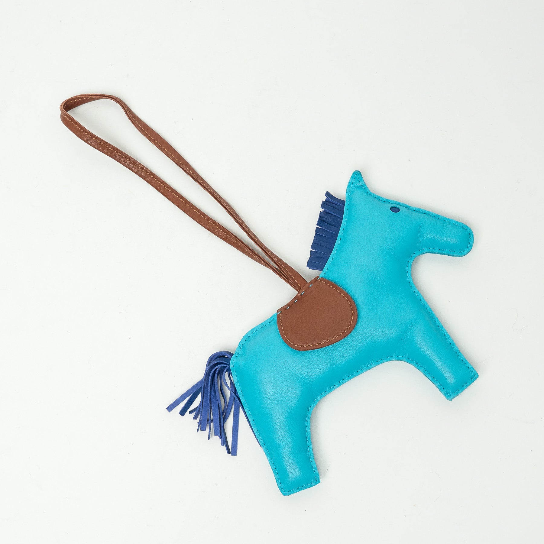 Hermes Blue and Brown Swift Leather Rodeo Bag Charm