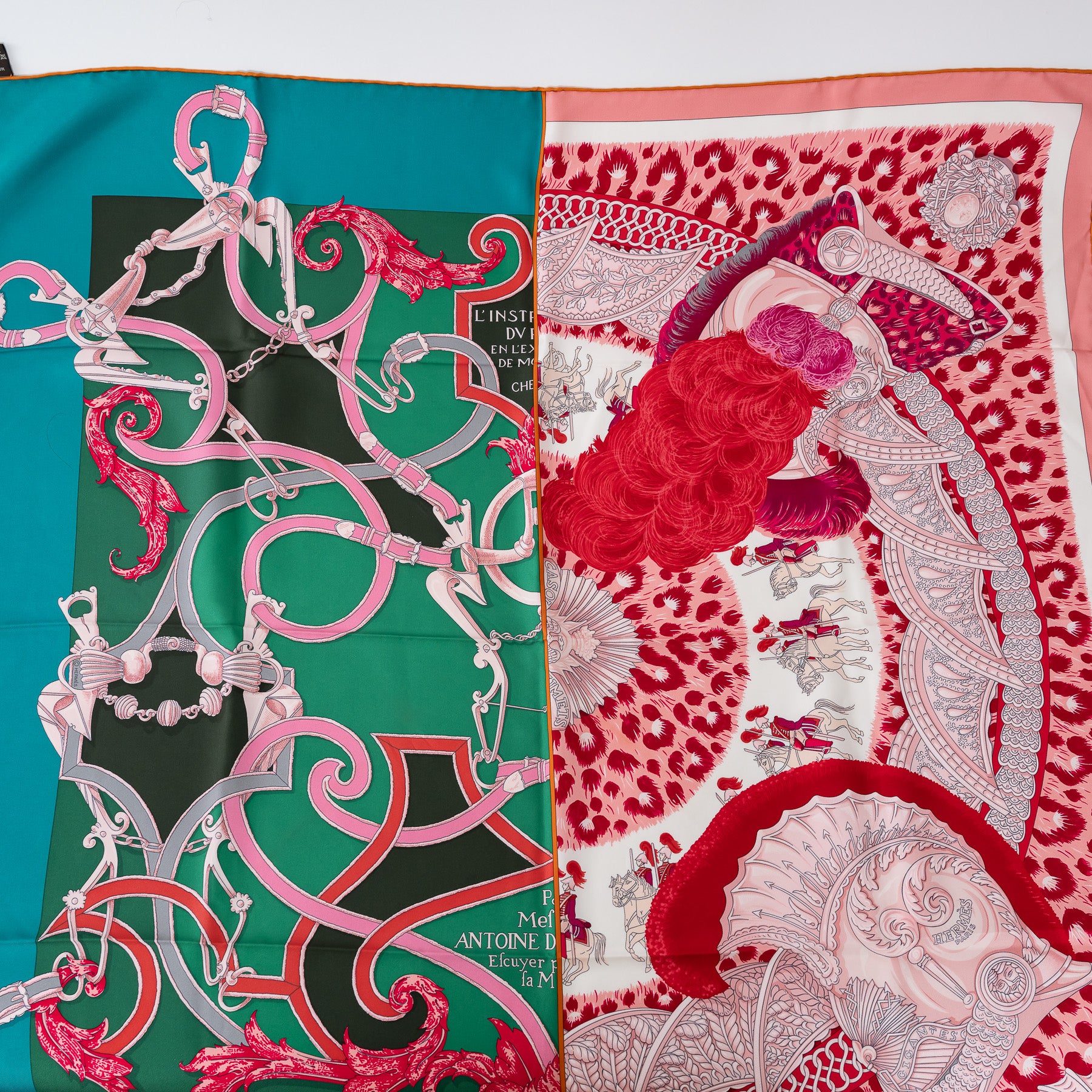 Hermes Red/Teal Silk Plumets du Roy Printed Scarf