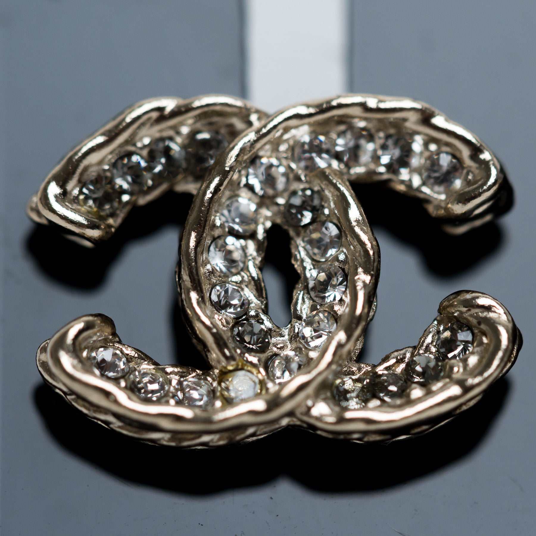 Pre-Loved Chanel™ Gold Tone Crystal Embellished Logo Stud Earrings