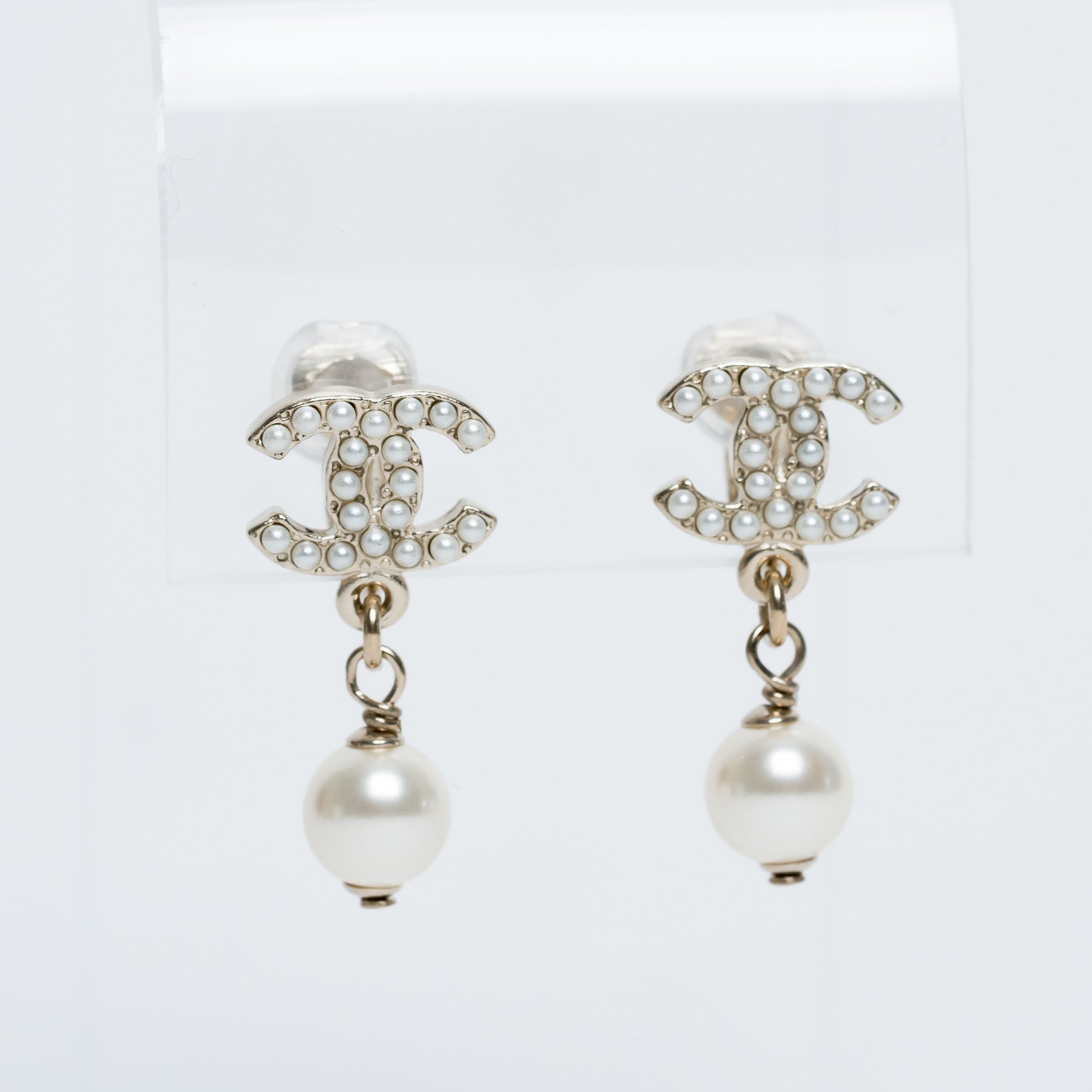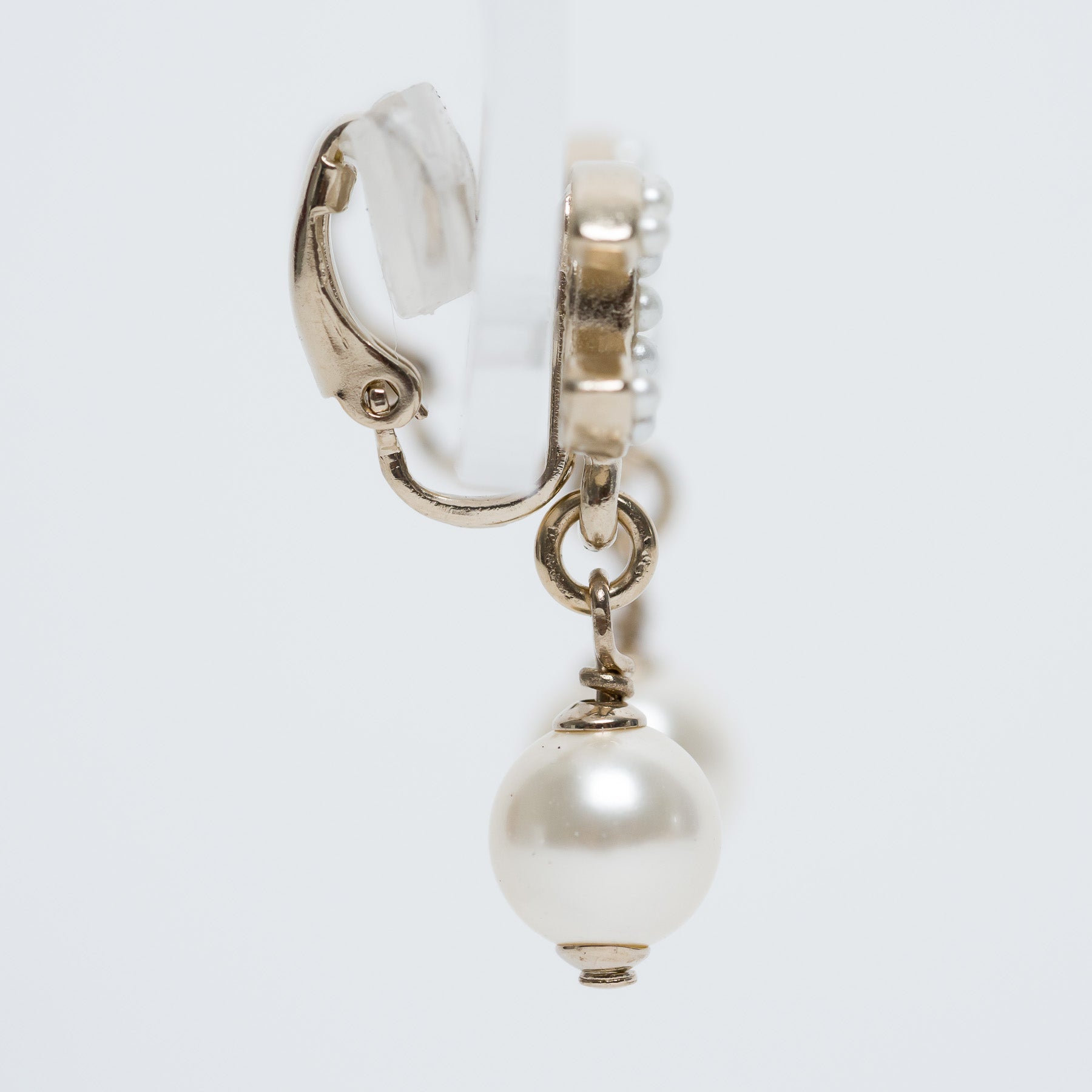 Pre-Loved Chanel™ Gold Tone Faux Pearl Inset & Pearl Drop Clip On Earrings