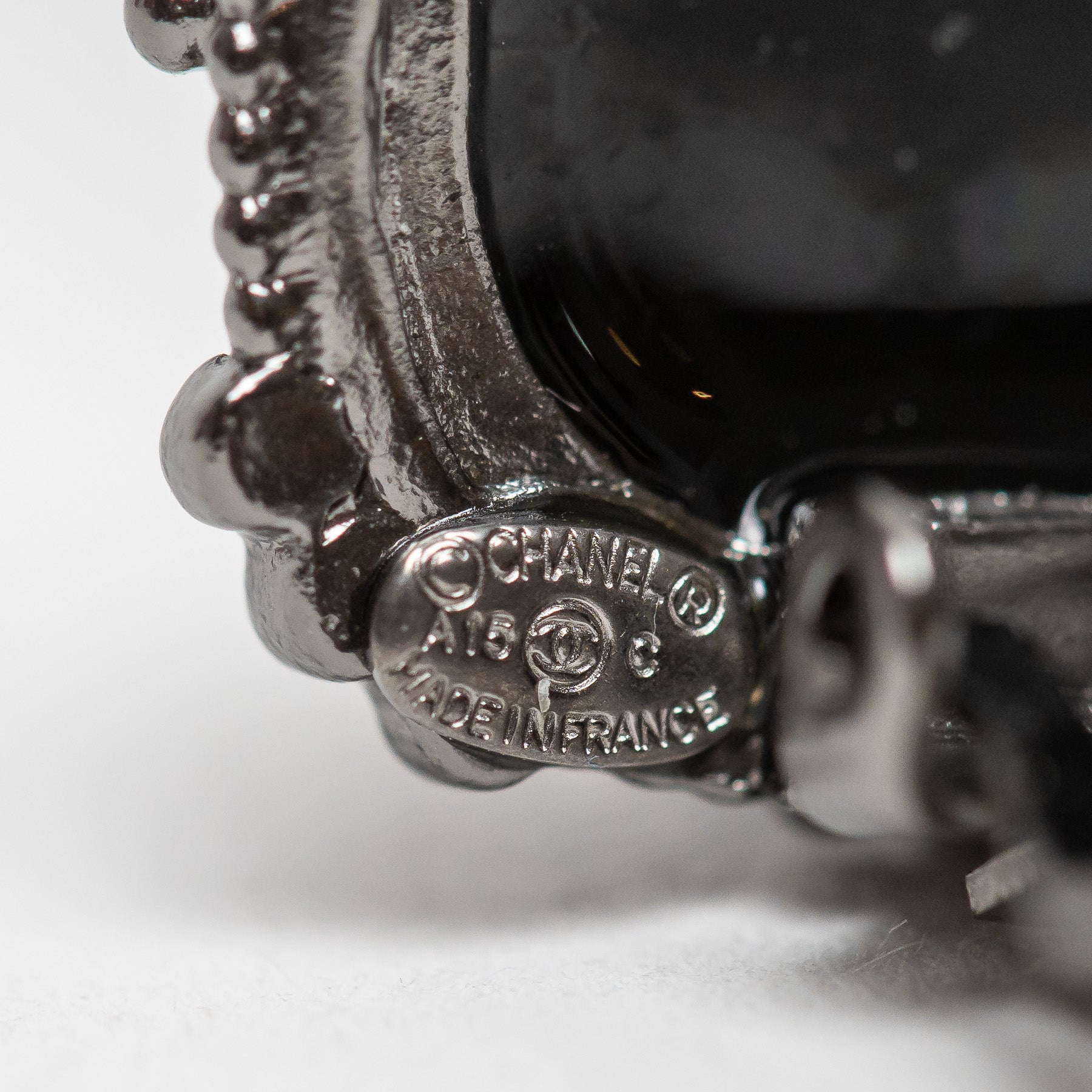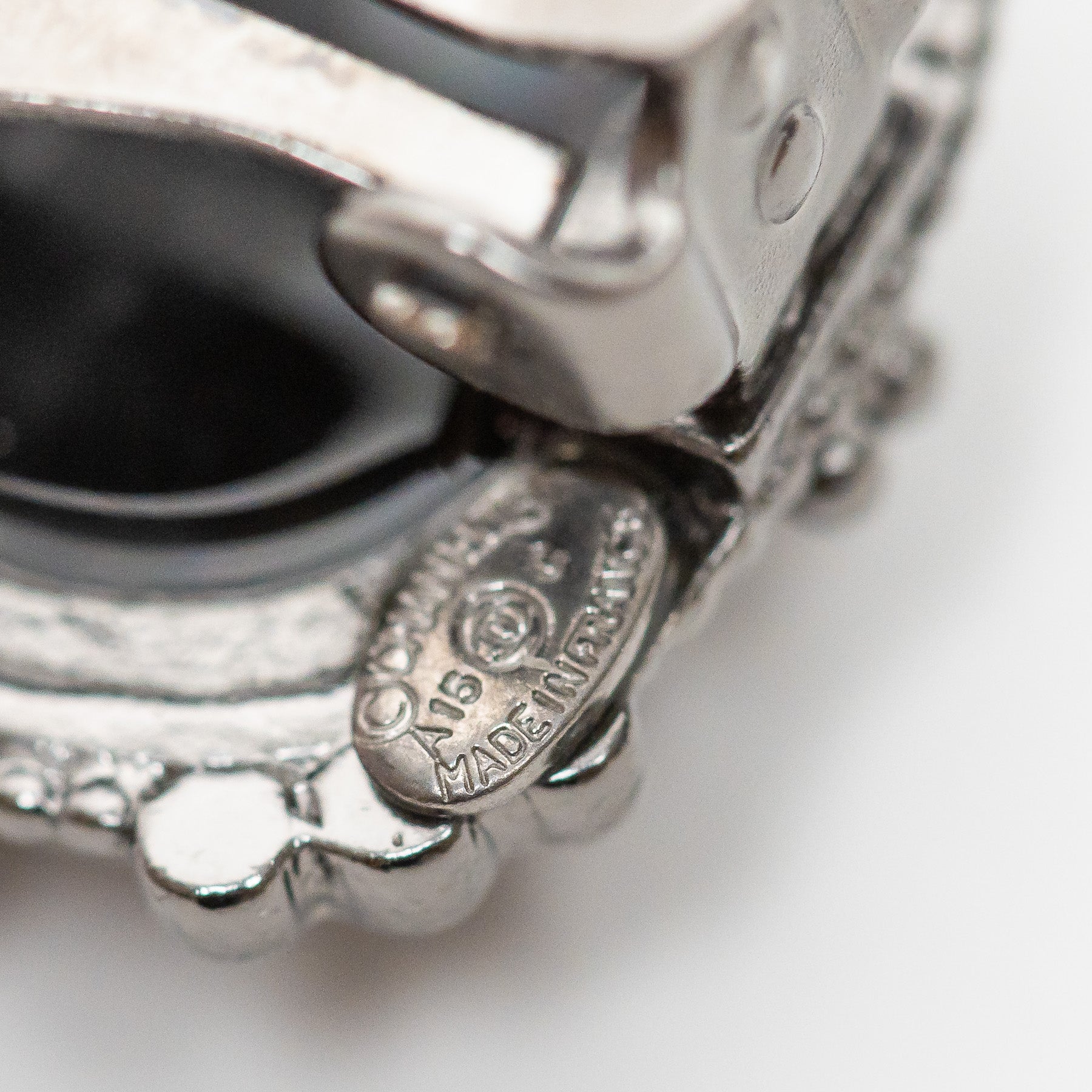 Pre-Loved Chanel™ Ruthenium Black Enamel Interlocking Logo Clip on Earrings