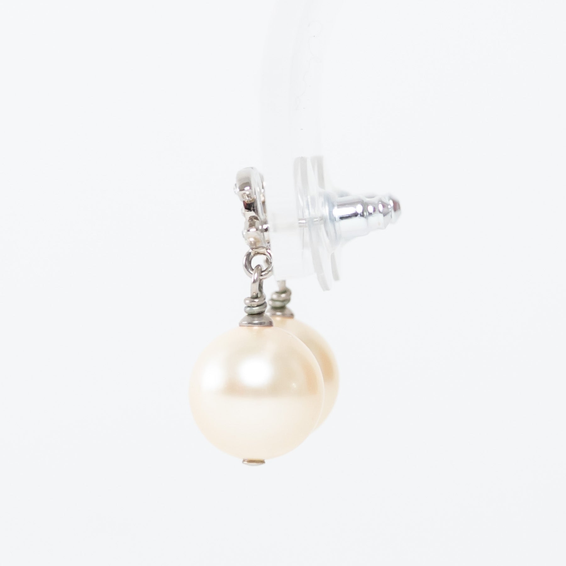 Pre-Loved Chanel™ Silver Tone Inset Crystal Pearl Drop Earrings