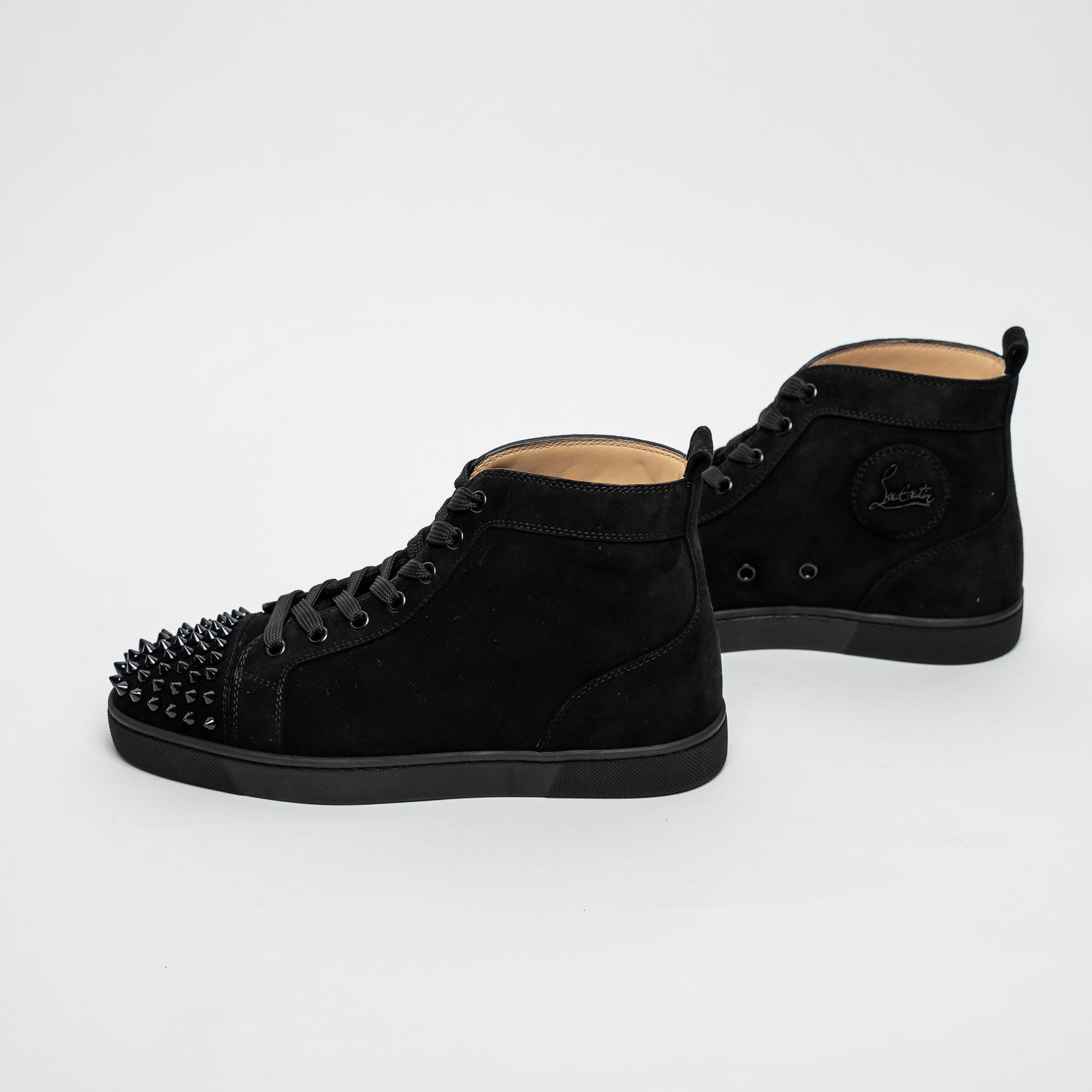 Christian Louboutin Black Suede Lou Spikes High-top Sneakers Size 39
