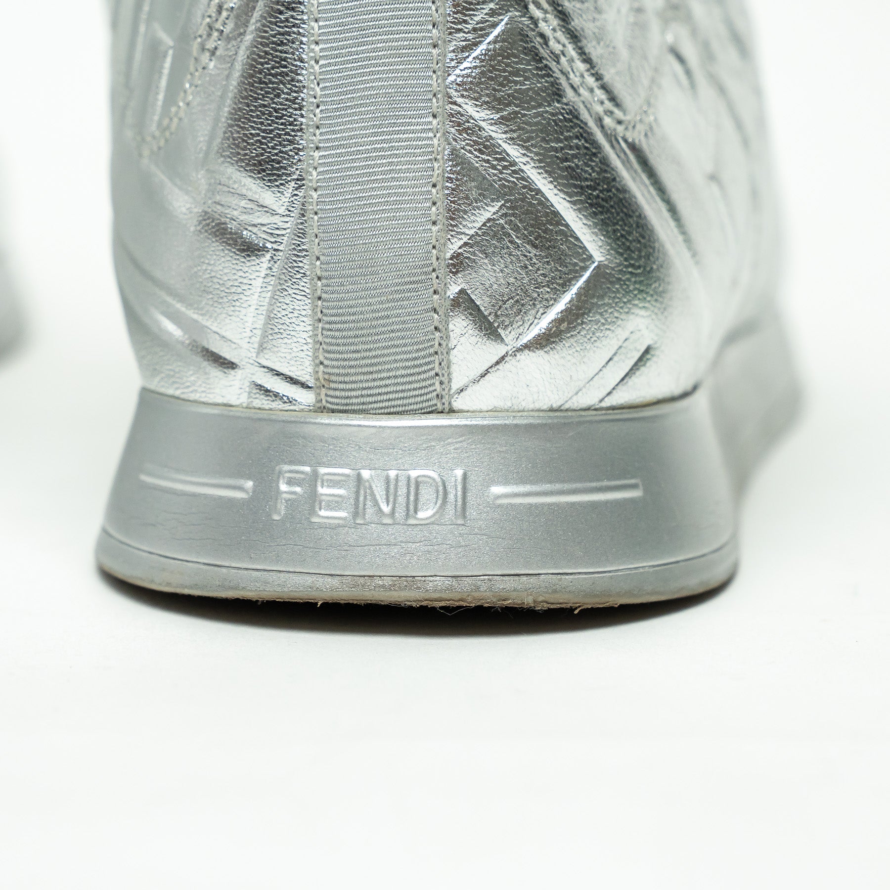 Fendi x Nicki Minaj Silver Grained Leather Prints On High Top Sneakers Size 39