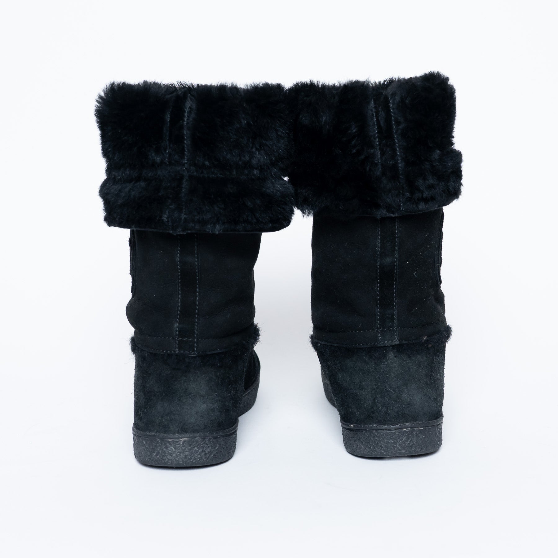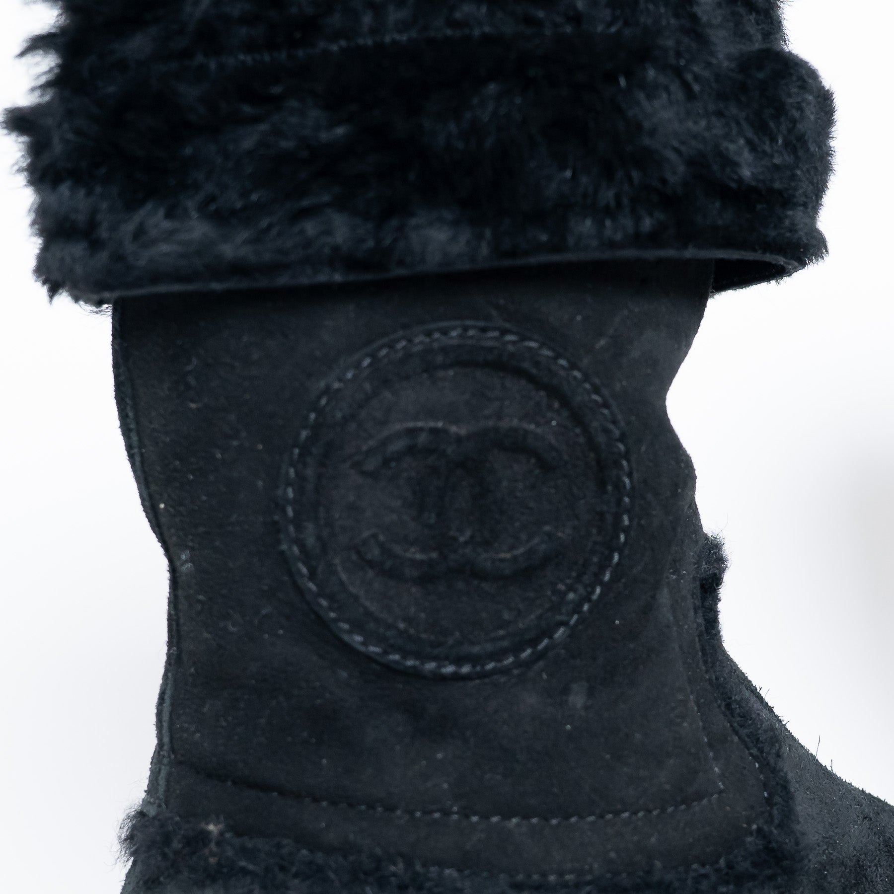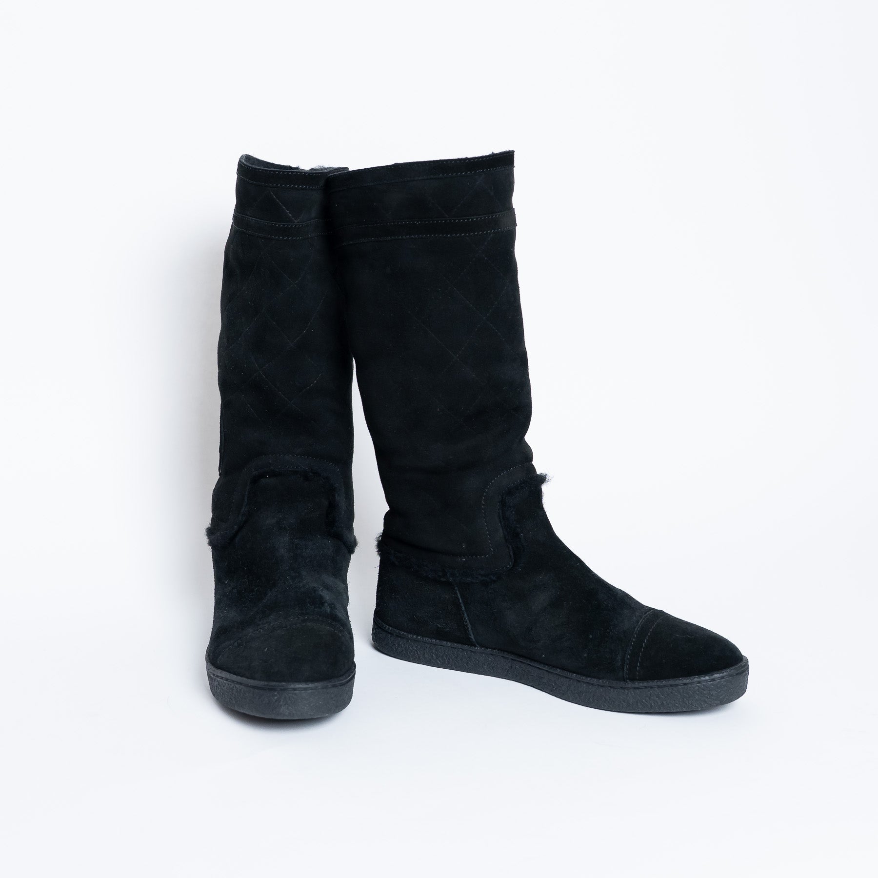 Pre-Loved Chanel™ Black Suede Faux Fur Lined Boots Size 38