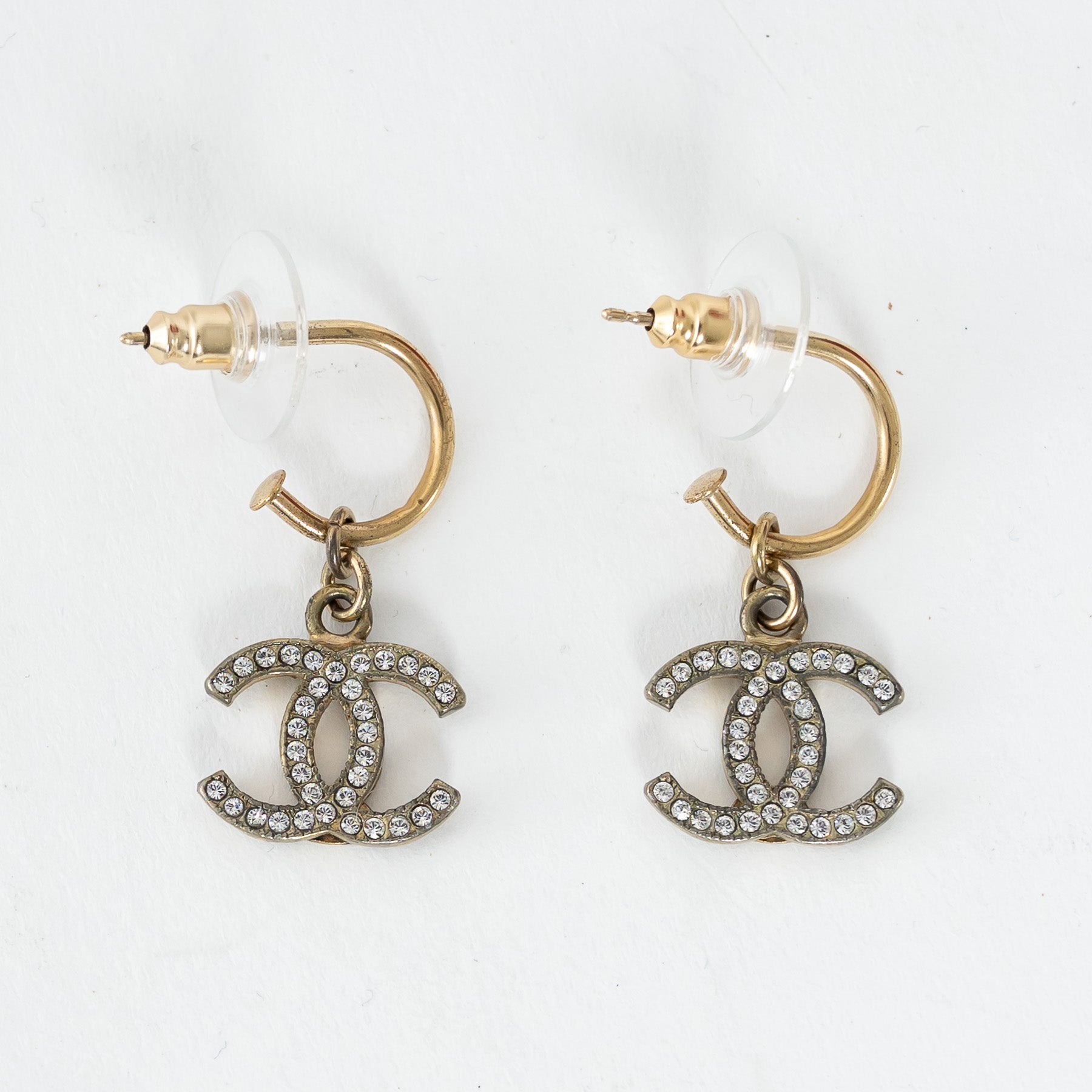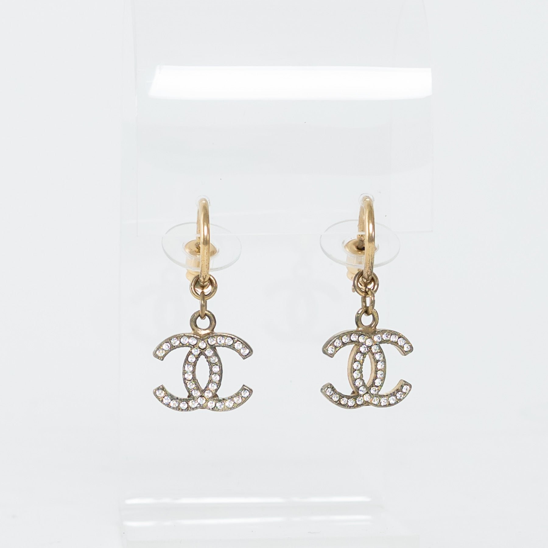 - Features: Hook earrings with classic interlocking letter motif and crystal embellishments throughout