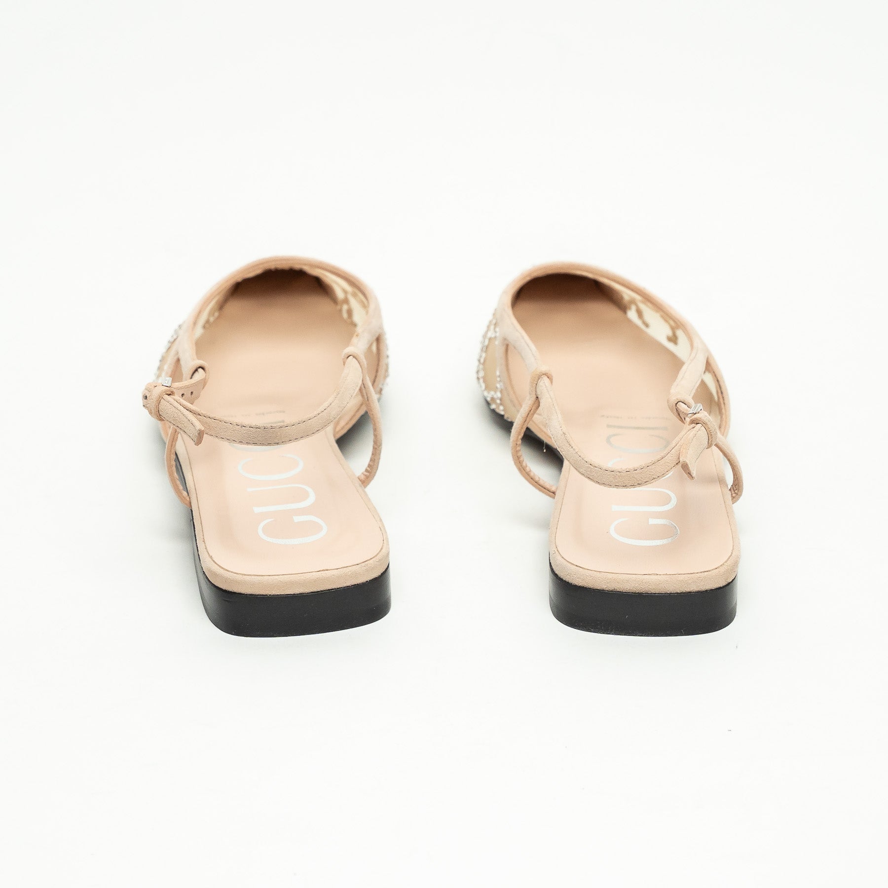 Gucci Beige Suede Mesh GG Crystal Embellished Slingback Sandals Size 36.5