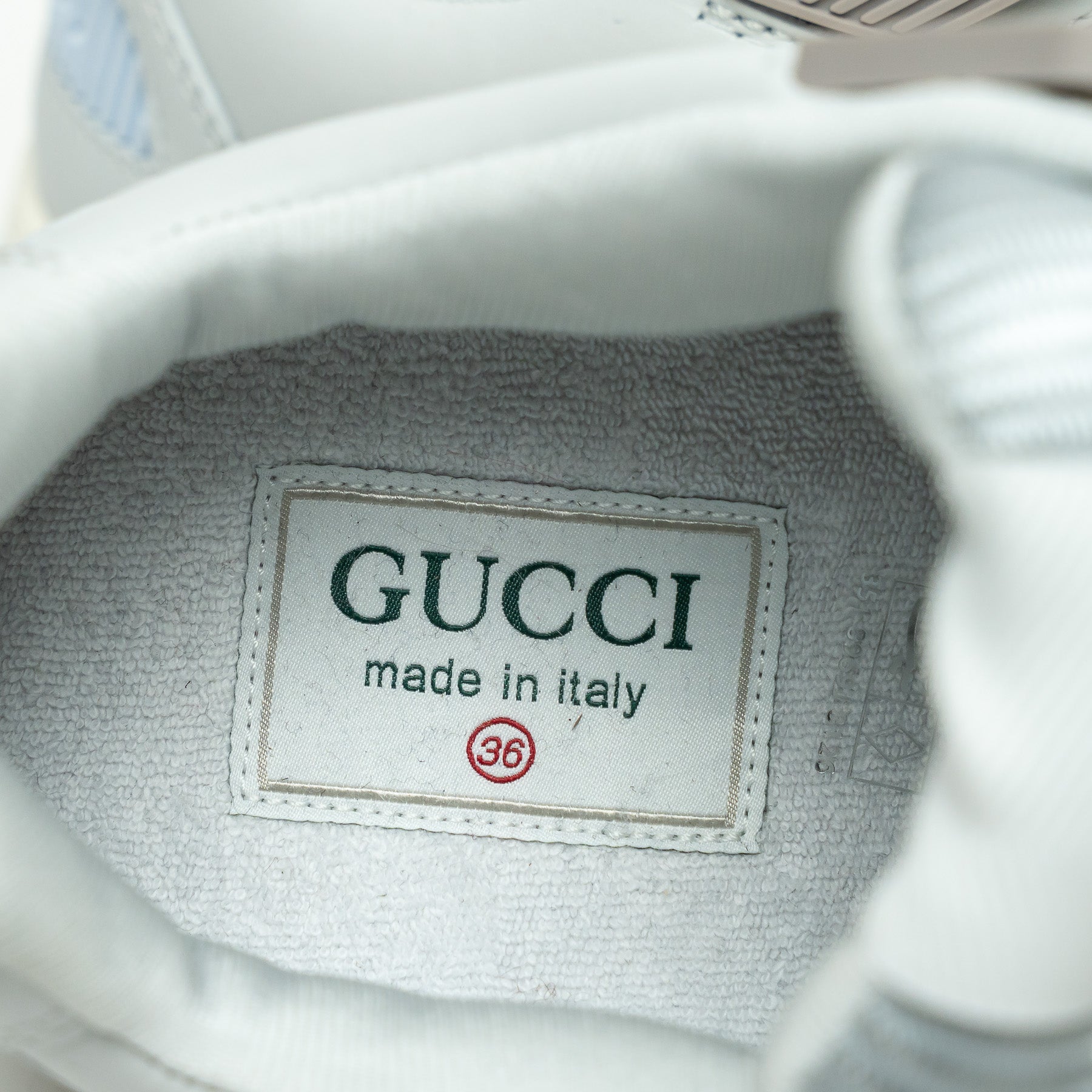 - Features: Interlocking silver GG deubre, Fabric tongue and sides, Terrycloth insoles