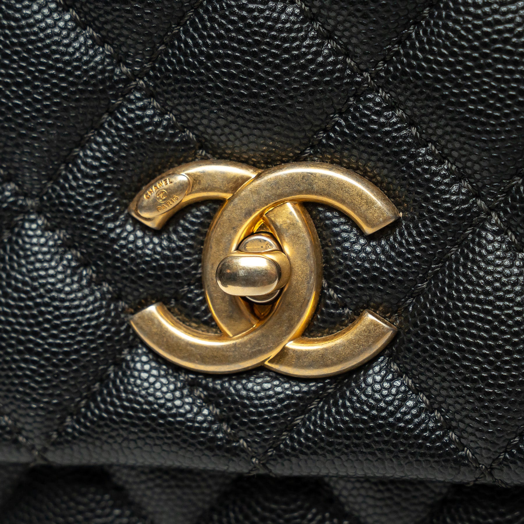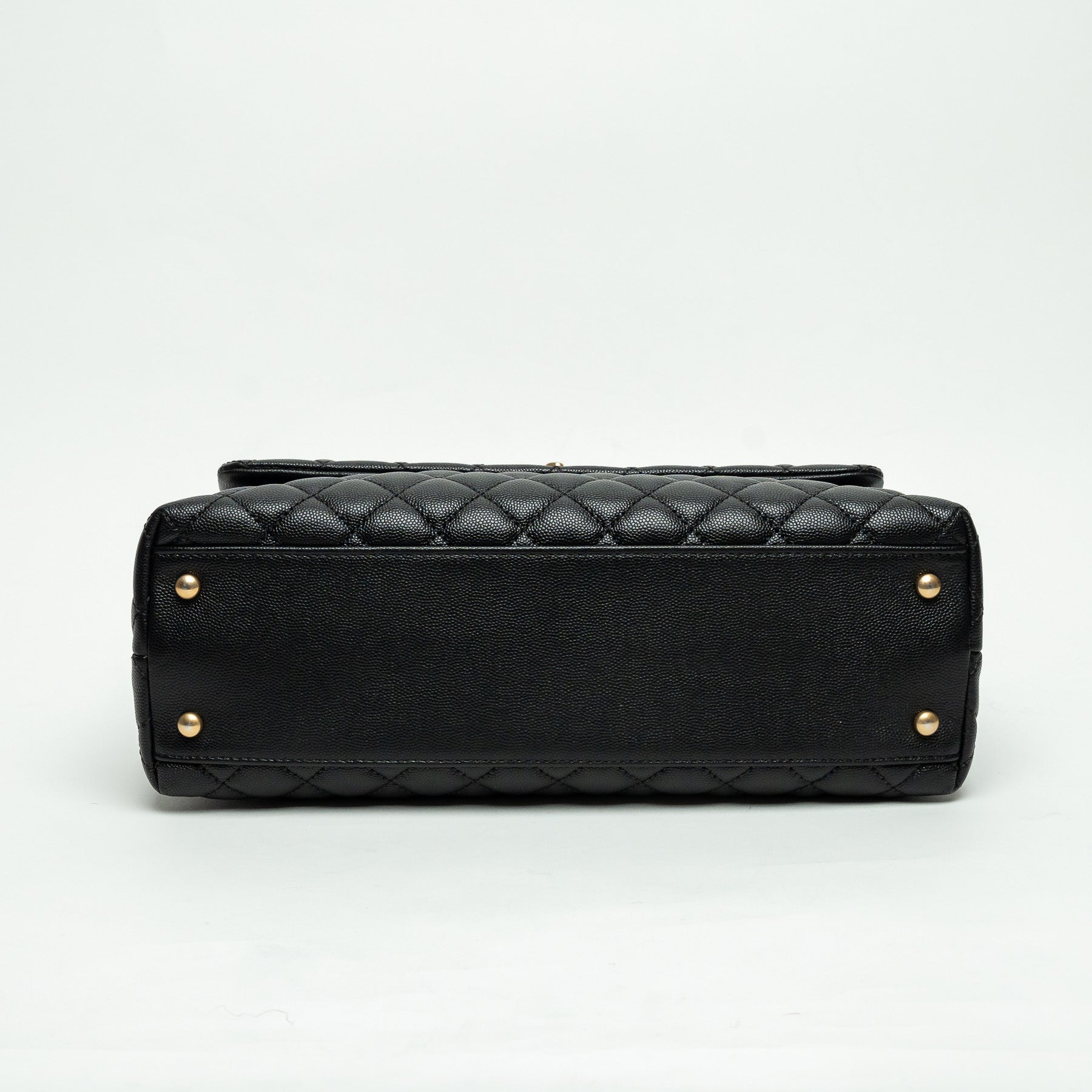 • Exterior Features:   Turn Clasp Closure, Removeable Interlaced Gold and Leather Strap, Four Protective Studs on Bottom, Single Flap, Back Pocket, Signature Coco Top Handle in Burgundy Lizard Leather