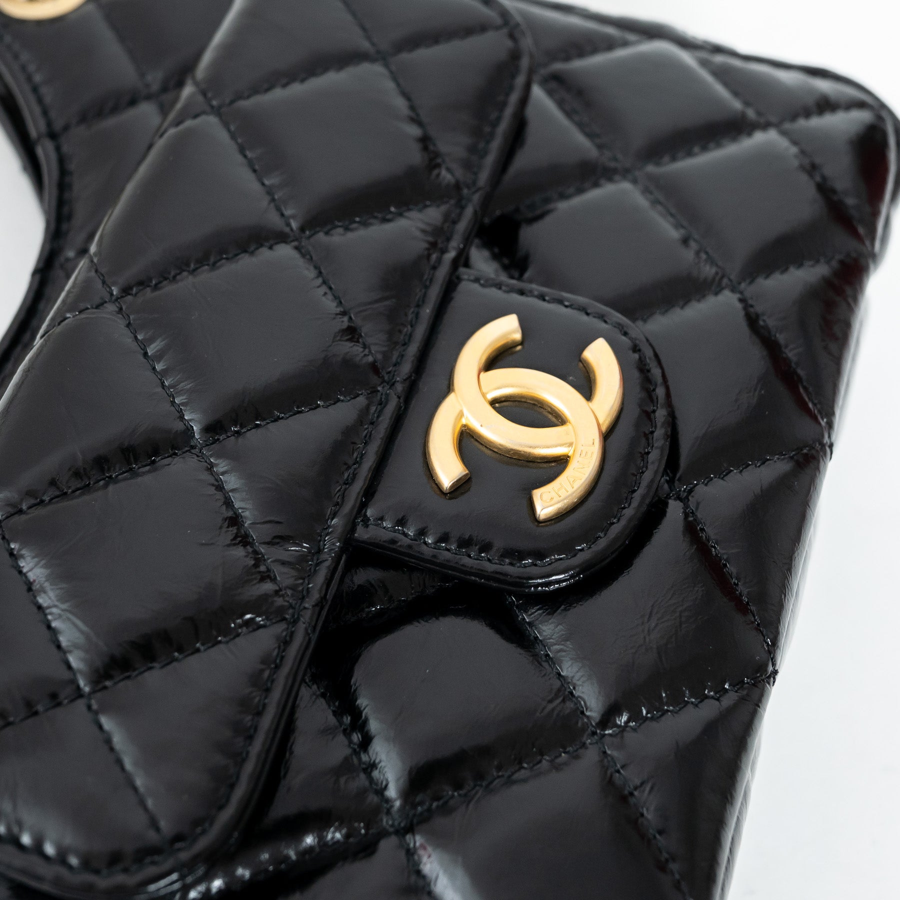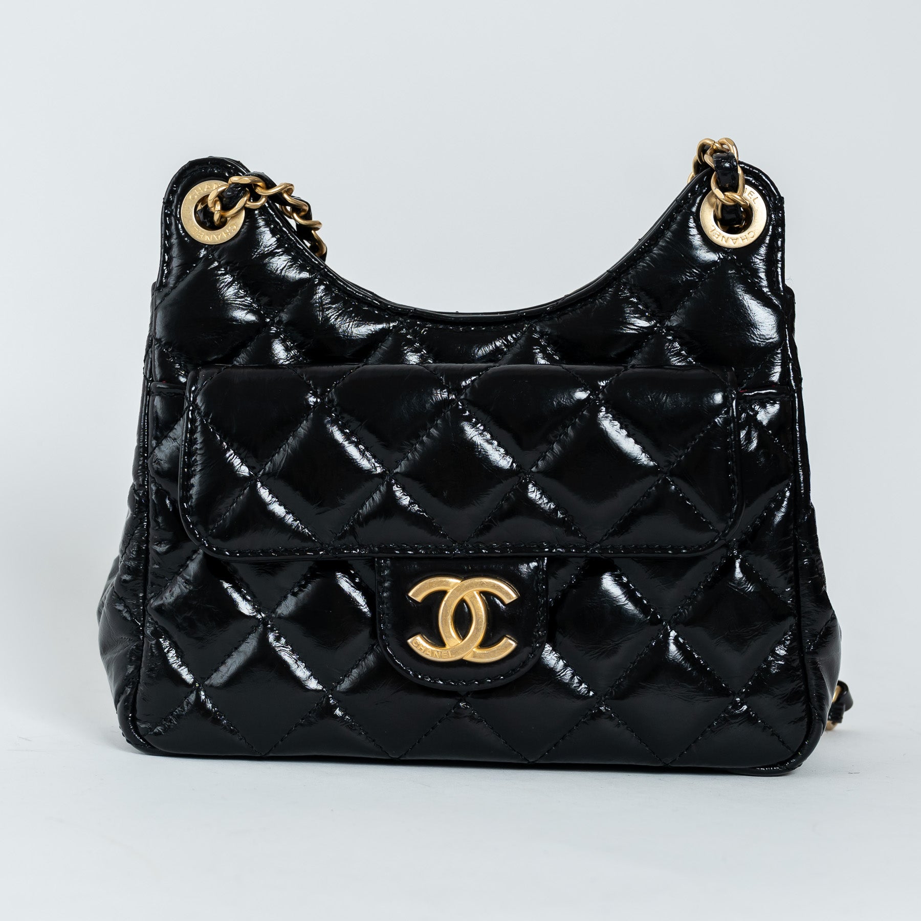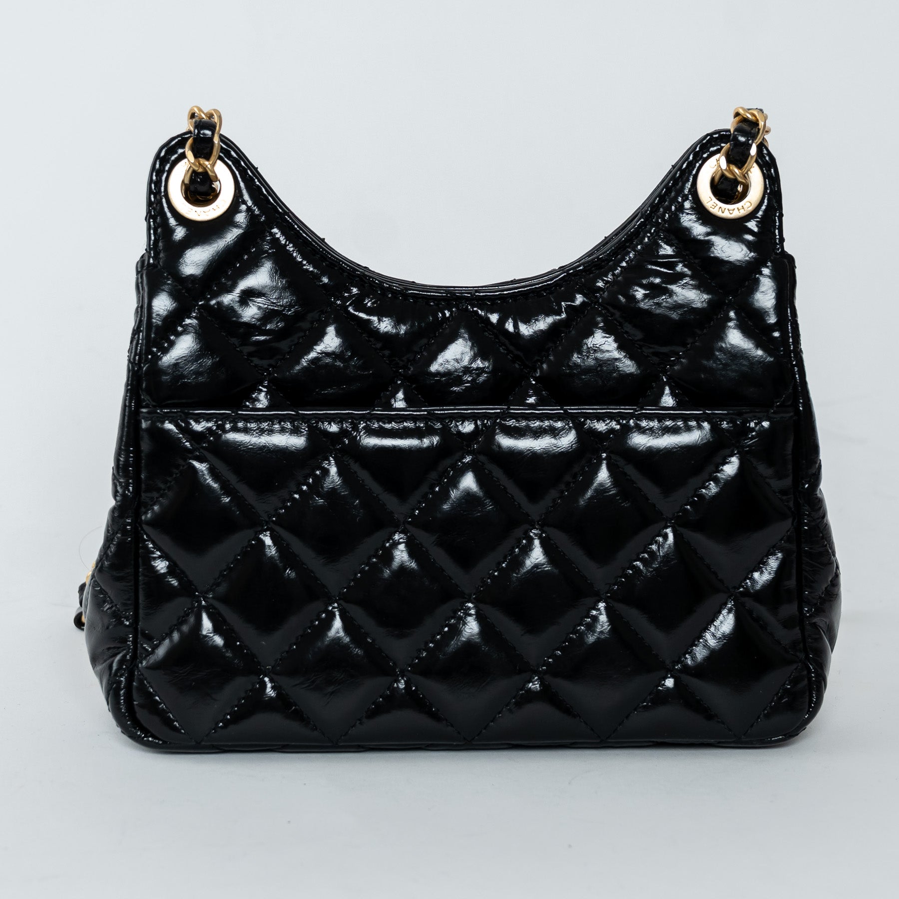Pre-Loved Chanel™ Black Shiny Aged Calfskin Leather Small Wave Hobo Bag