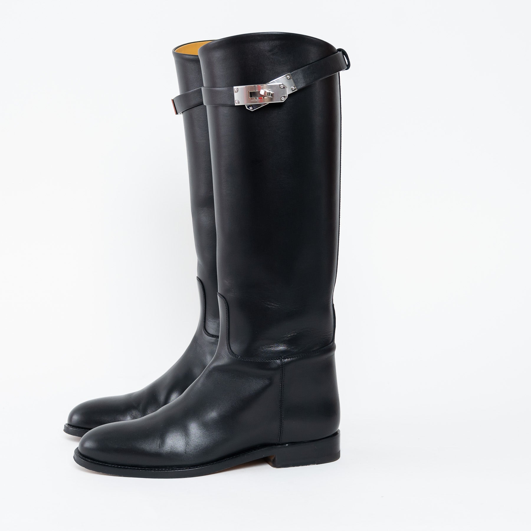 Hermes Black Box Calfskin Leather Jumping Boots Size 35