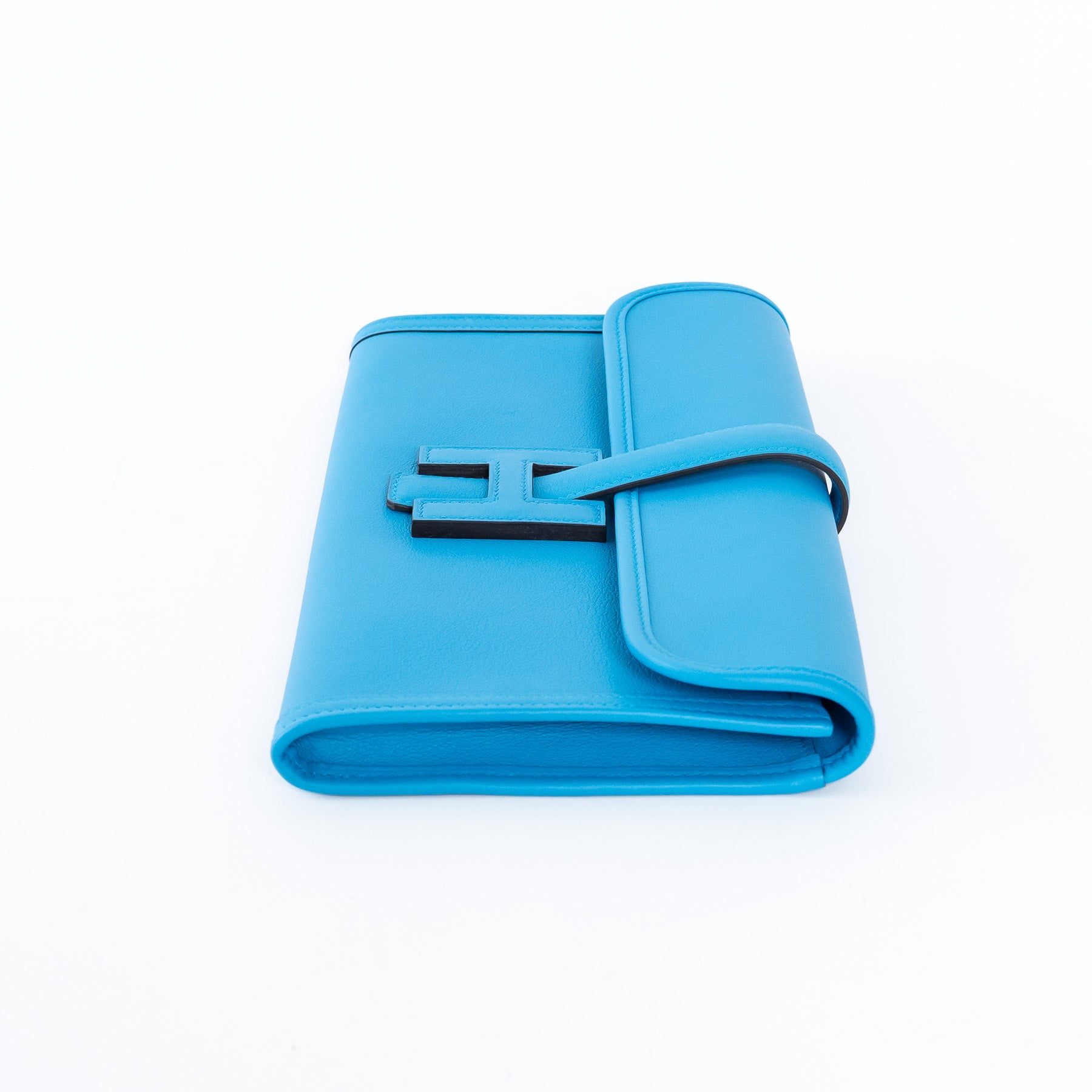 Hermes Blue Swift Leather Jige Elan Clutch 29