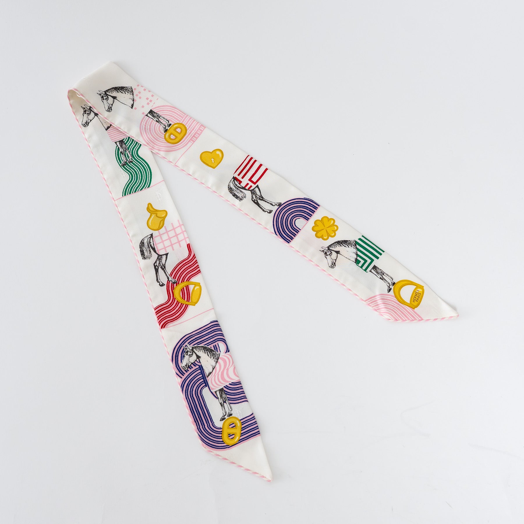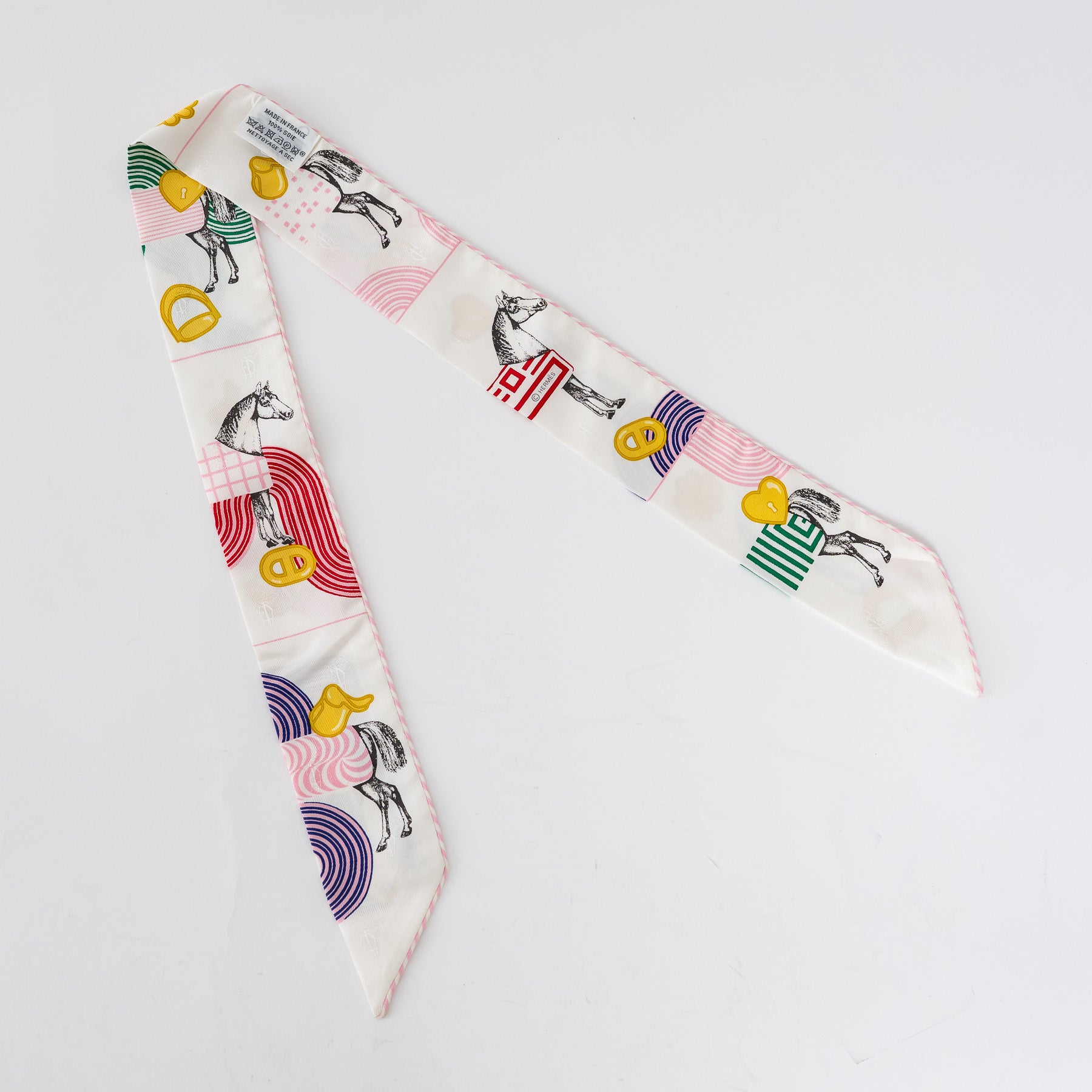 Hermes White Multicolour Silk Garde-Robe Pop Twilly