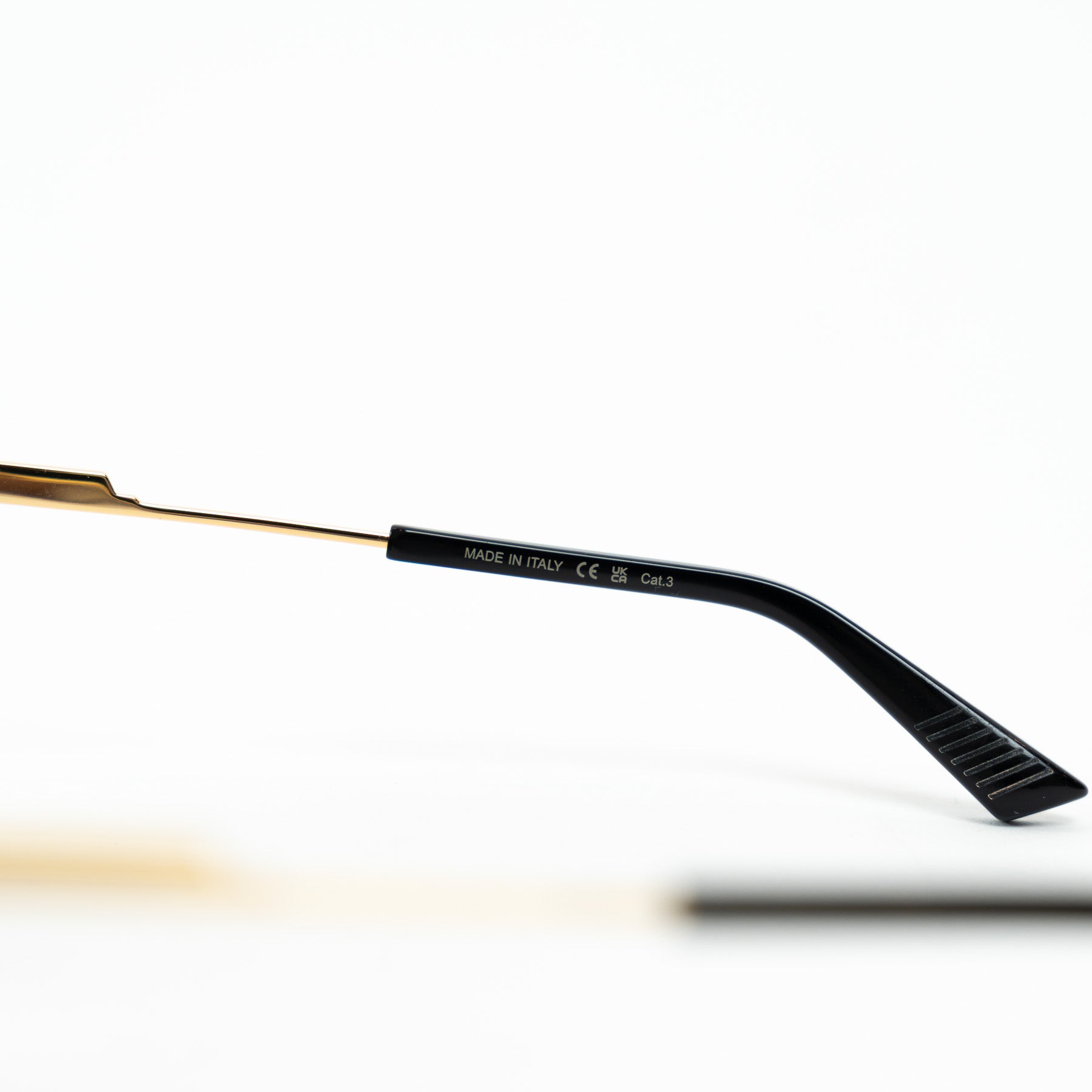 - Features: Gold frame arms, Bottega Veneta engraving, Black acetate temple tips