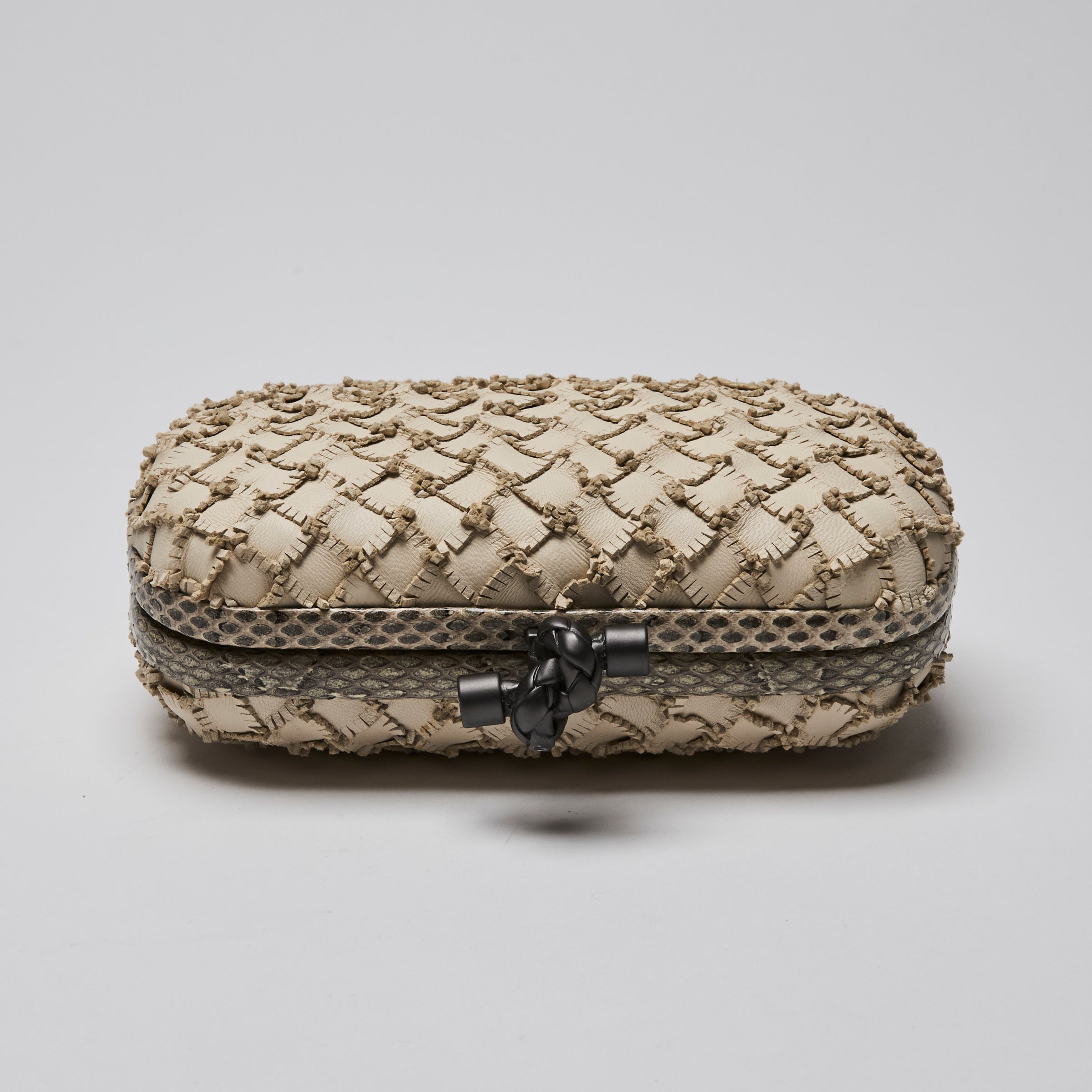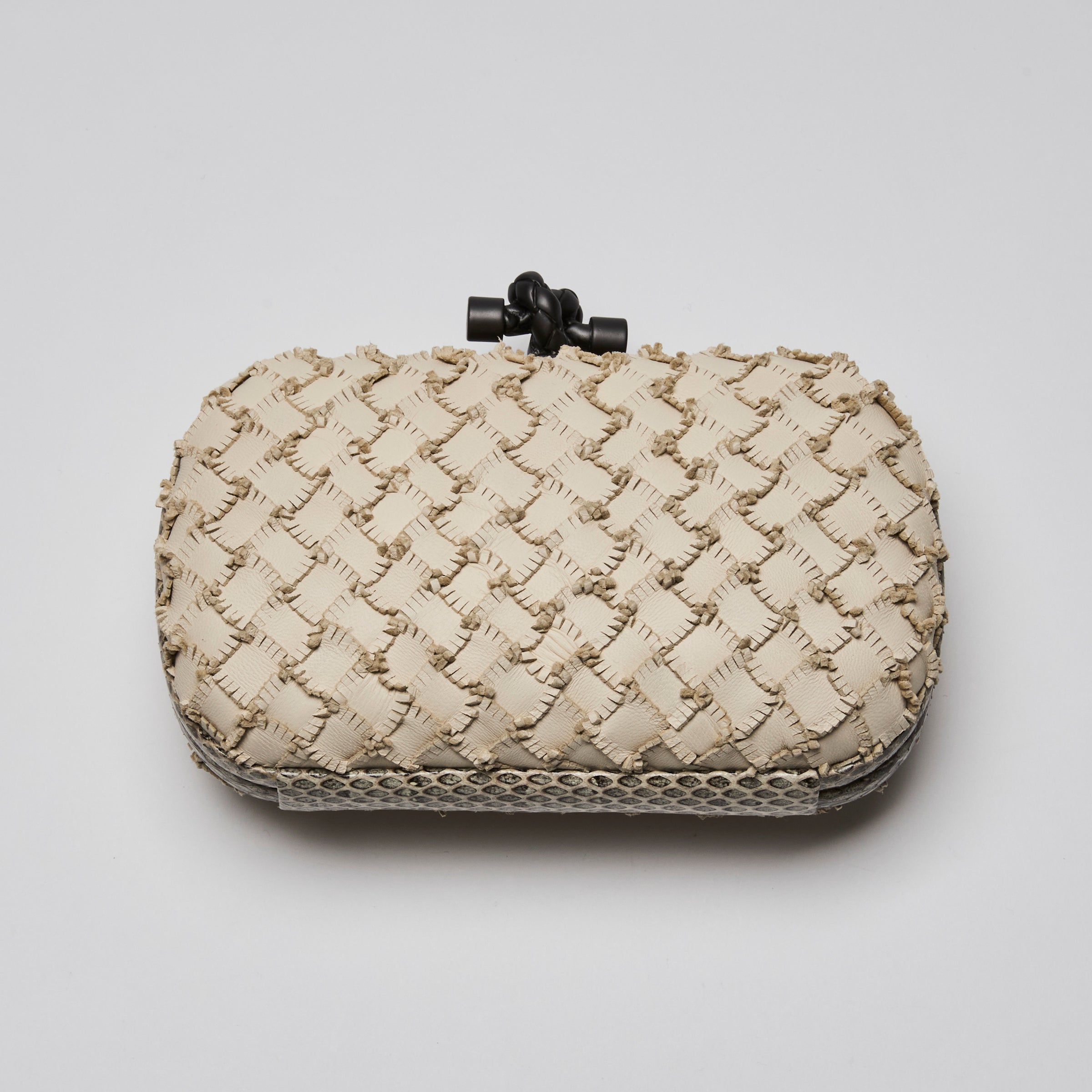 Bottega Veneta Ivory Snakeskin and Intrecciato Leather Knot Clutch