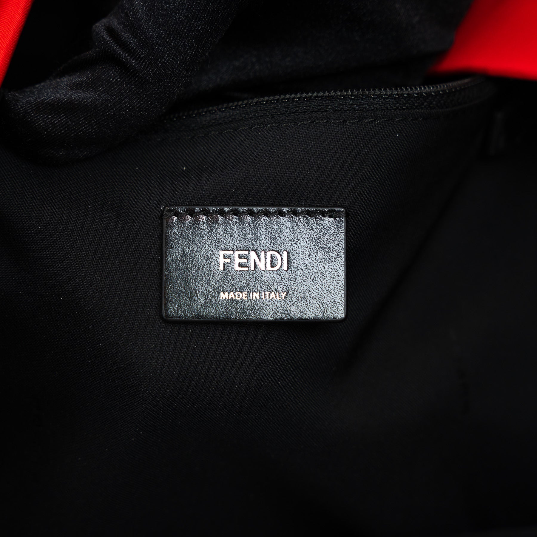 - Exterior Features: Signature Fendi Monster eyes, Front zip pocket, Zipper closure, Top handle, Two straps, Leather trim on front pocket