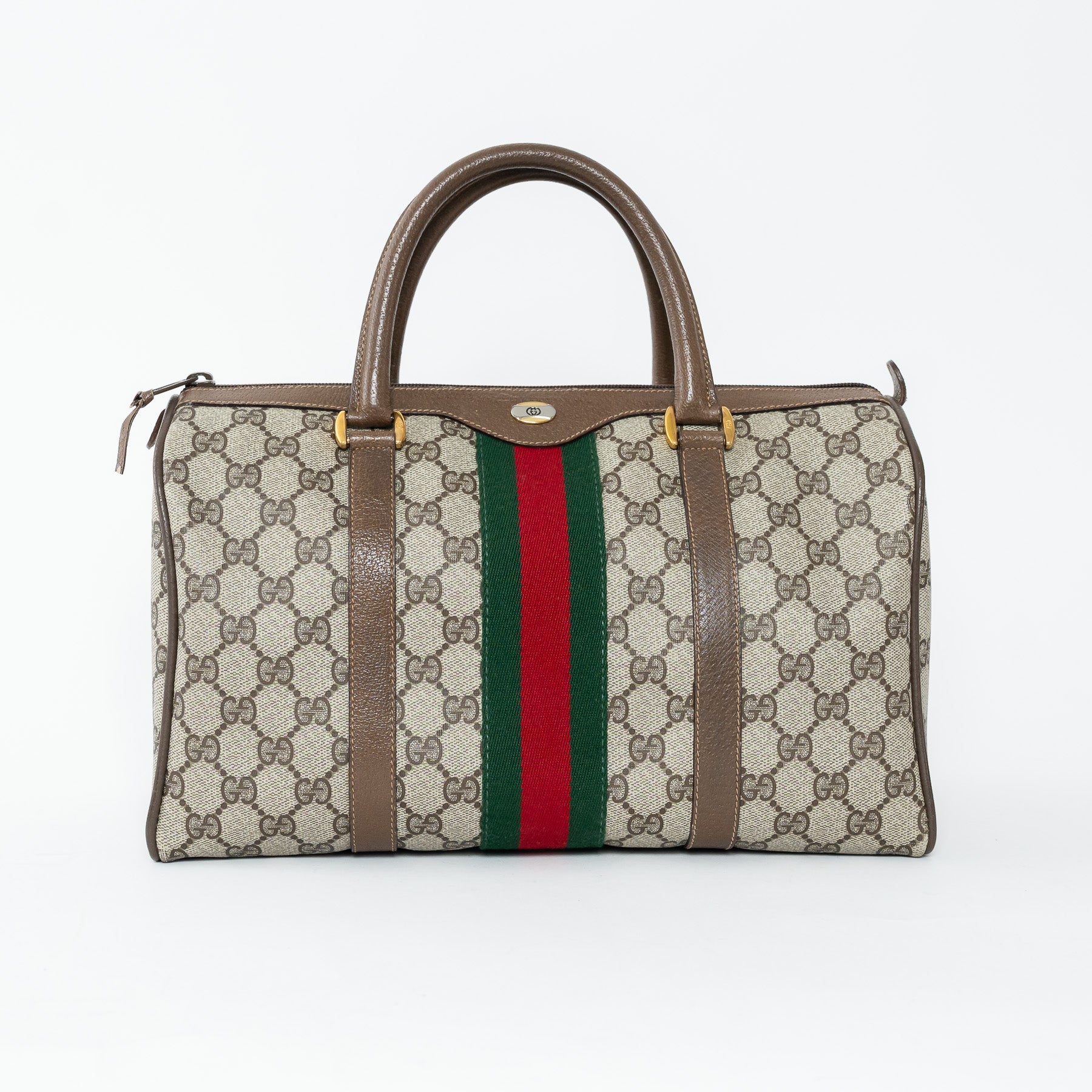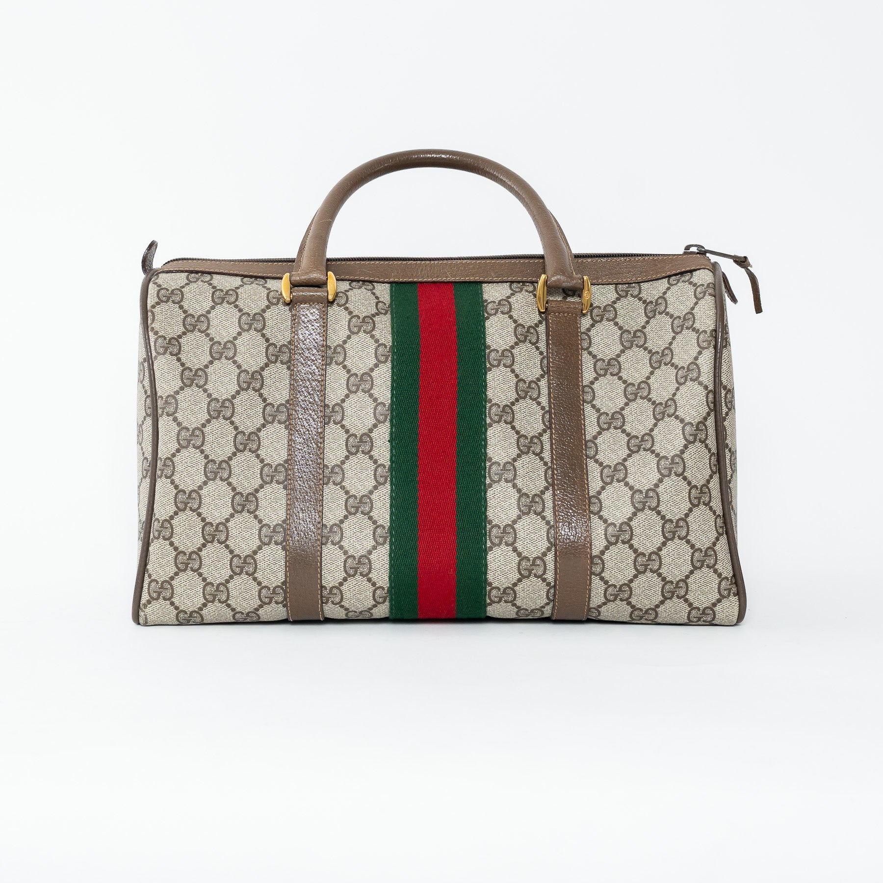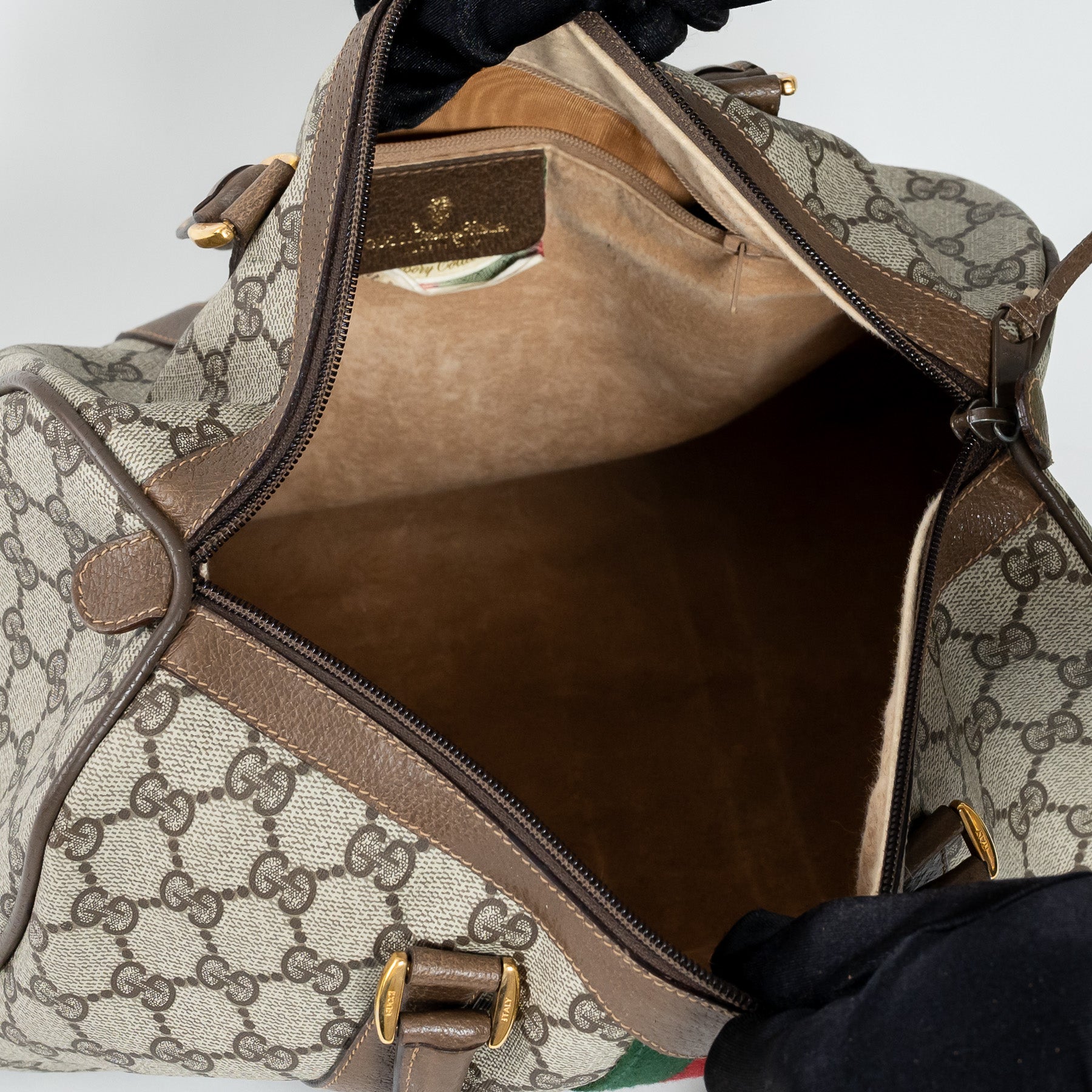Gucci Beige GG Supreme Canvas Web Sherry Line Vintage Boston Bag