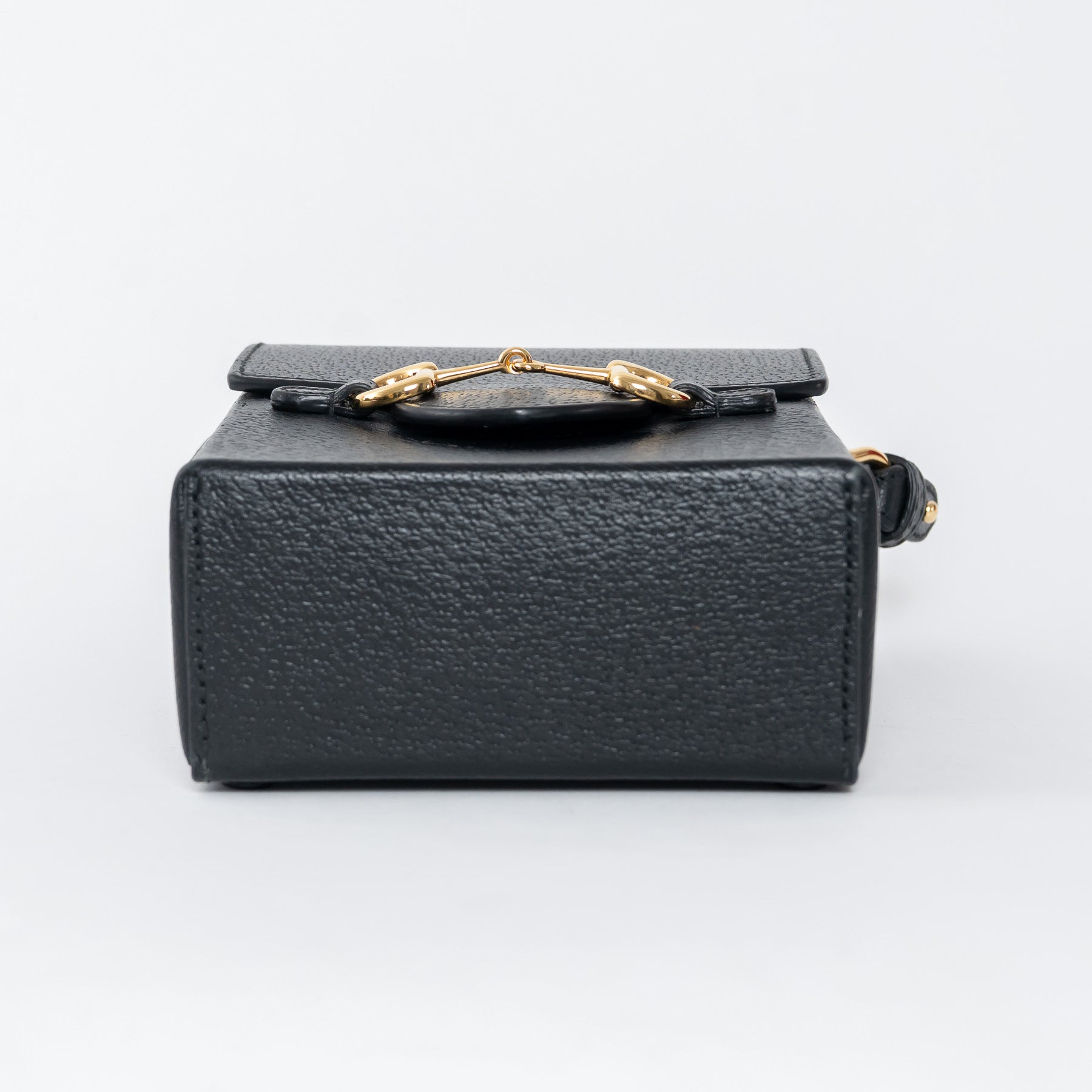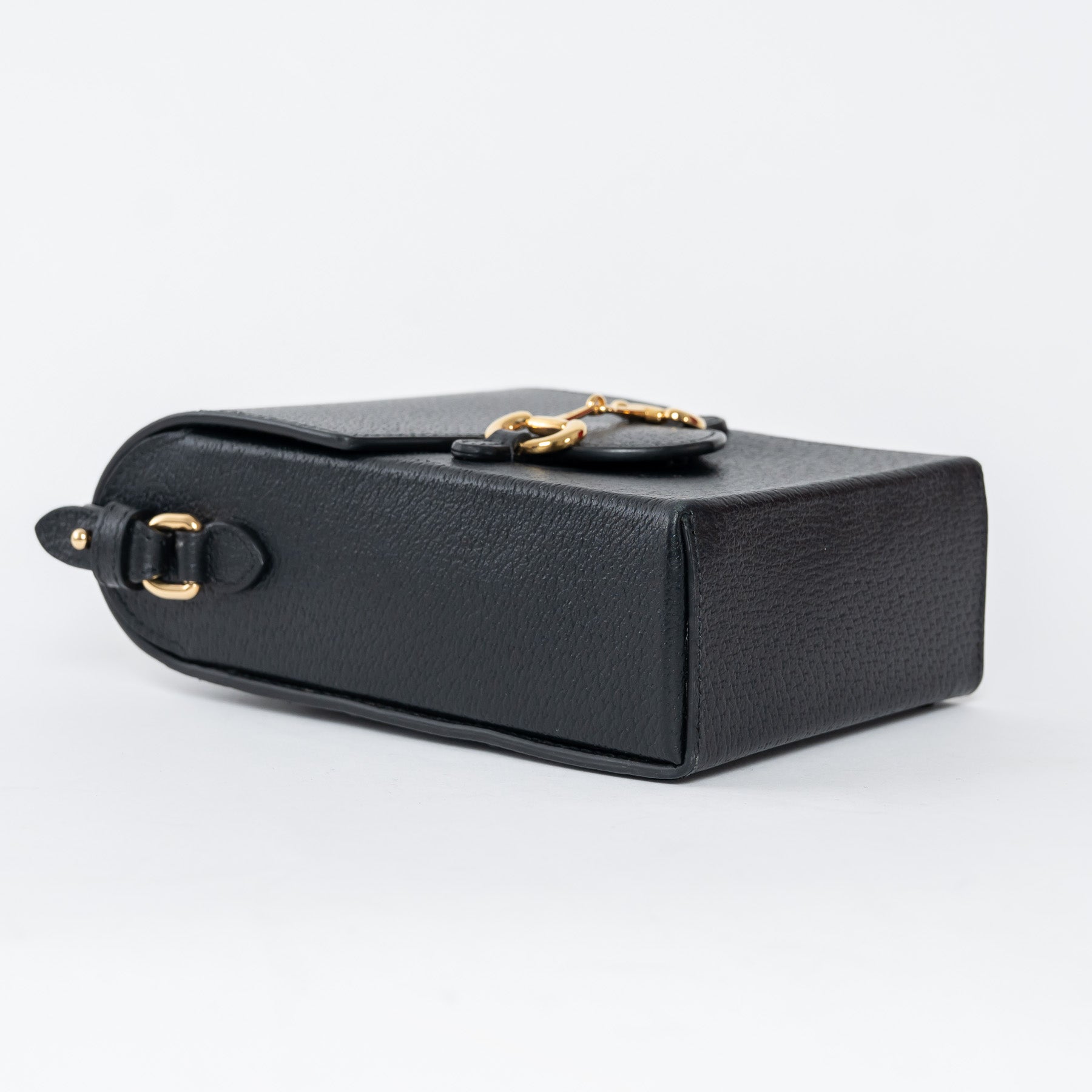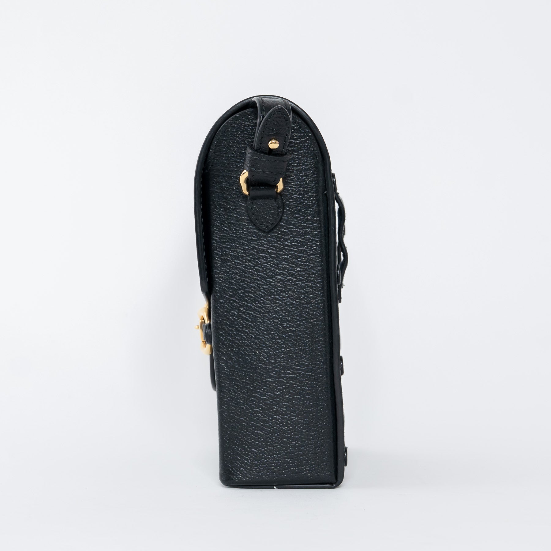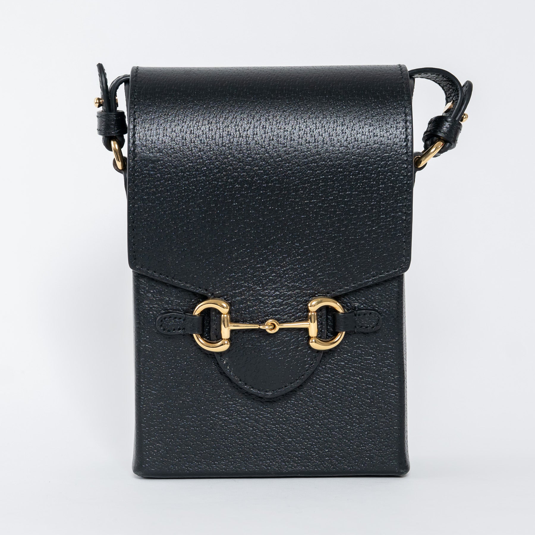 Gucci Black Grained Leather Horsebit 1955 Vertical Crossbody Bag