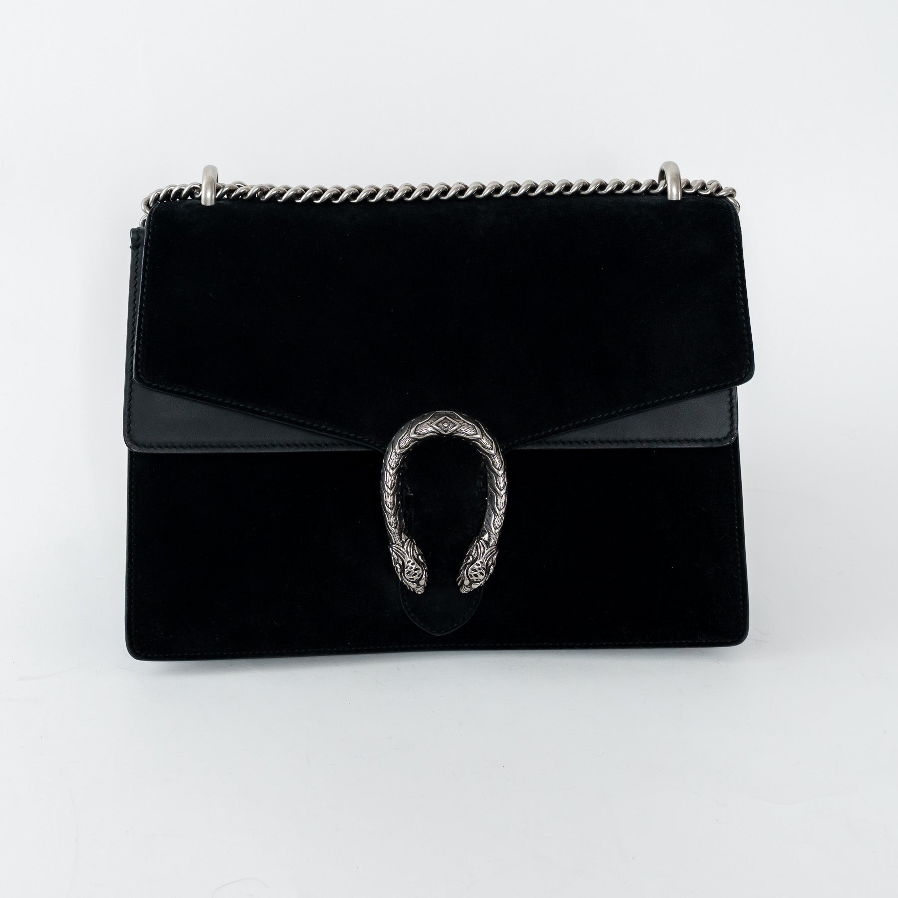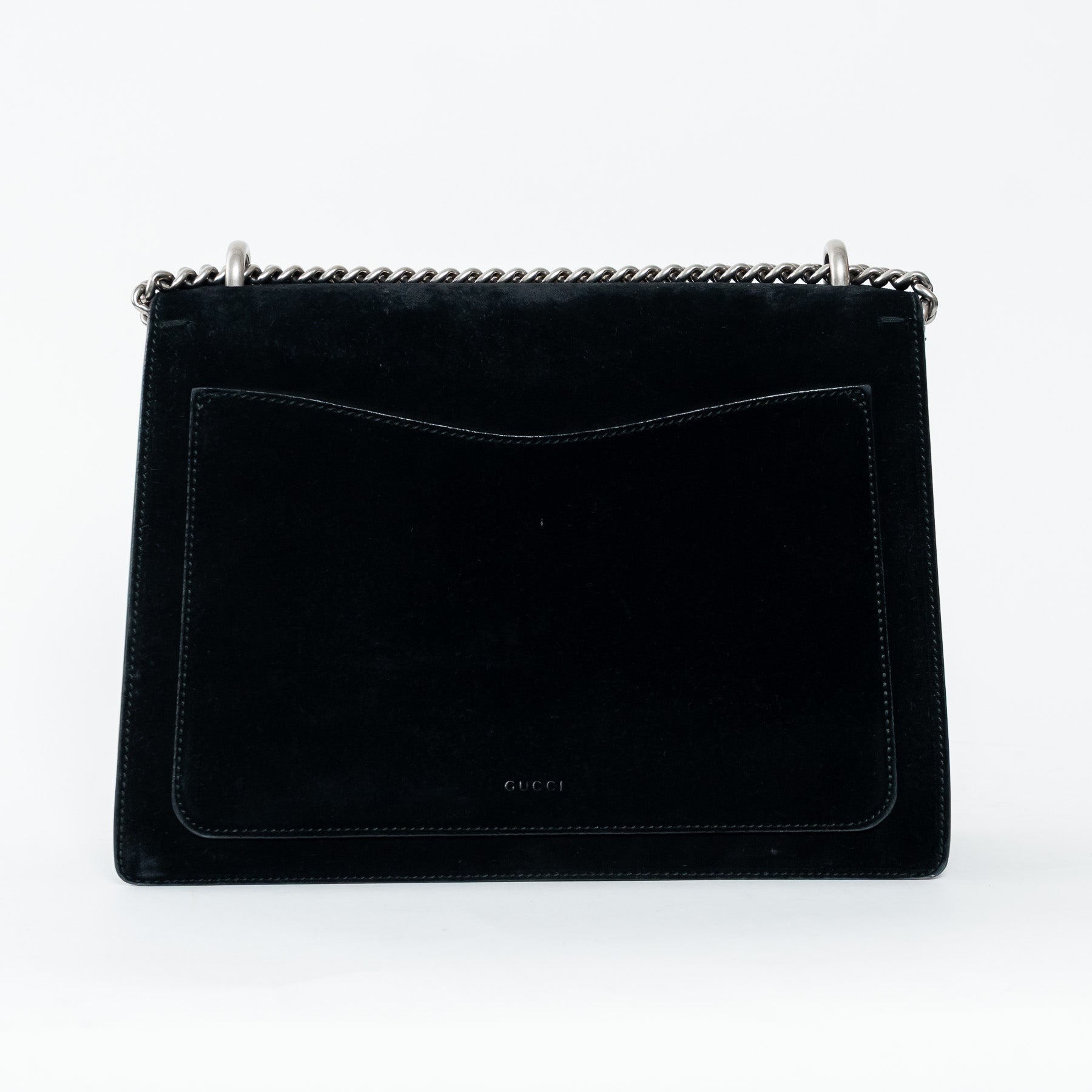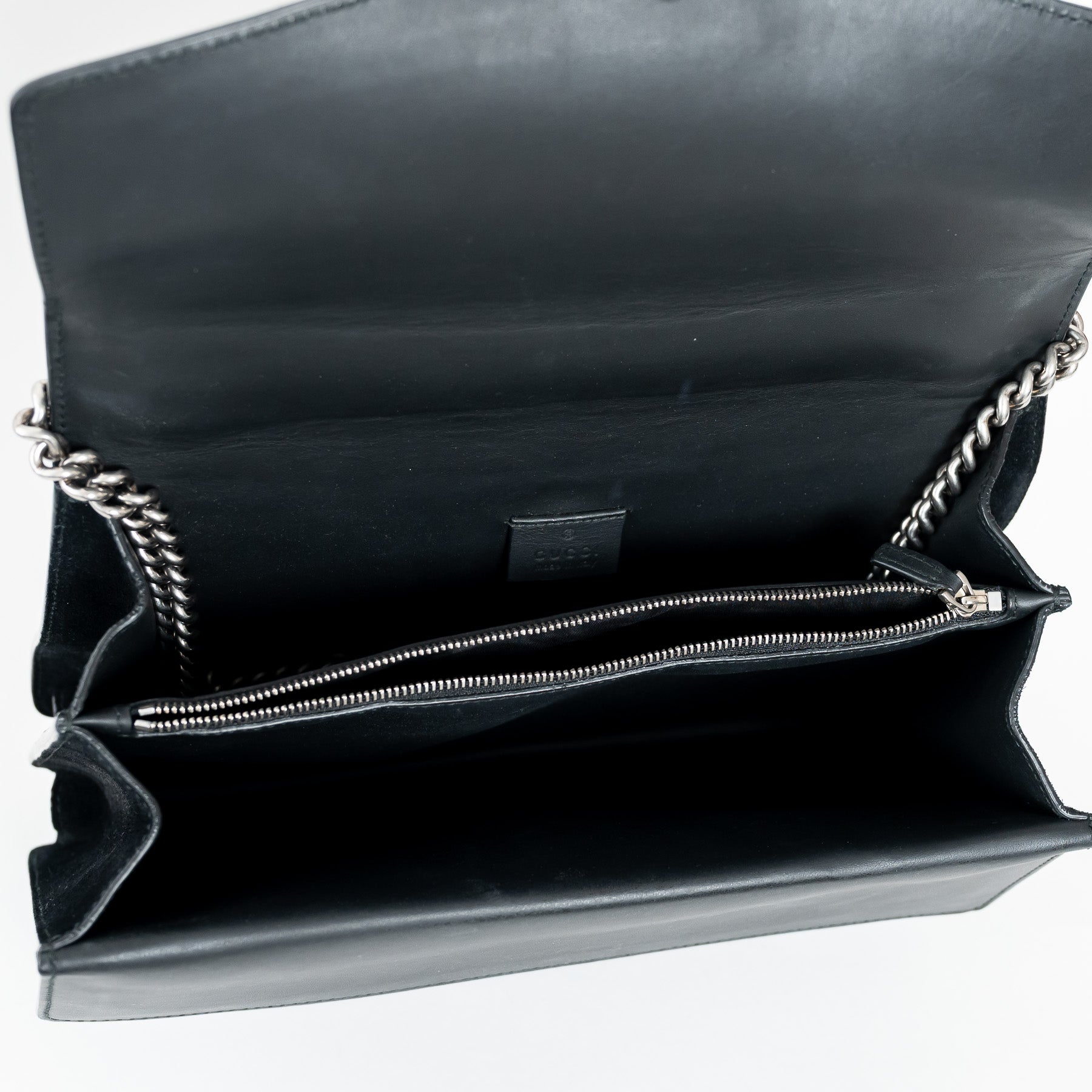 - Exterior Features: Tiger Head Spur, Push Lock Closure, Double Flap, Chain Strap, Two Leather Gussets