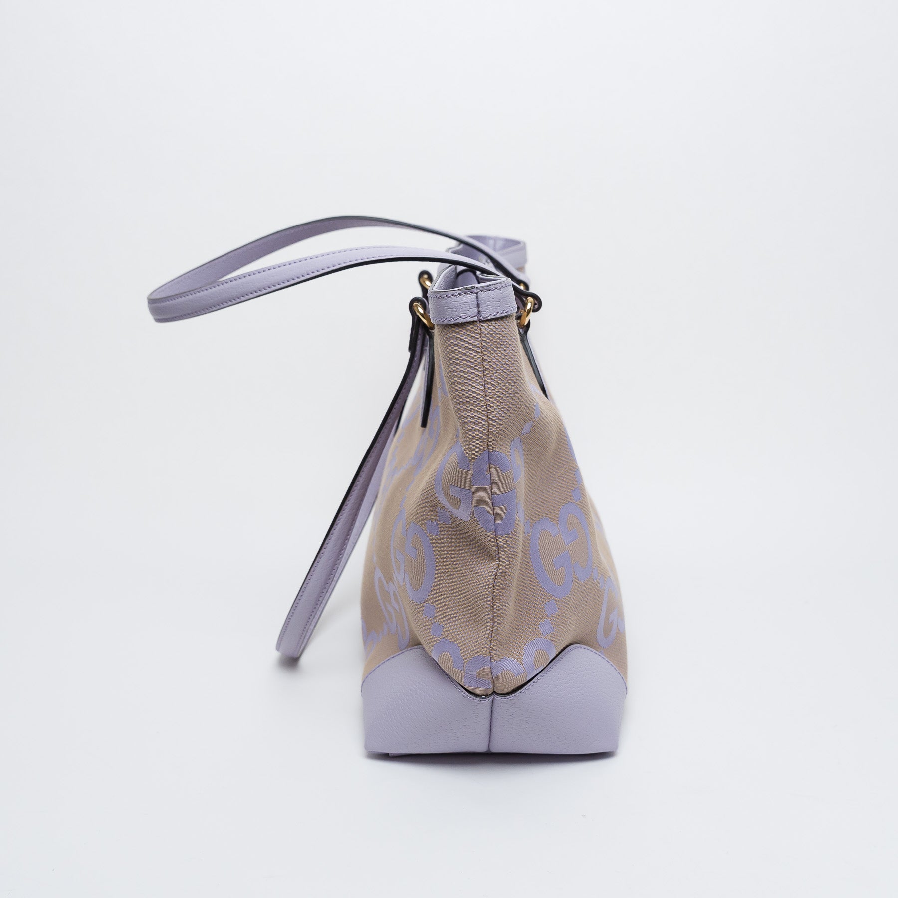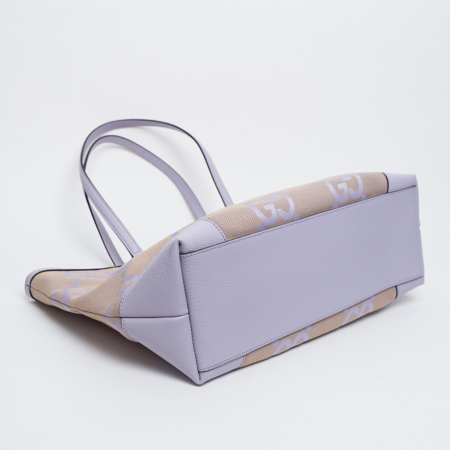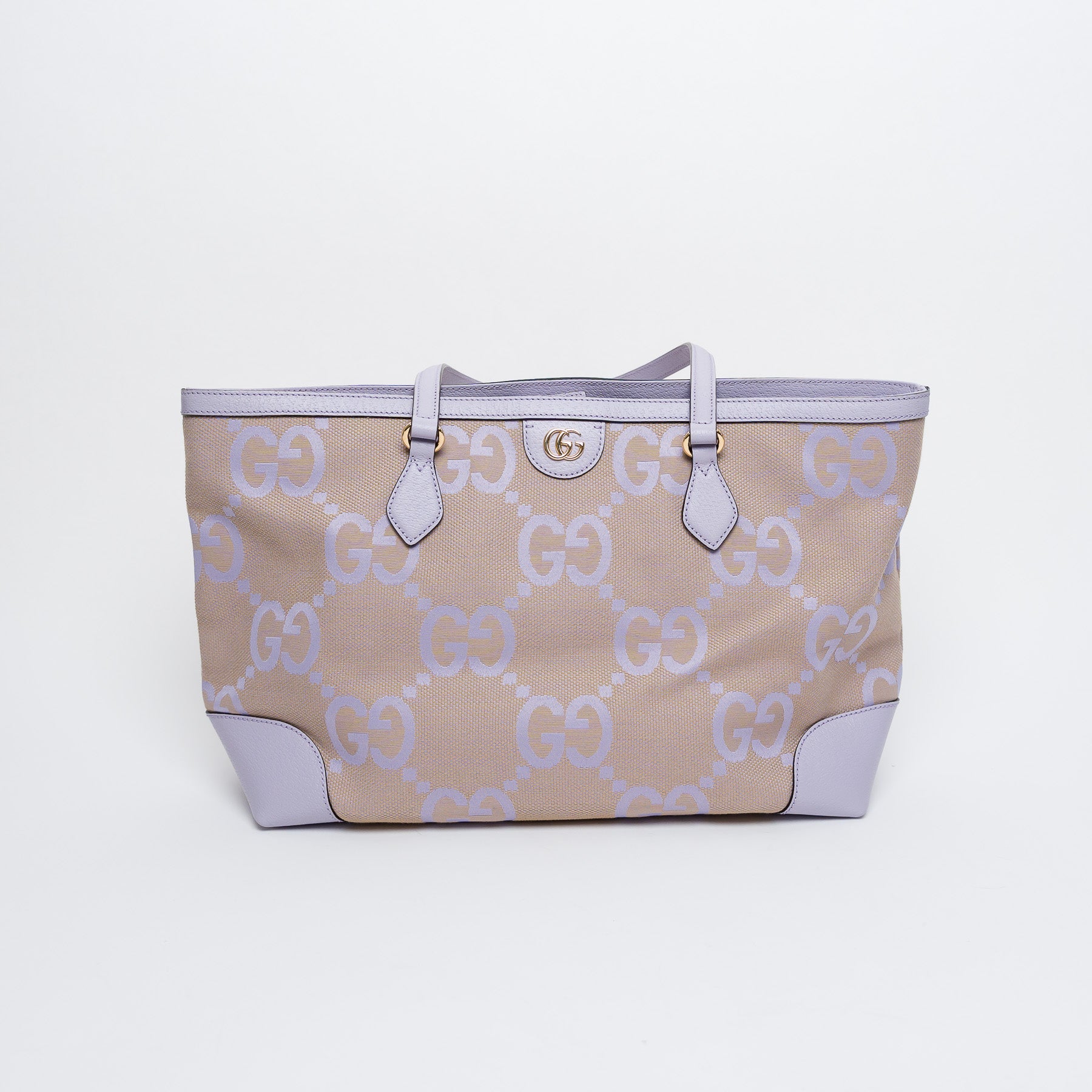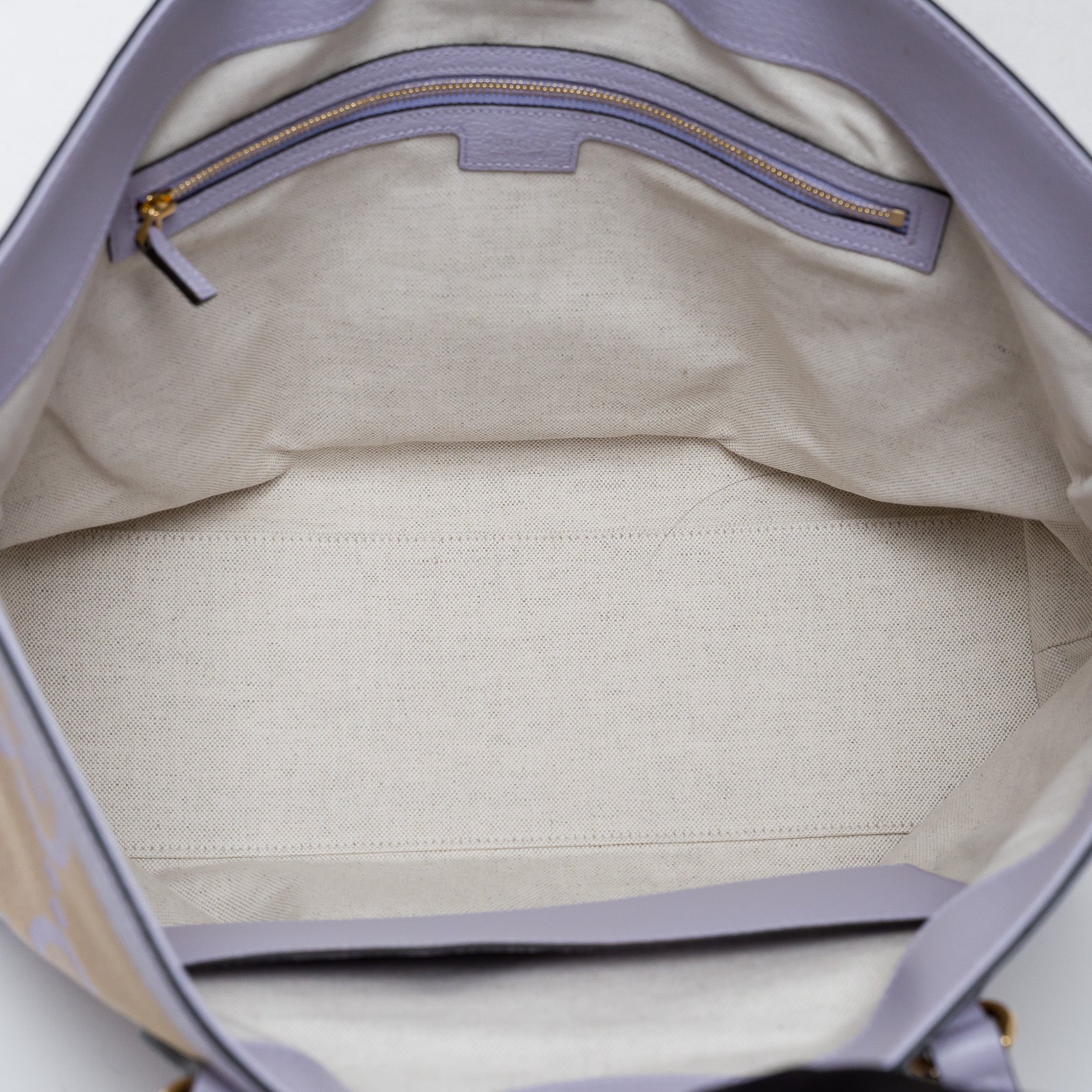 Gucci Lilac Leather and Beige Jumbo GG Canvas Medium Ophidia Tote Bag