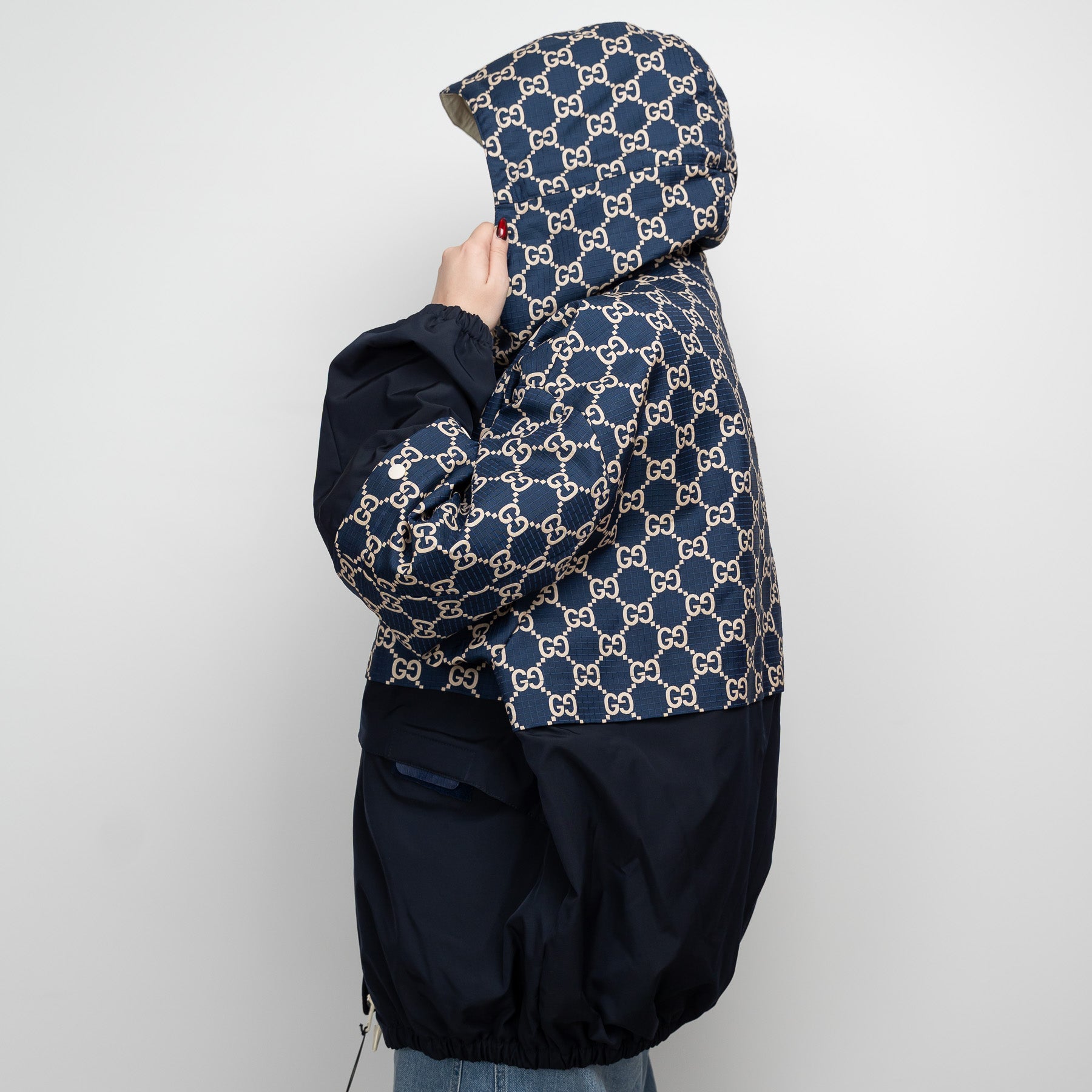 Gucci Navy GG Supreme Oversized Hooded Jacket Size 56