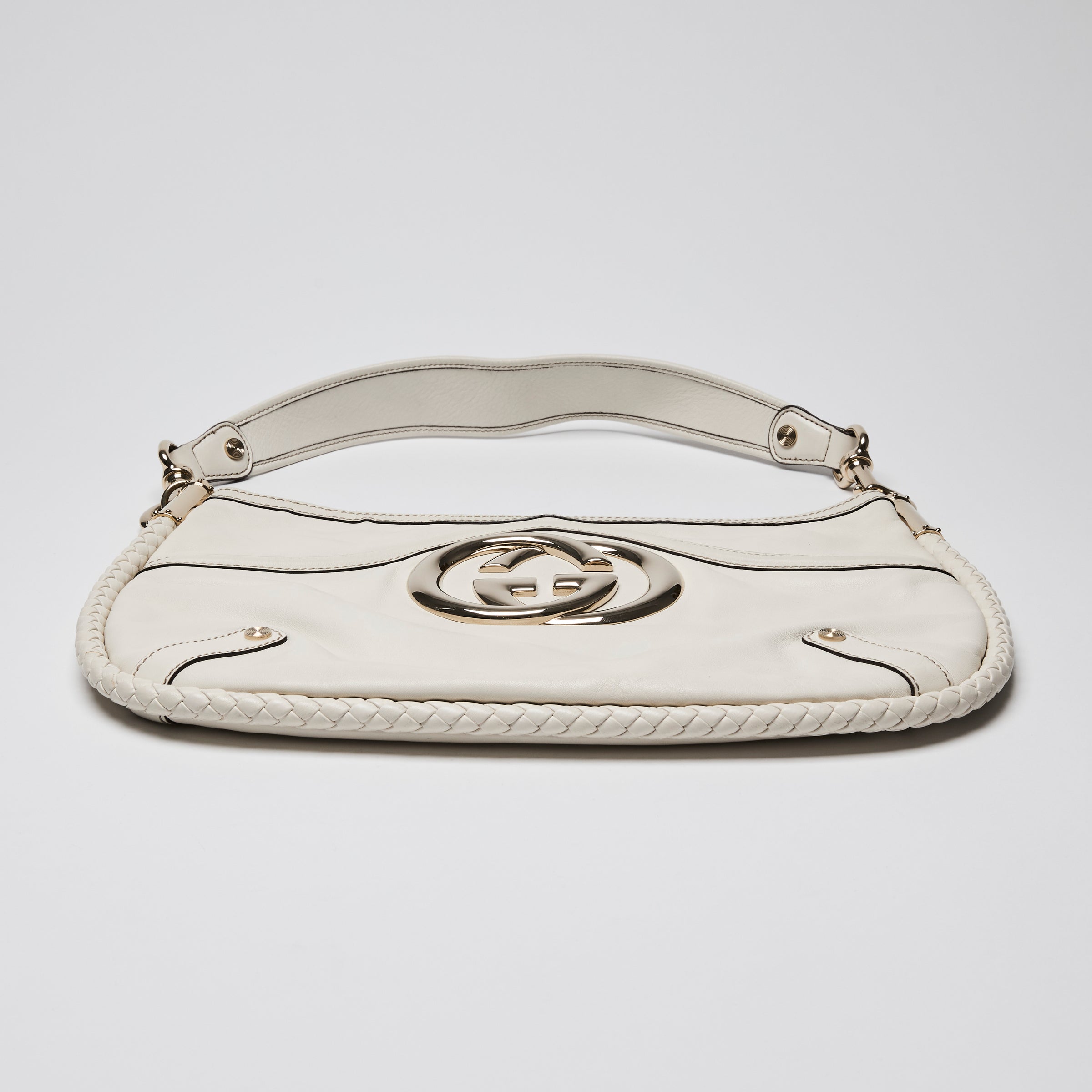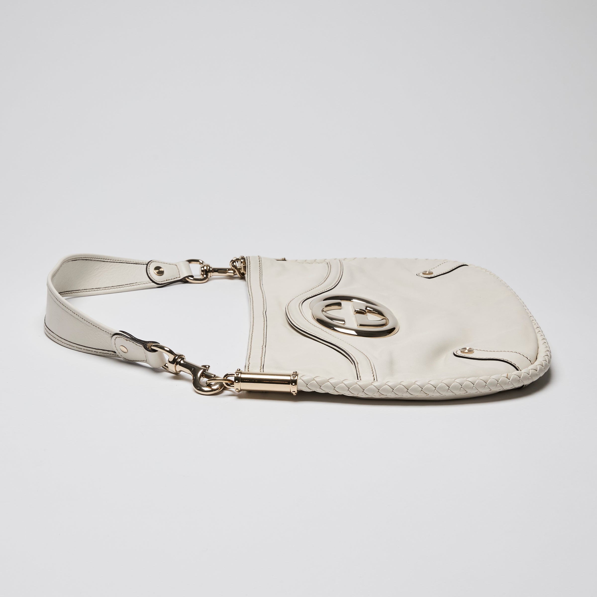 Gucci White Britt Leather GG Marmont Hobo Bag