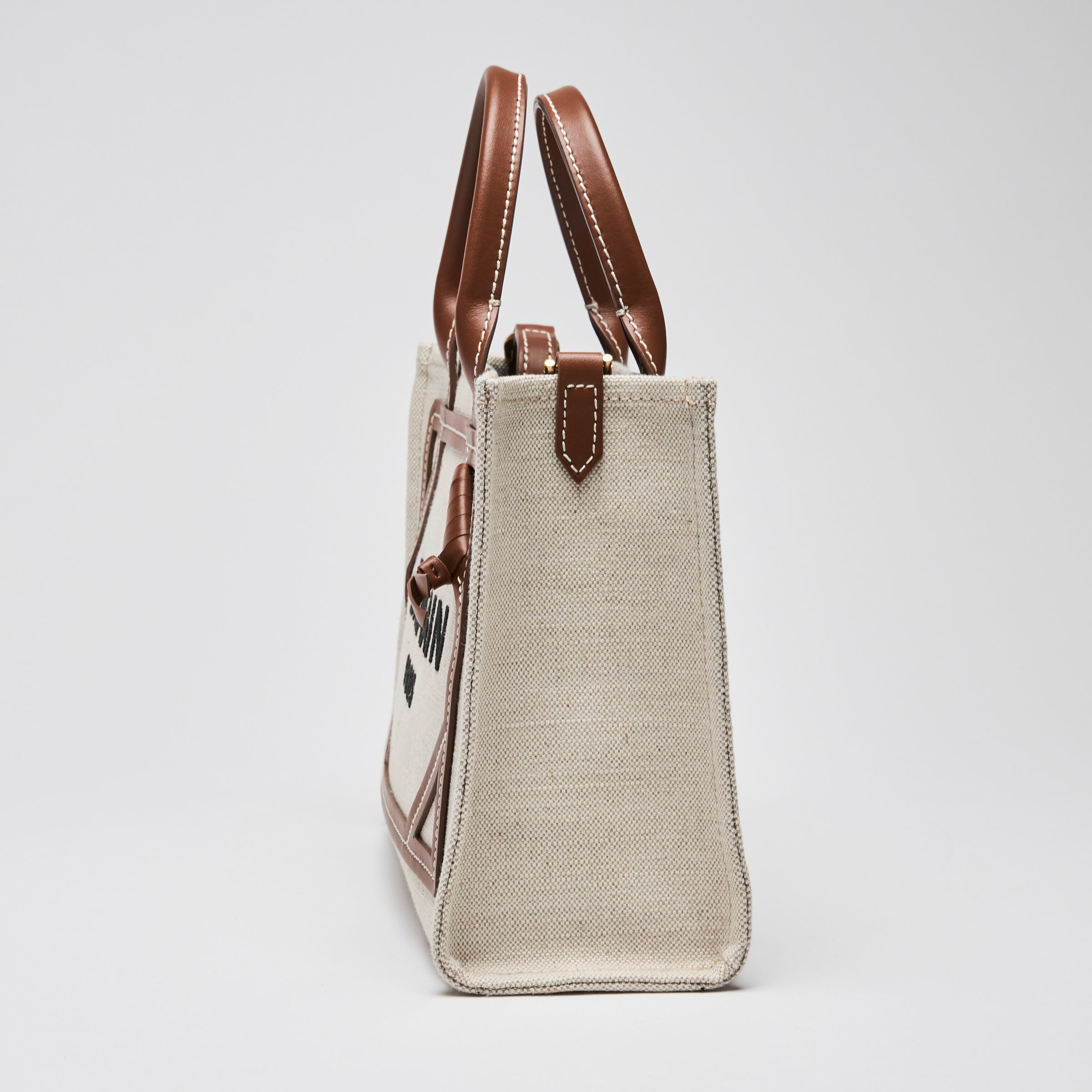 Loewe Beige Canvas & Brown Leather Small B-Army Tote Bag