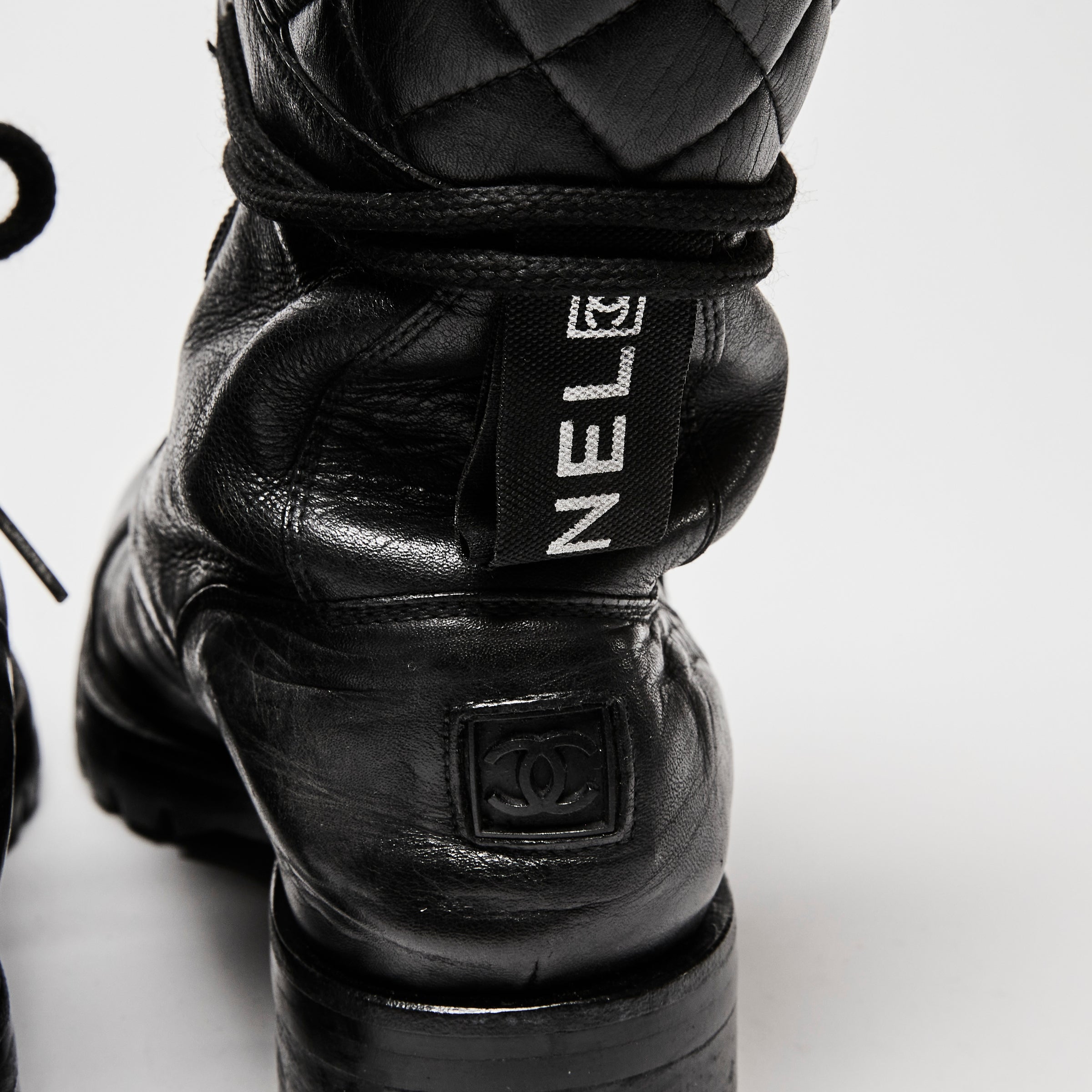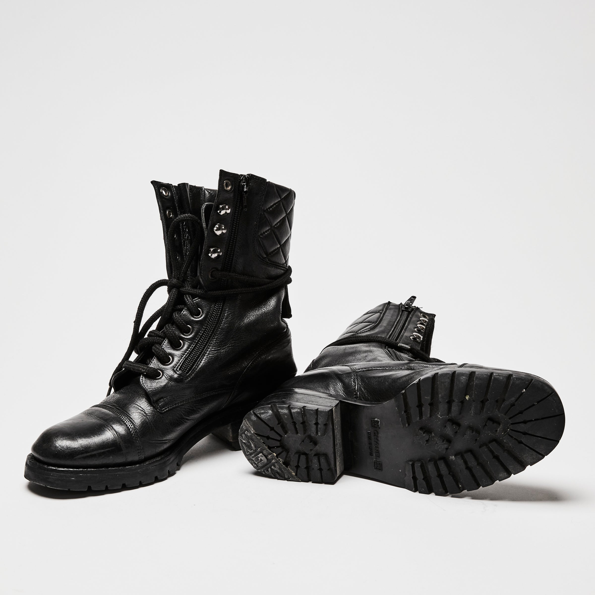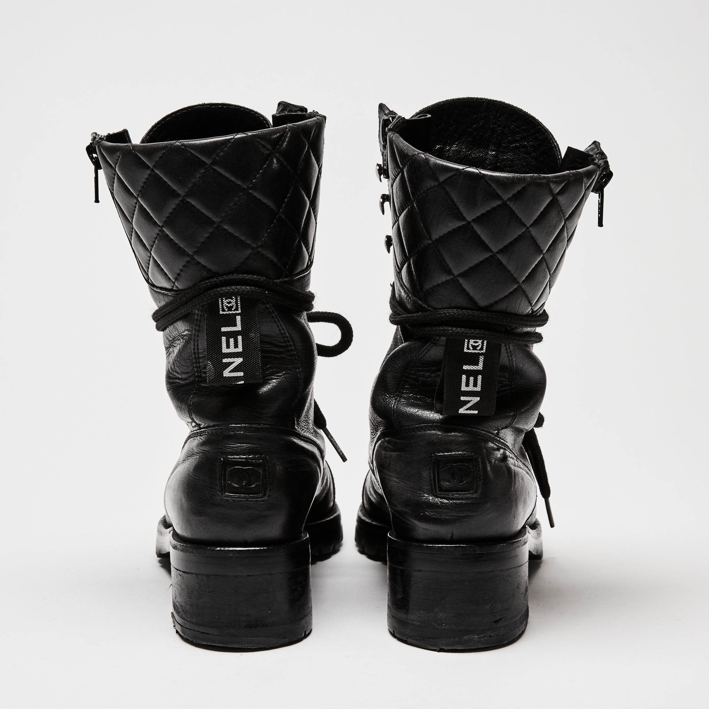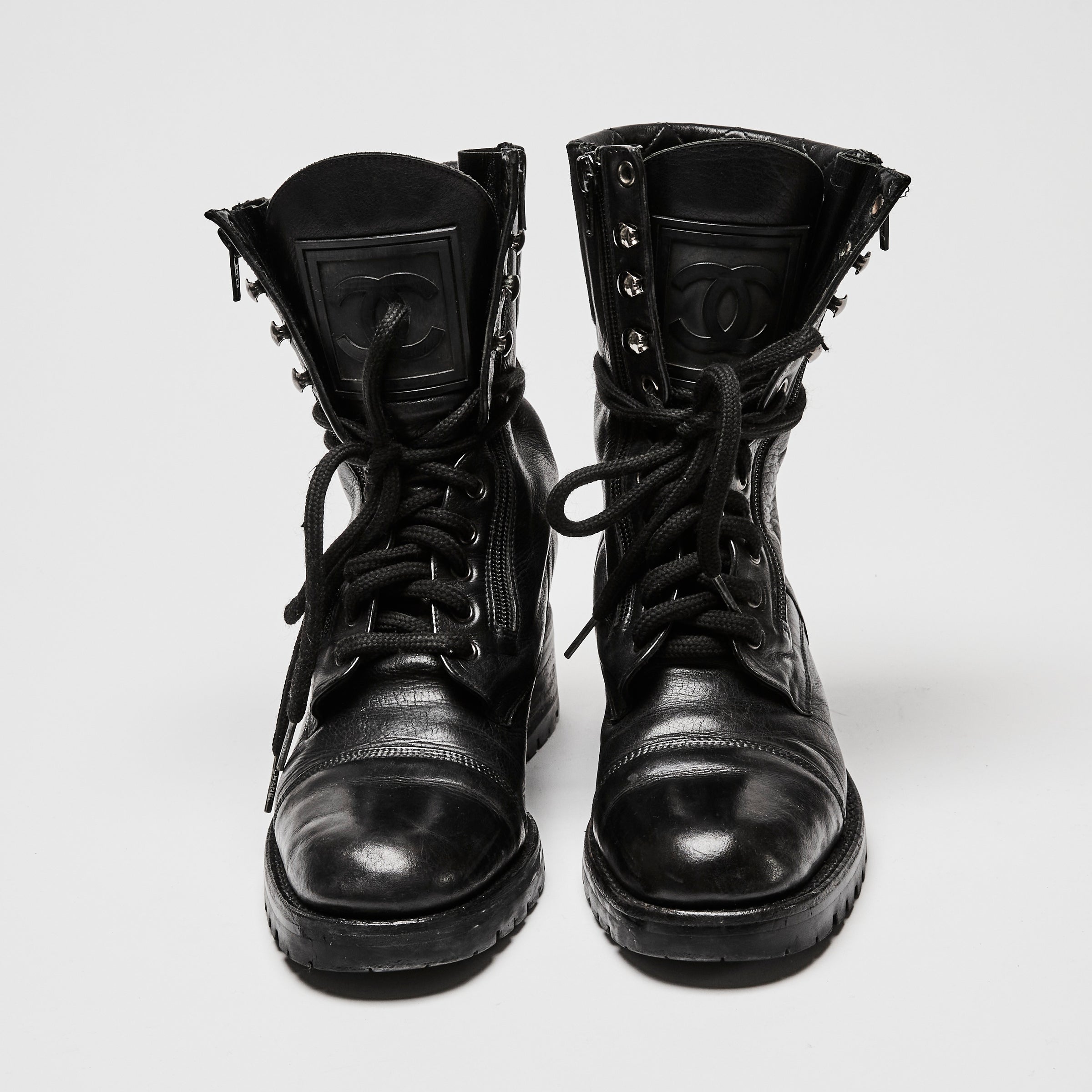Pre-Loved Chanel™ Black Leather Combat Boots Size 38
