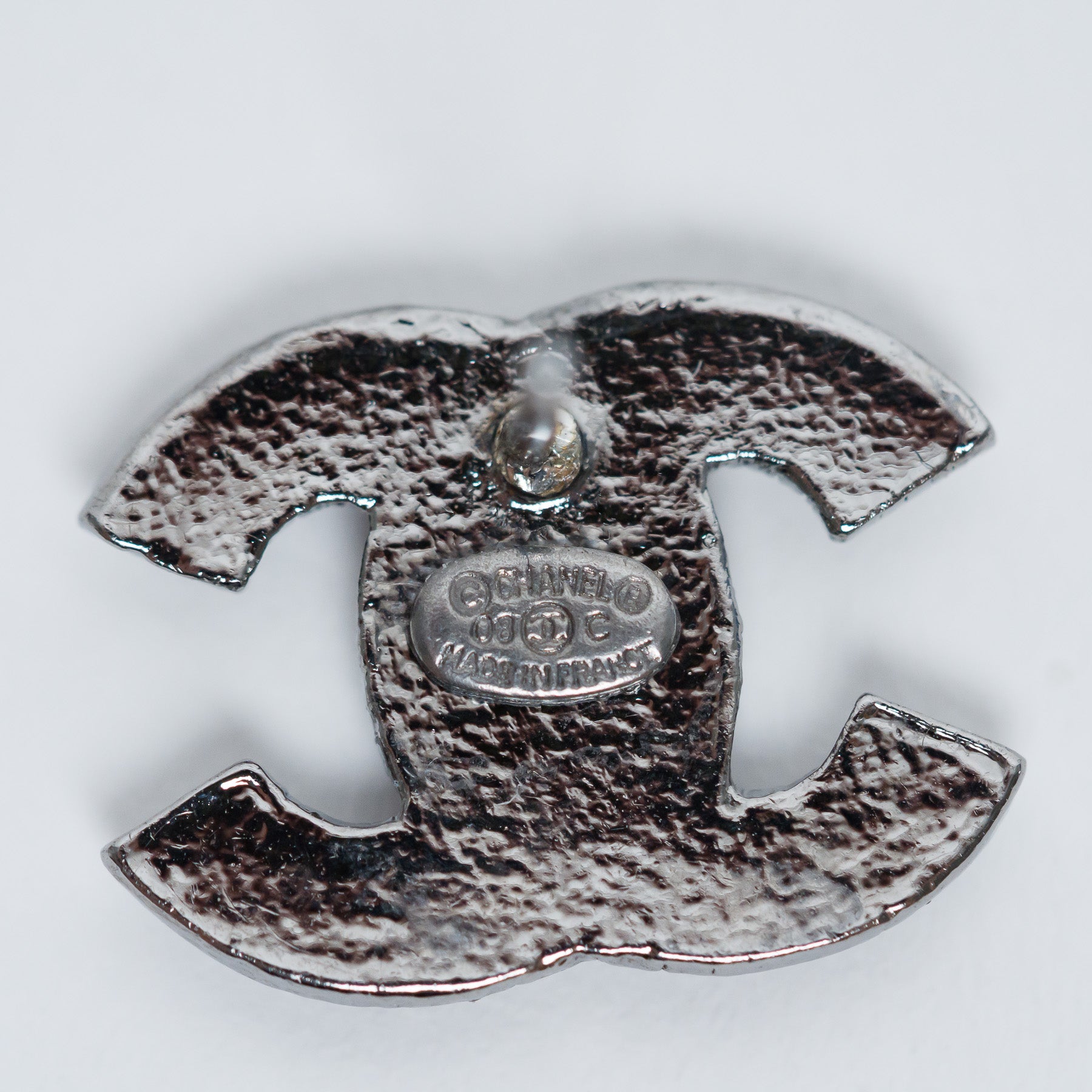 Pre-Loved Chanel™ Gunmetal Amber Crystal Logo Stud Earrings