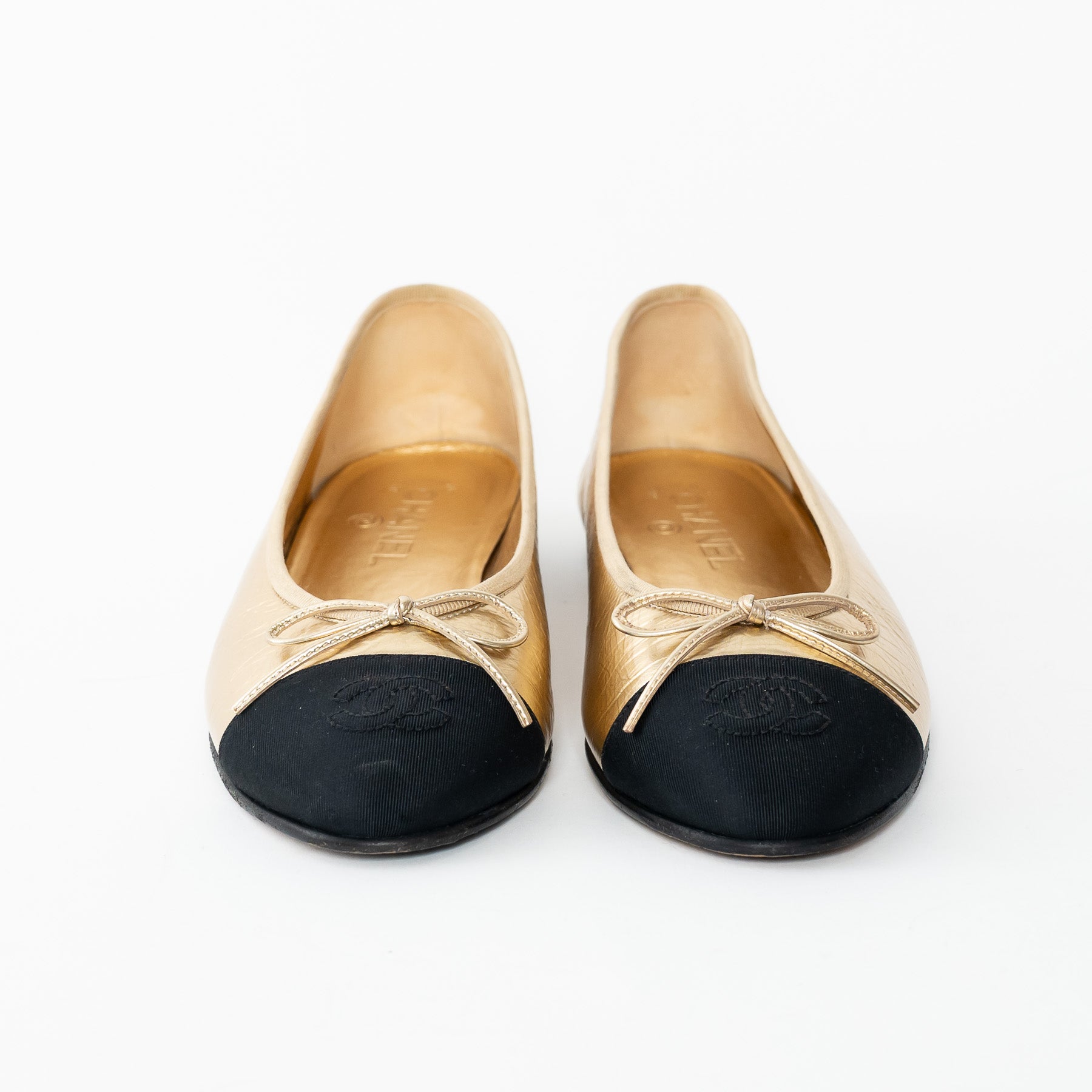 Pre-Loved Chanel™ Metallic Gold Laminated Lambskin Leather Ballet Flats Size 39
