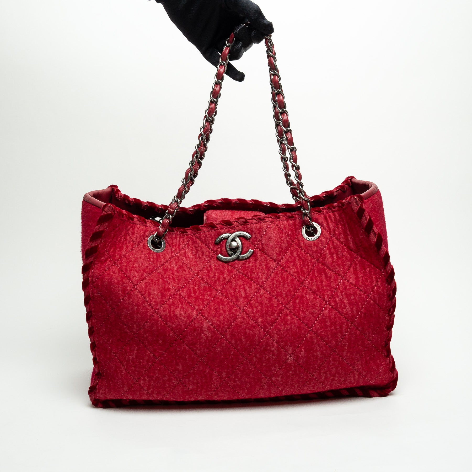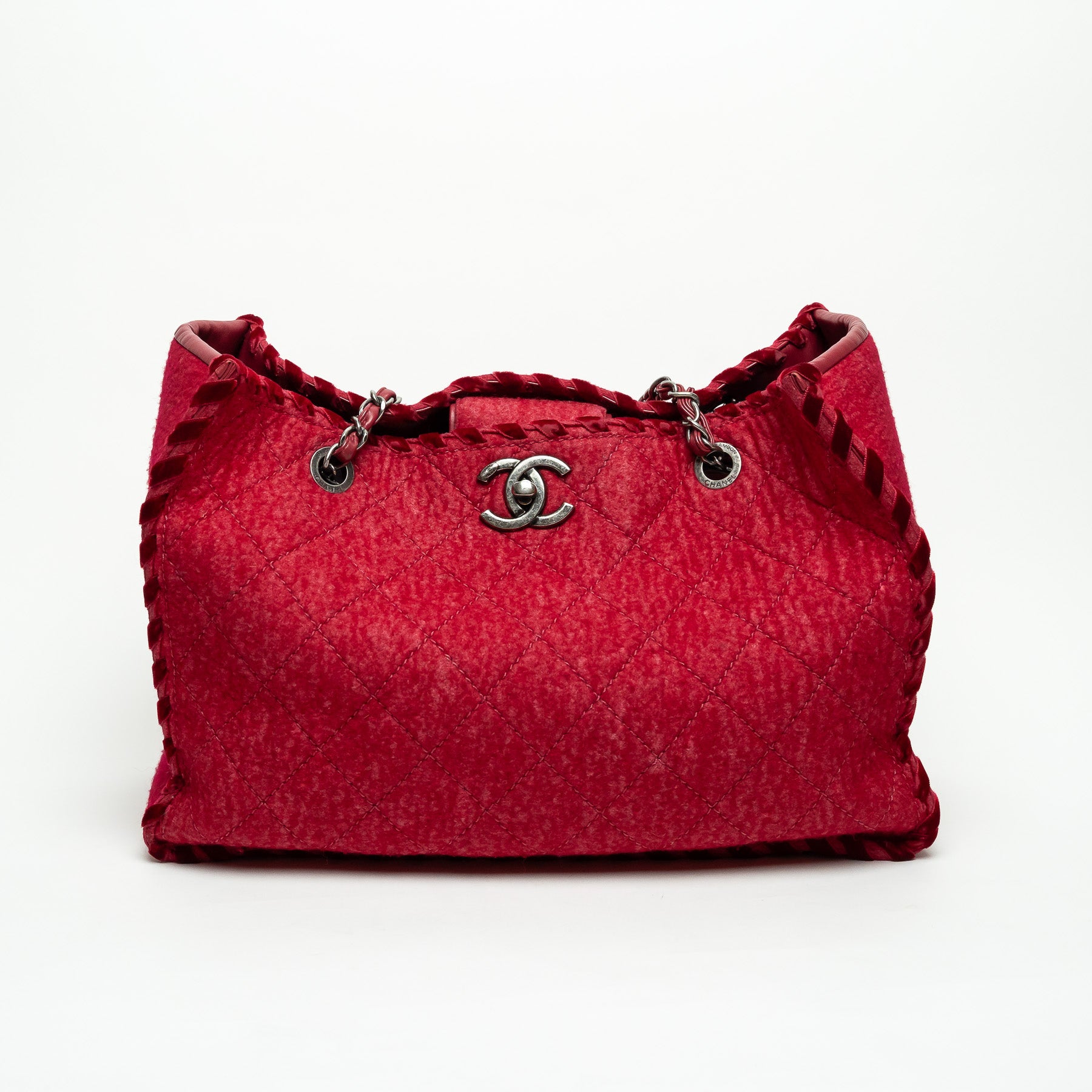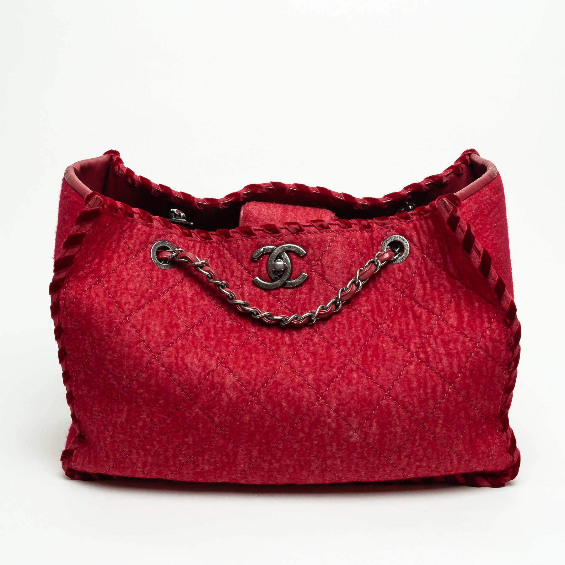 Pre-Loved Chanel ™ Raspberry Red Wool Felt Tote