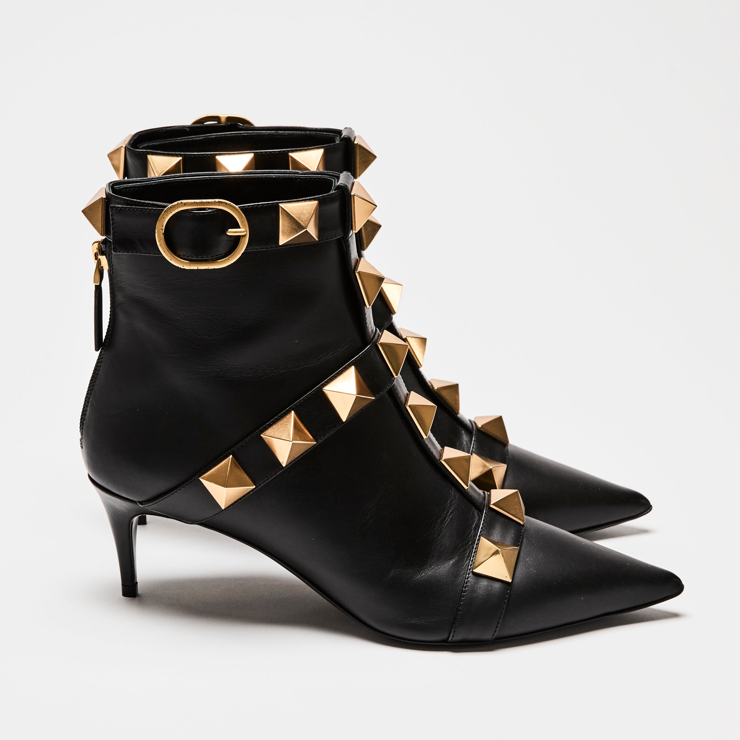 Valentino Black Leather Gold Roman Stud Boots Size 38.5