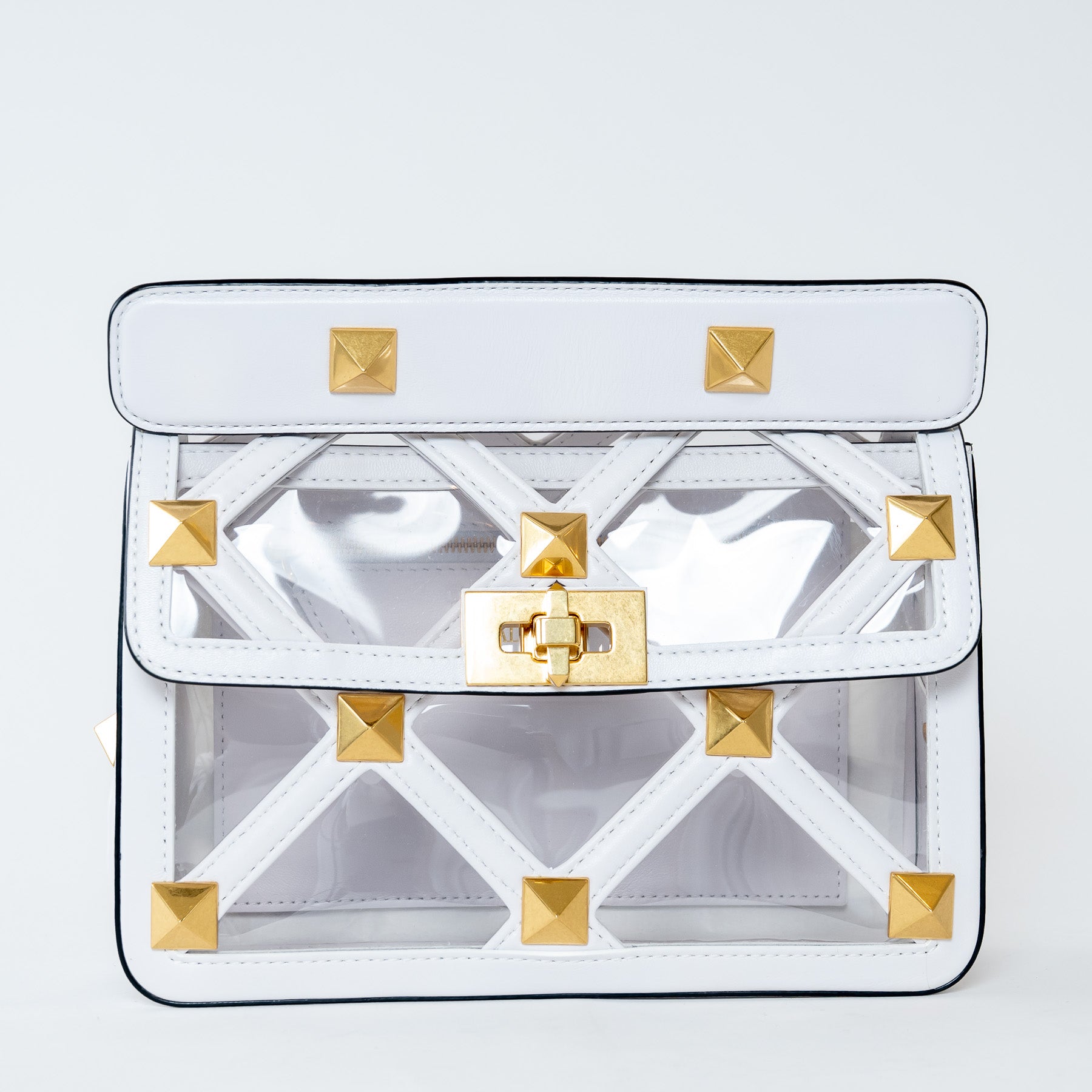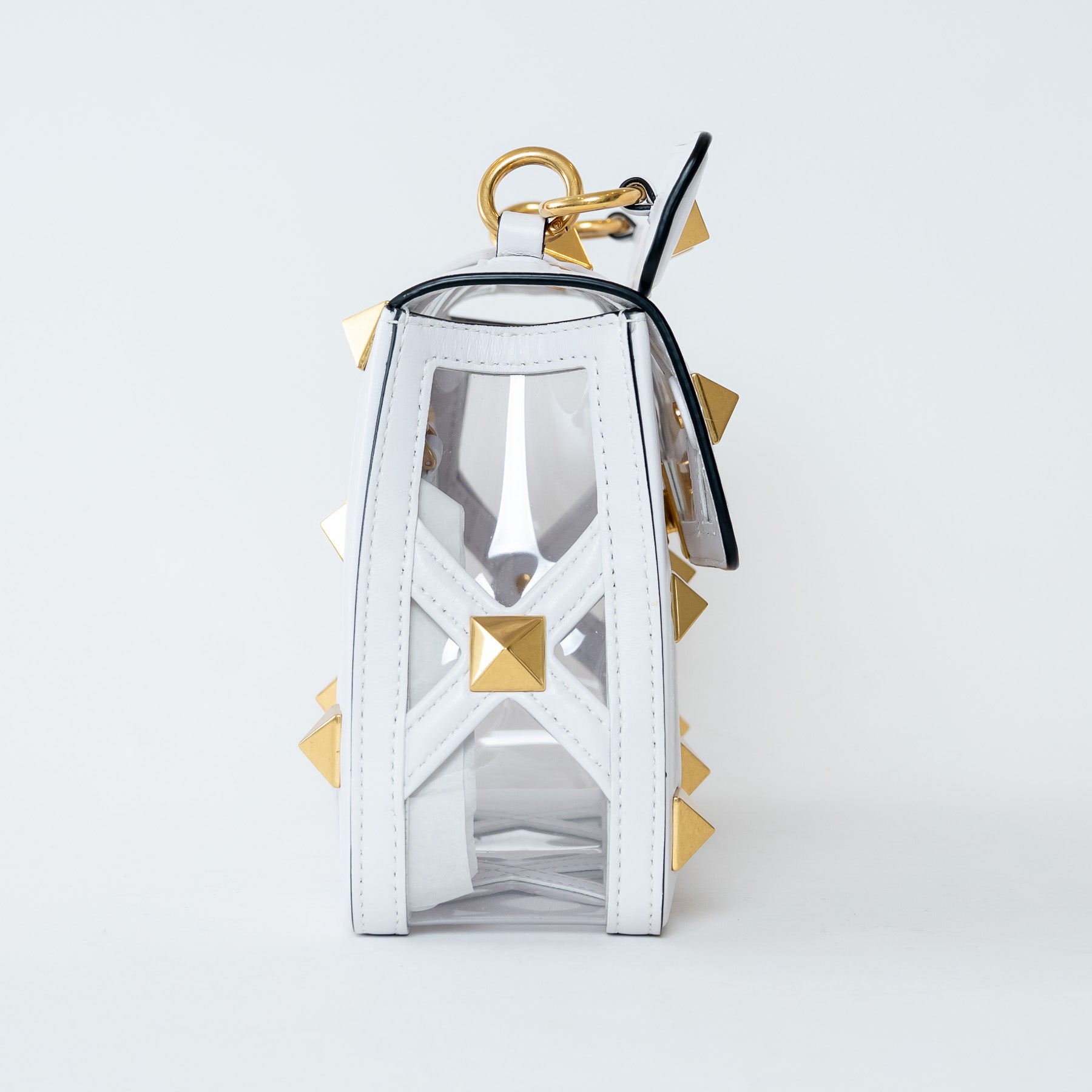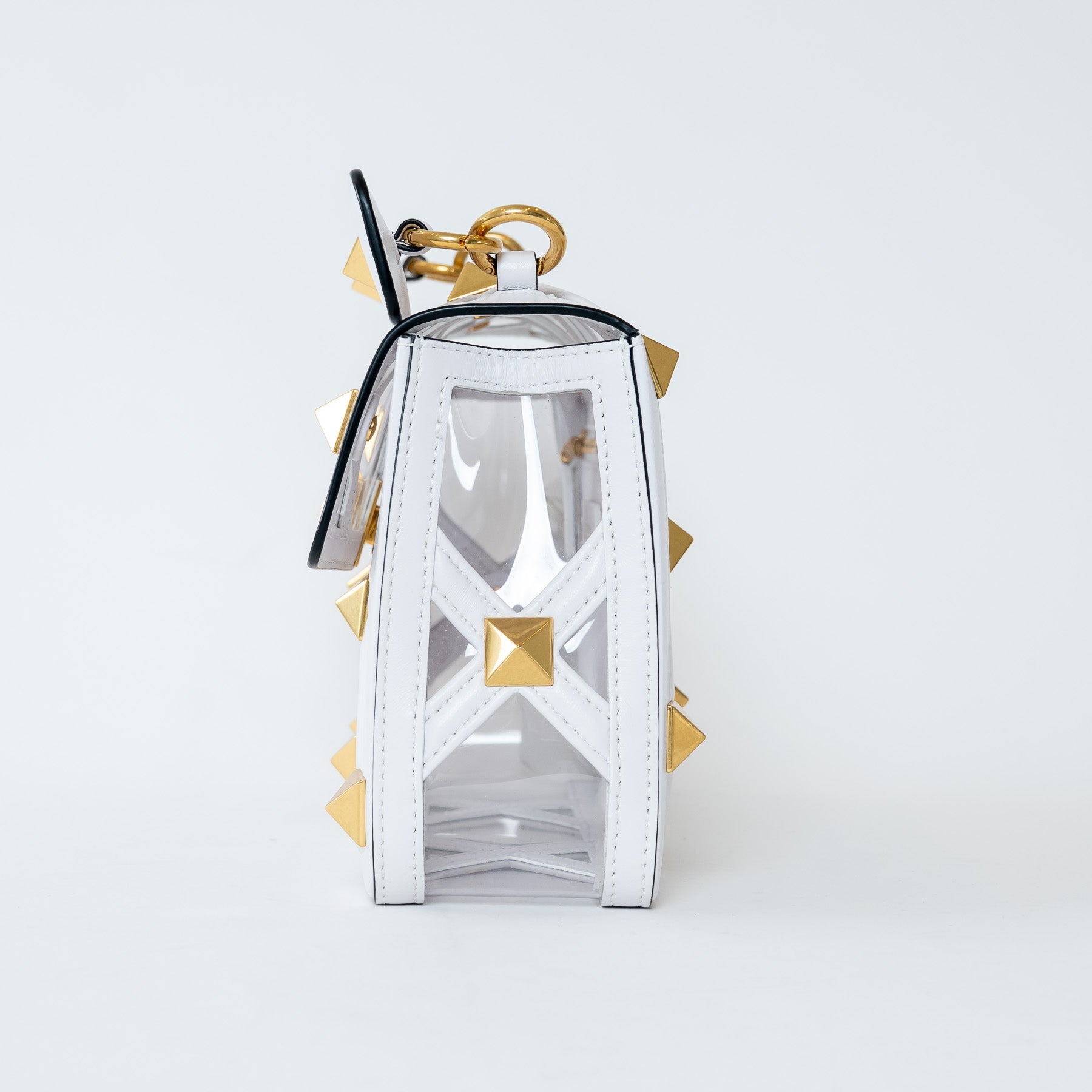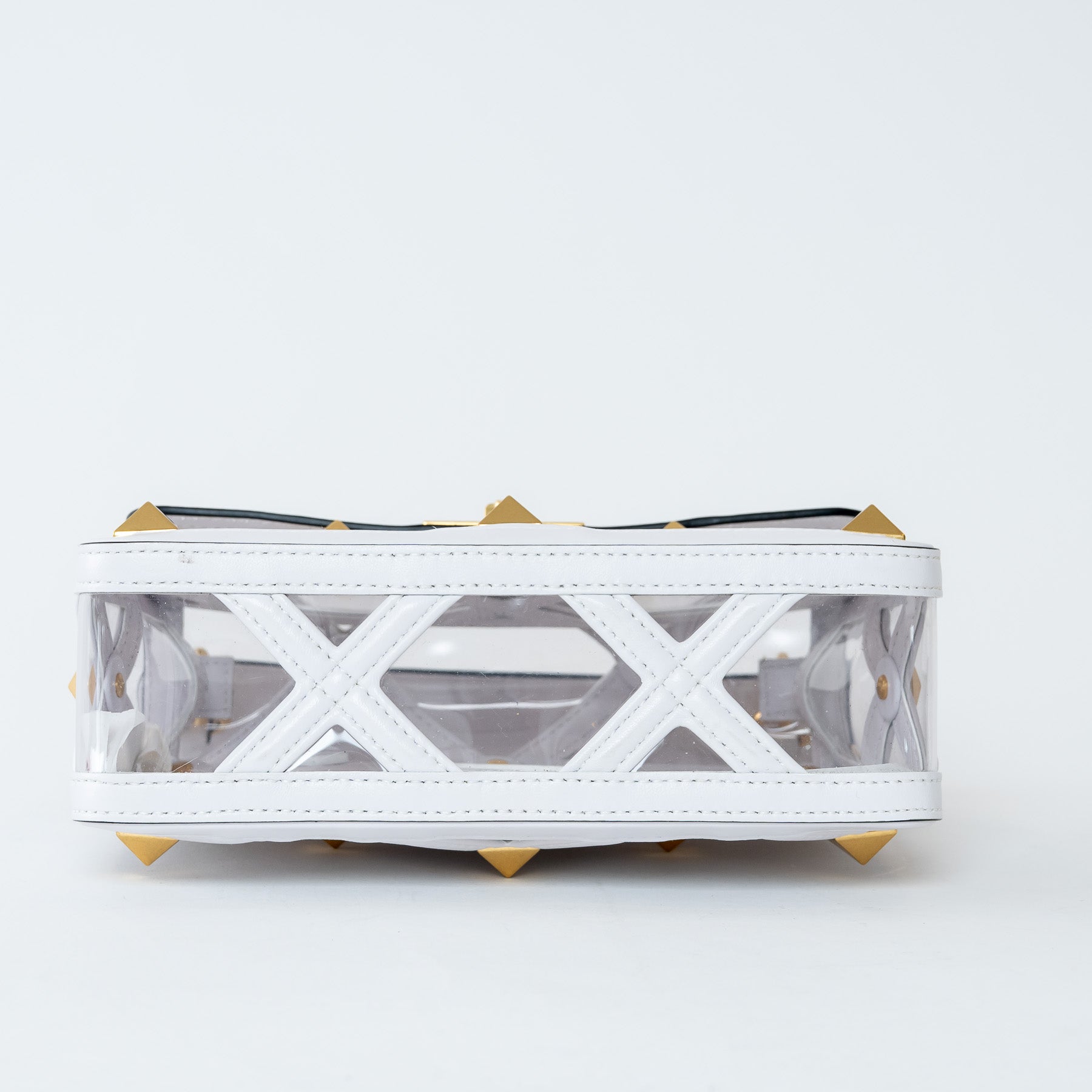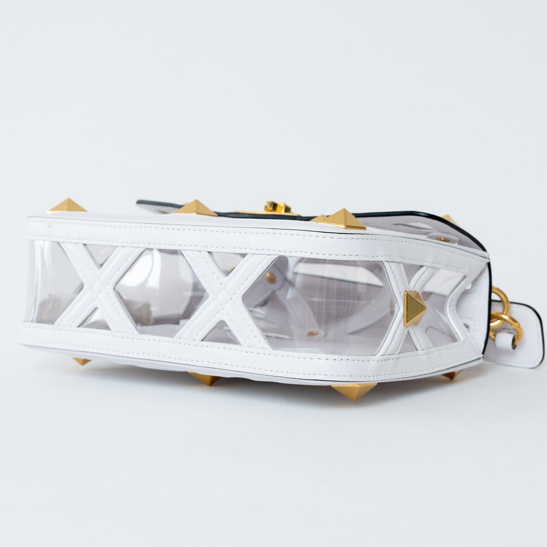 Valentino White Calf Leather and PVC Medium Roman Stud Shoulder Bag