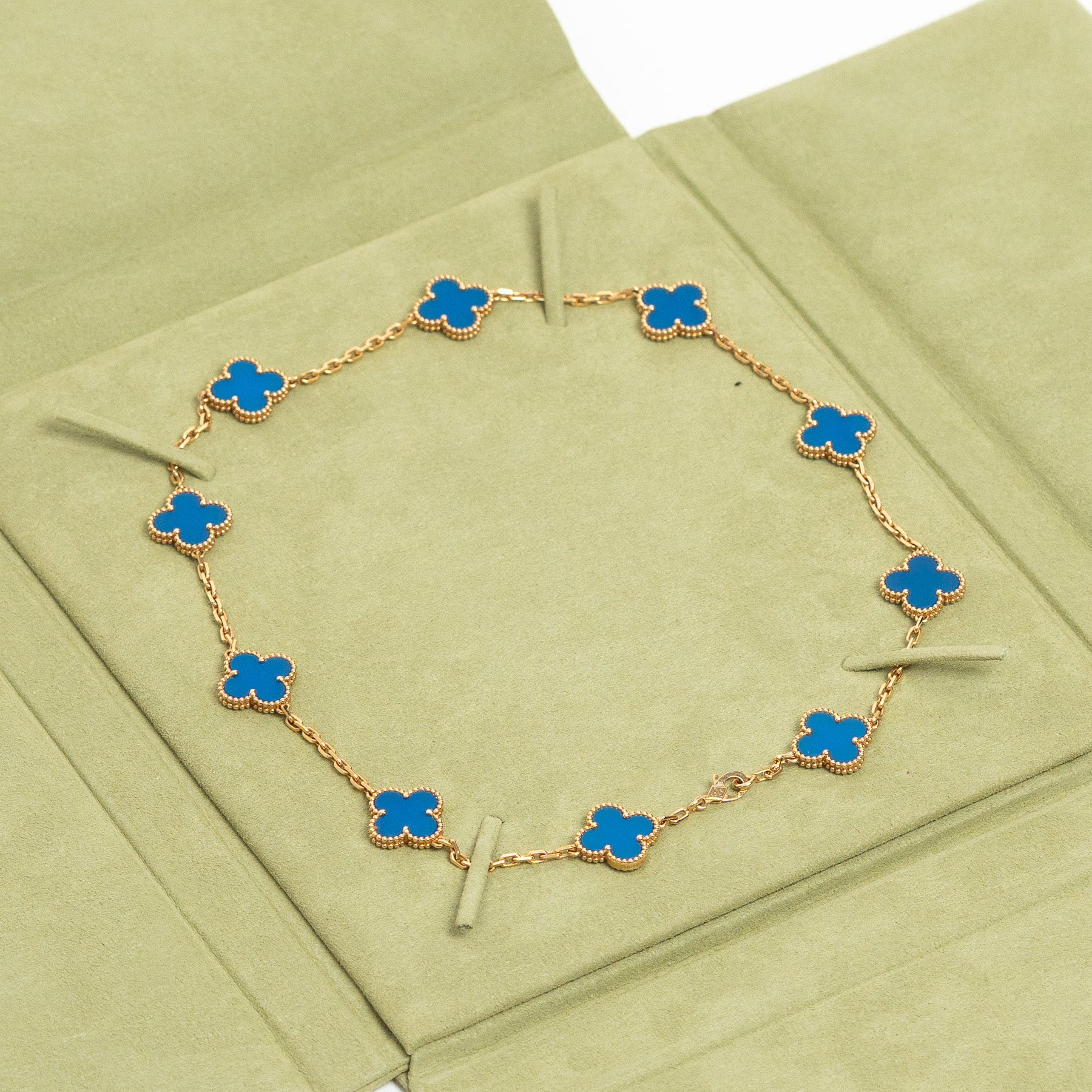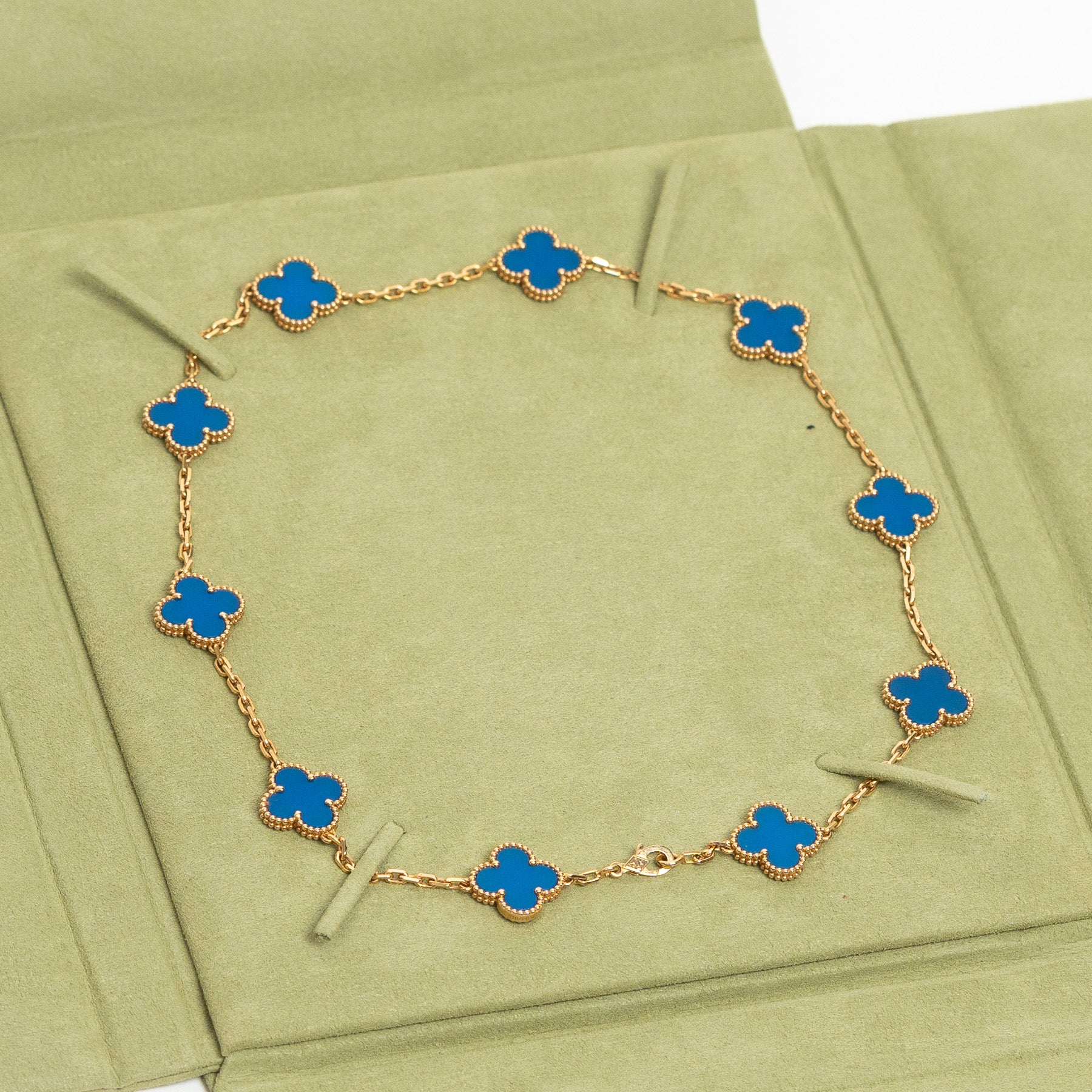 - Features: Signature VCA Alhambra design inset with Blue Agate, Hallmark clasp, 10 motifs