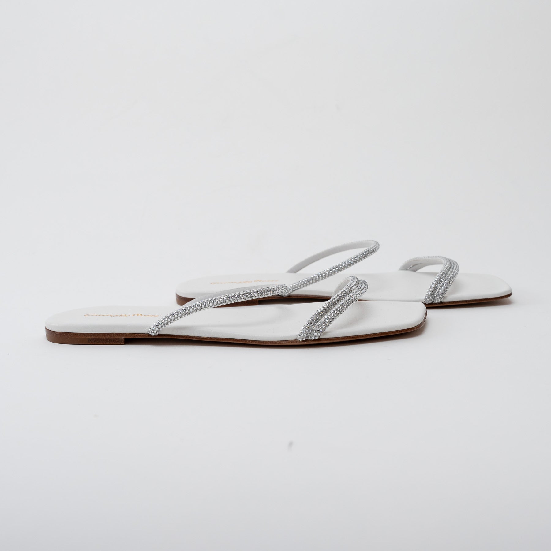 Gianvito Rossi White Grained Leather with Crystal Embellishment Slide Sandals Size 41