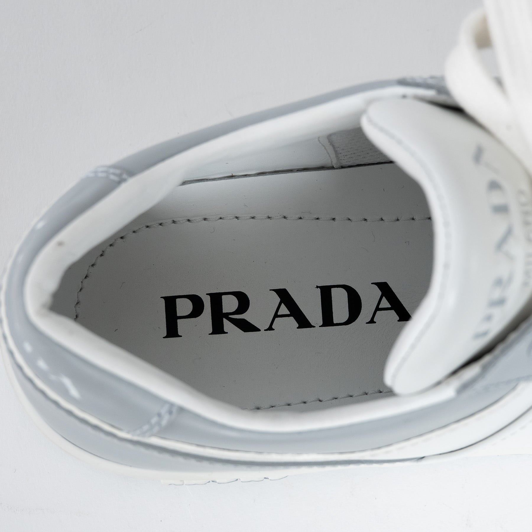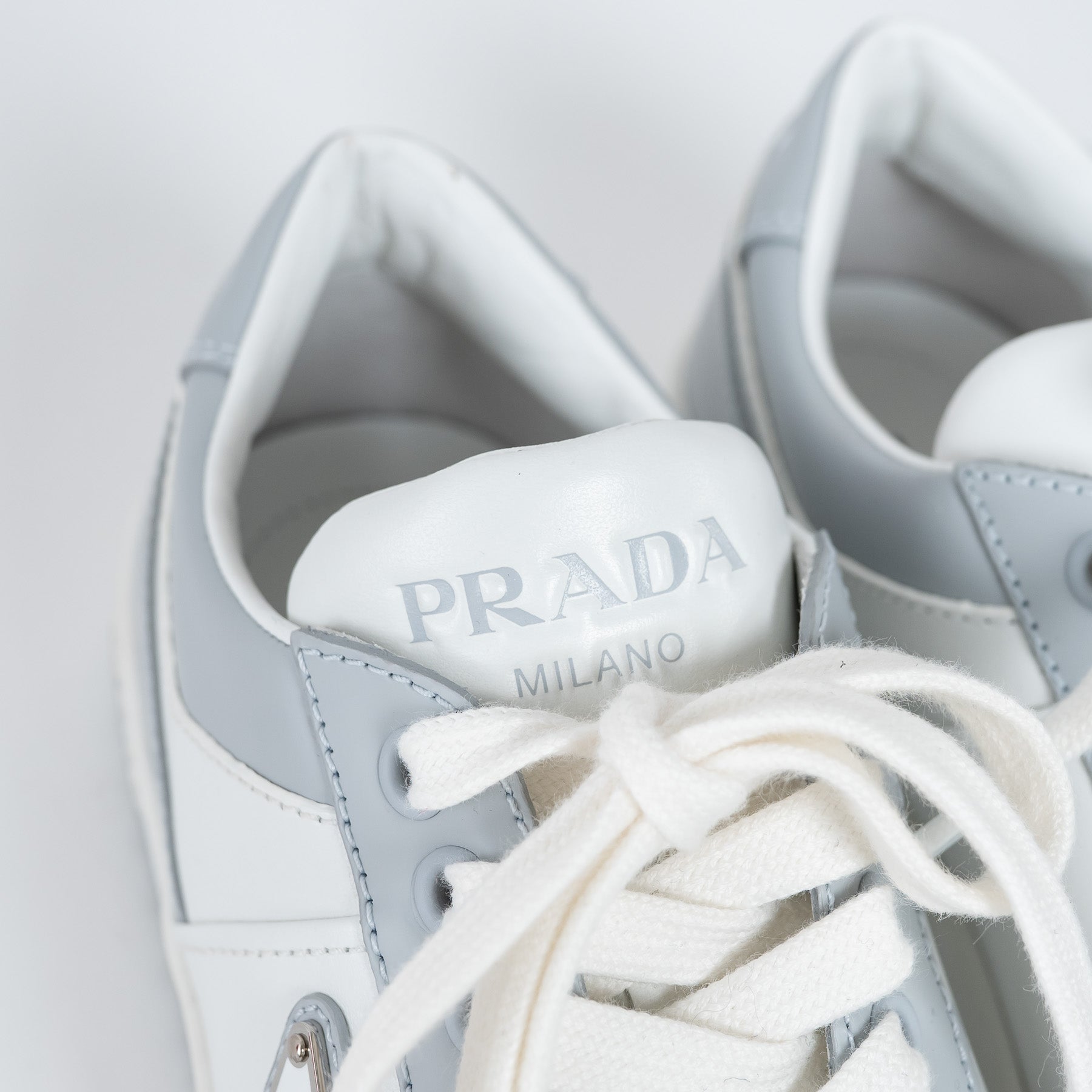 Prada White/Grey Calf Leather Downtown Low Top Sneakers Size 37.5