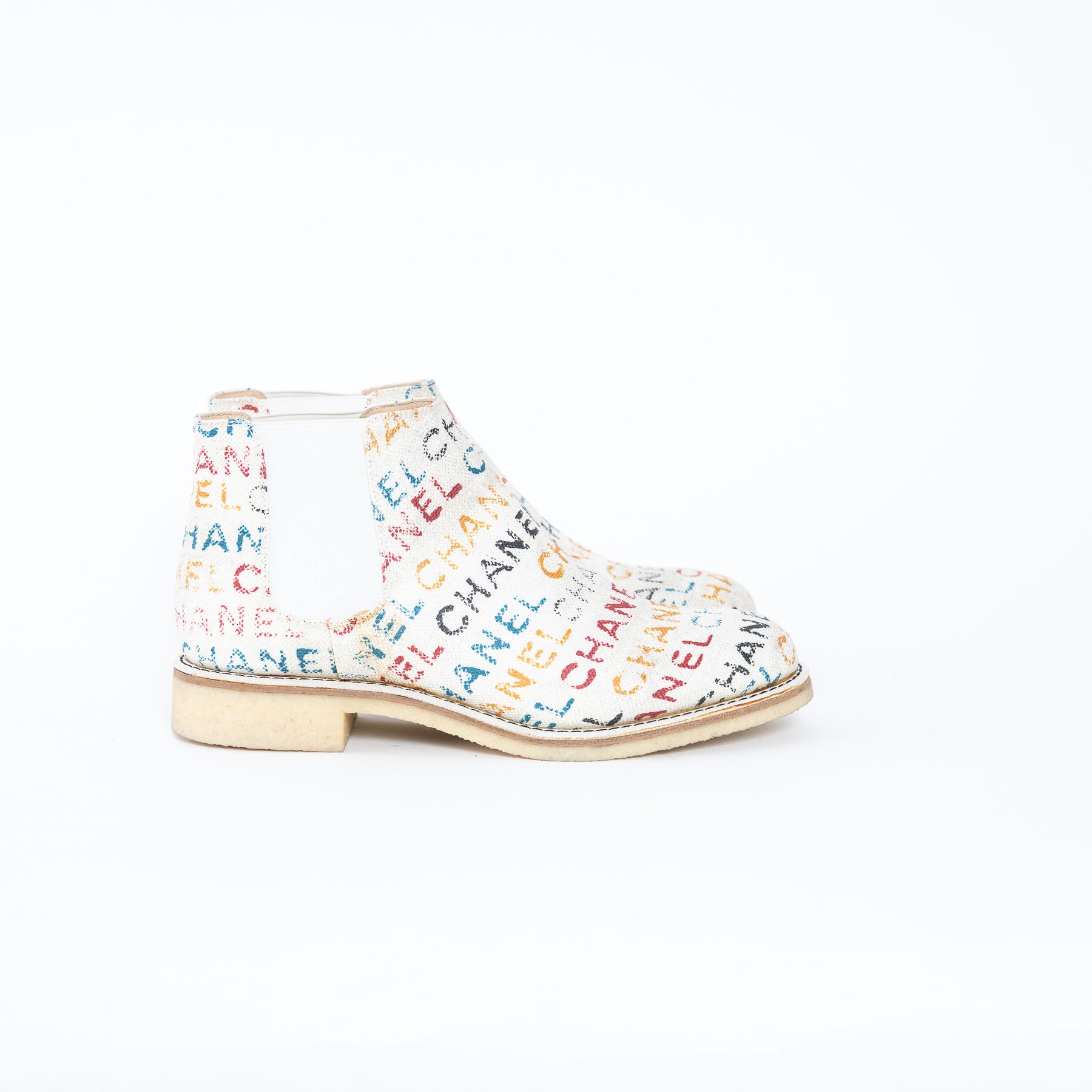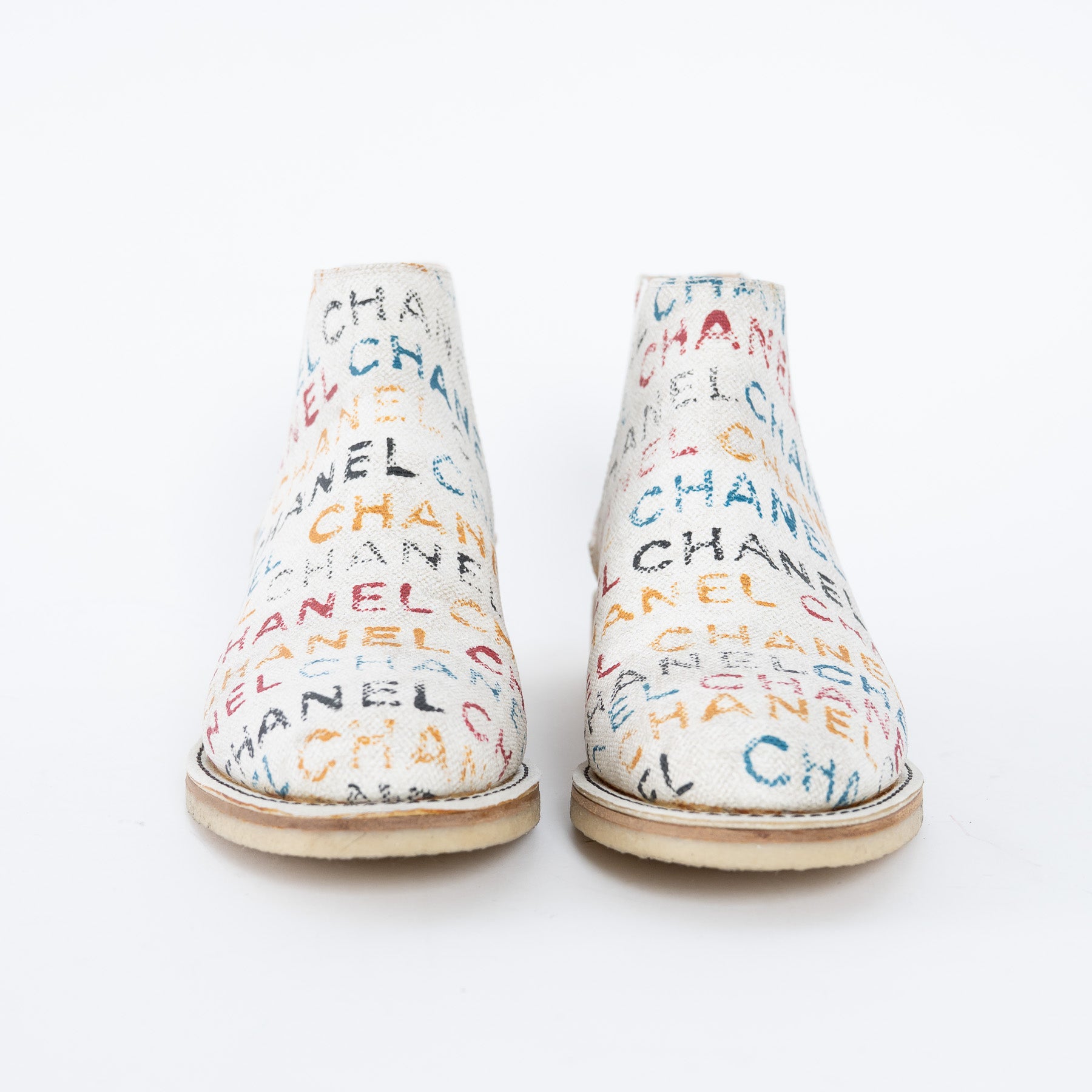 Pre-Loved Chanel™ Multicolour Logo Print Ankle Boots Size 38.5