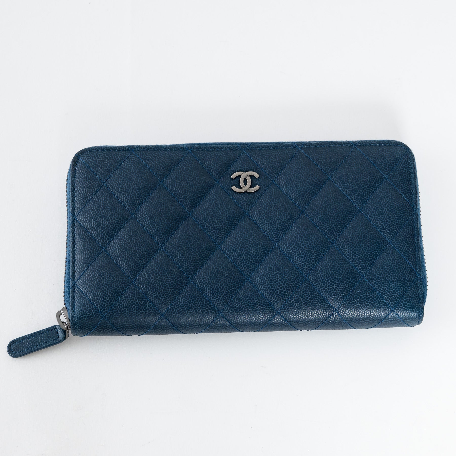 Pre-Loved Chanel™ Blue Caviar Leather Zip Around Continental Wallet