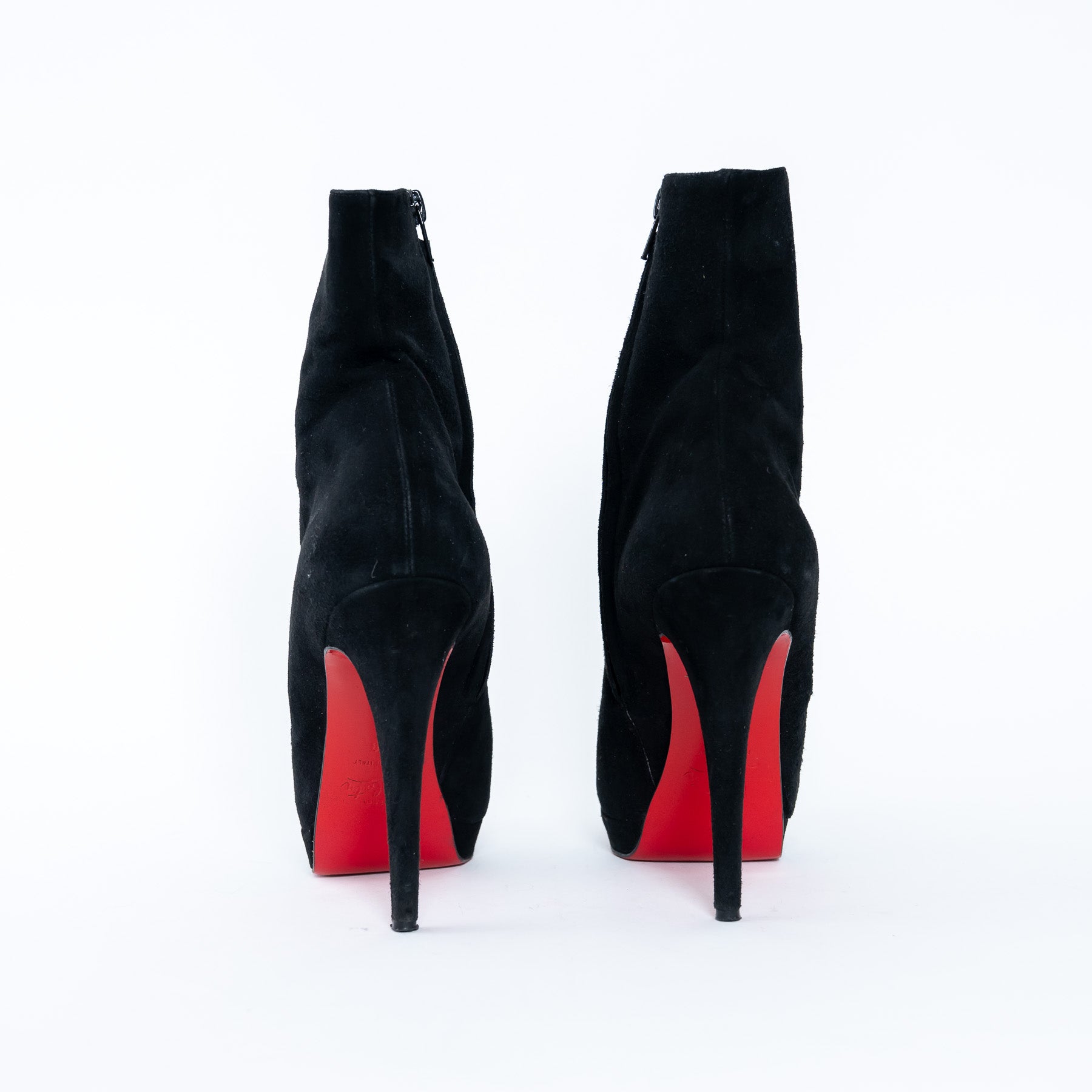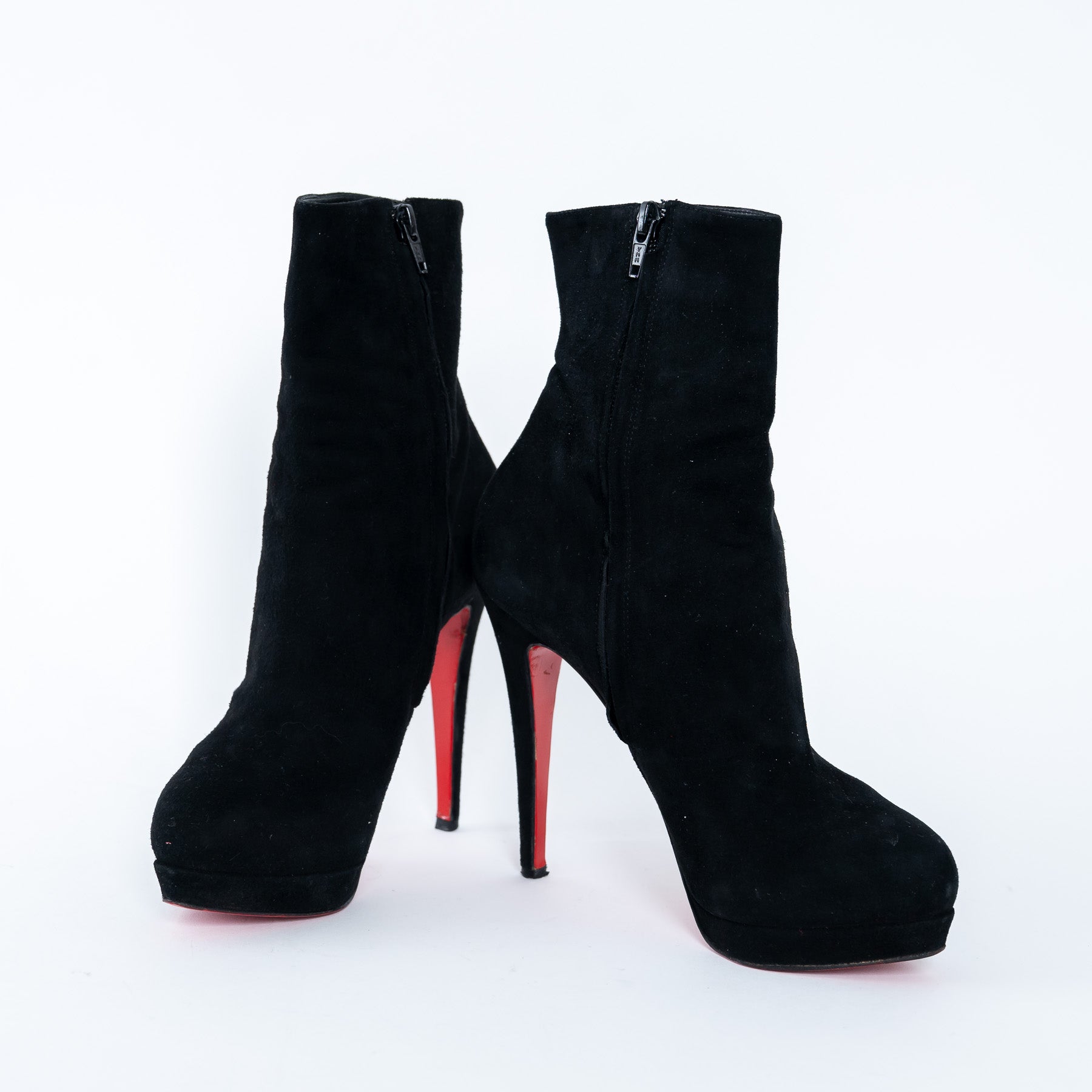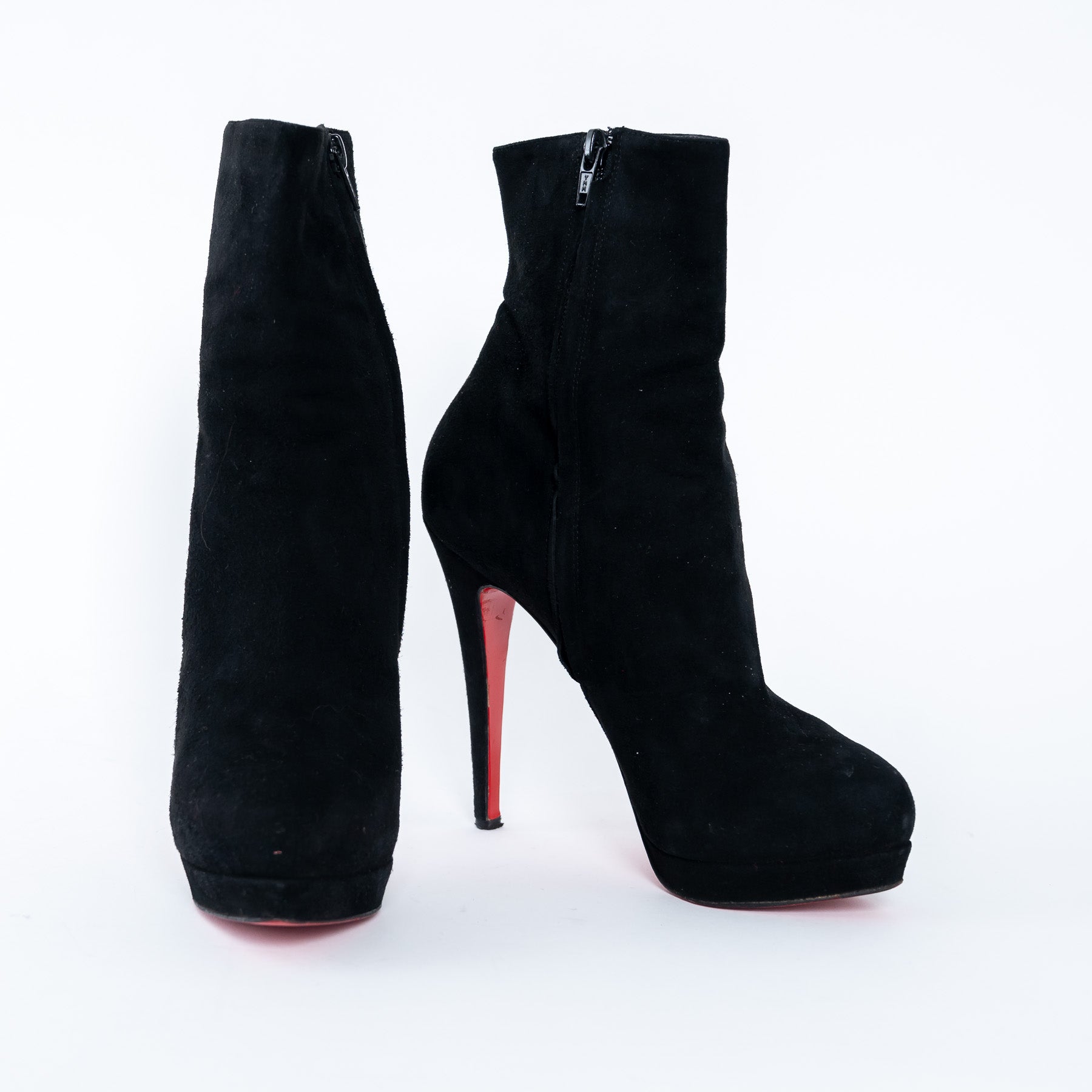Louboutin Black Suede Platform Heeled Boots Size 38