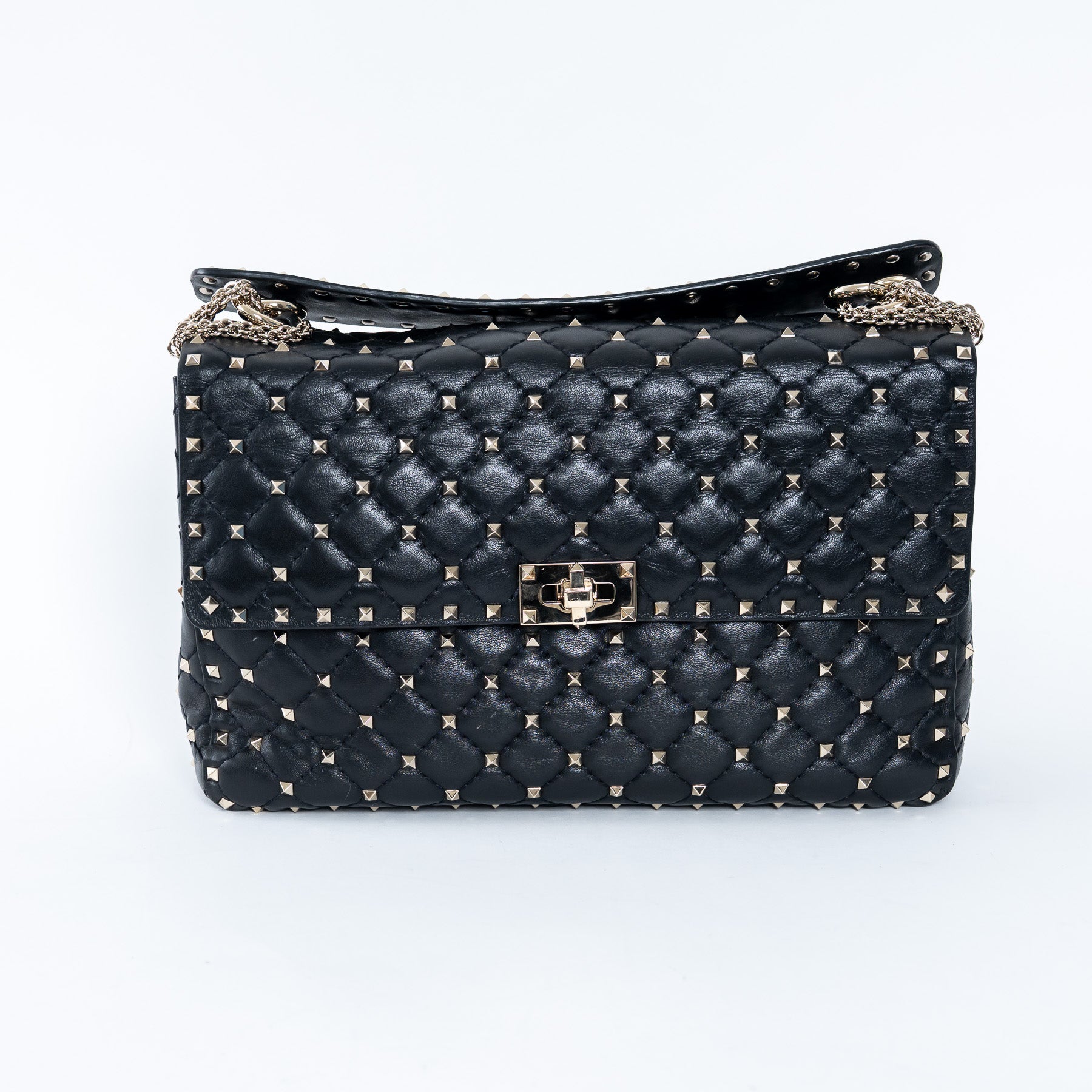 Valentino Quilted Rockstud Splice Leather Chain Bag