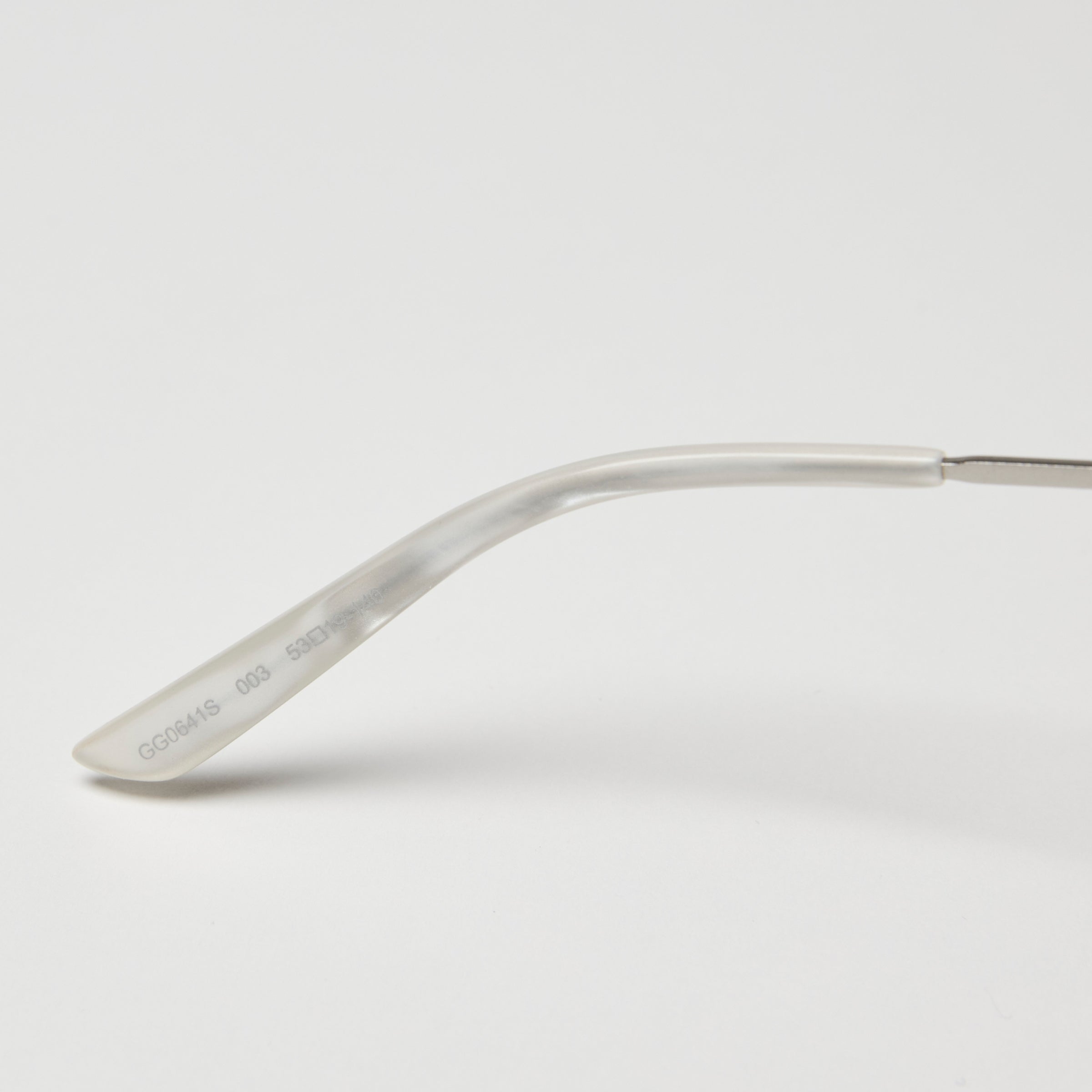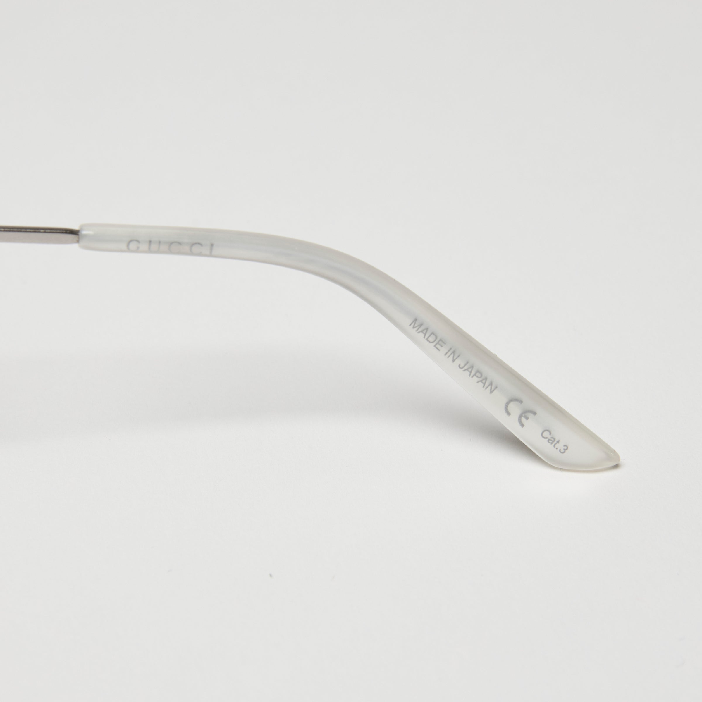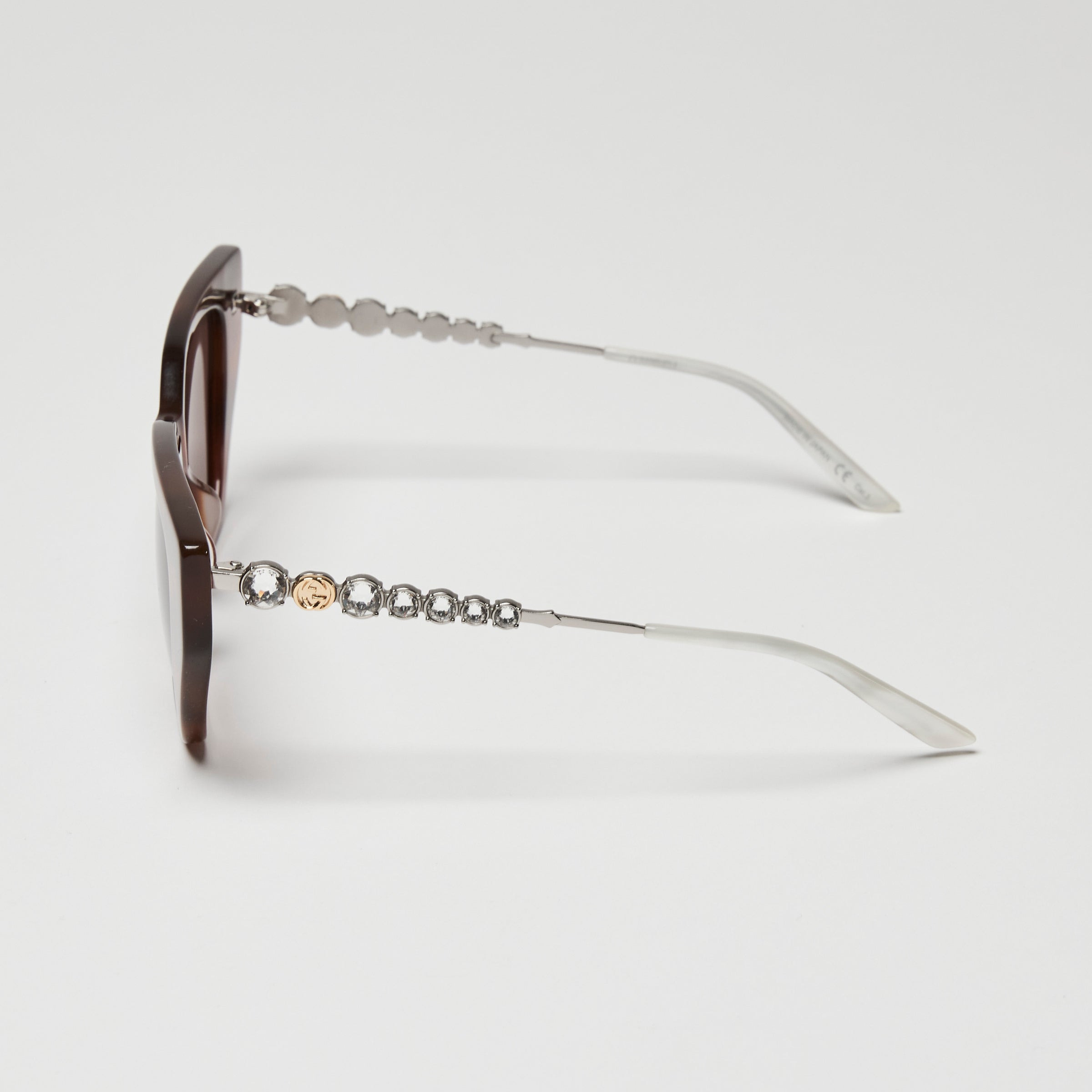 - Features: GG logo on frame arms with inset crystals, Engraved Gucci on right lens
