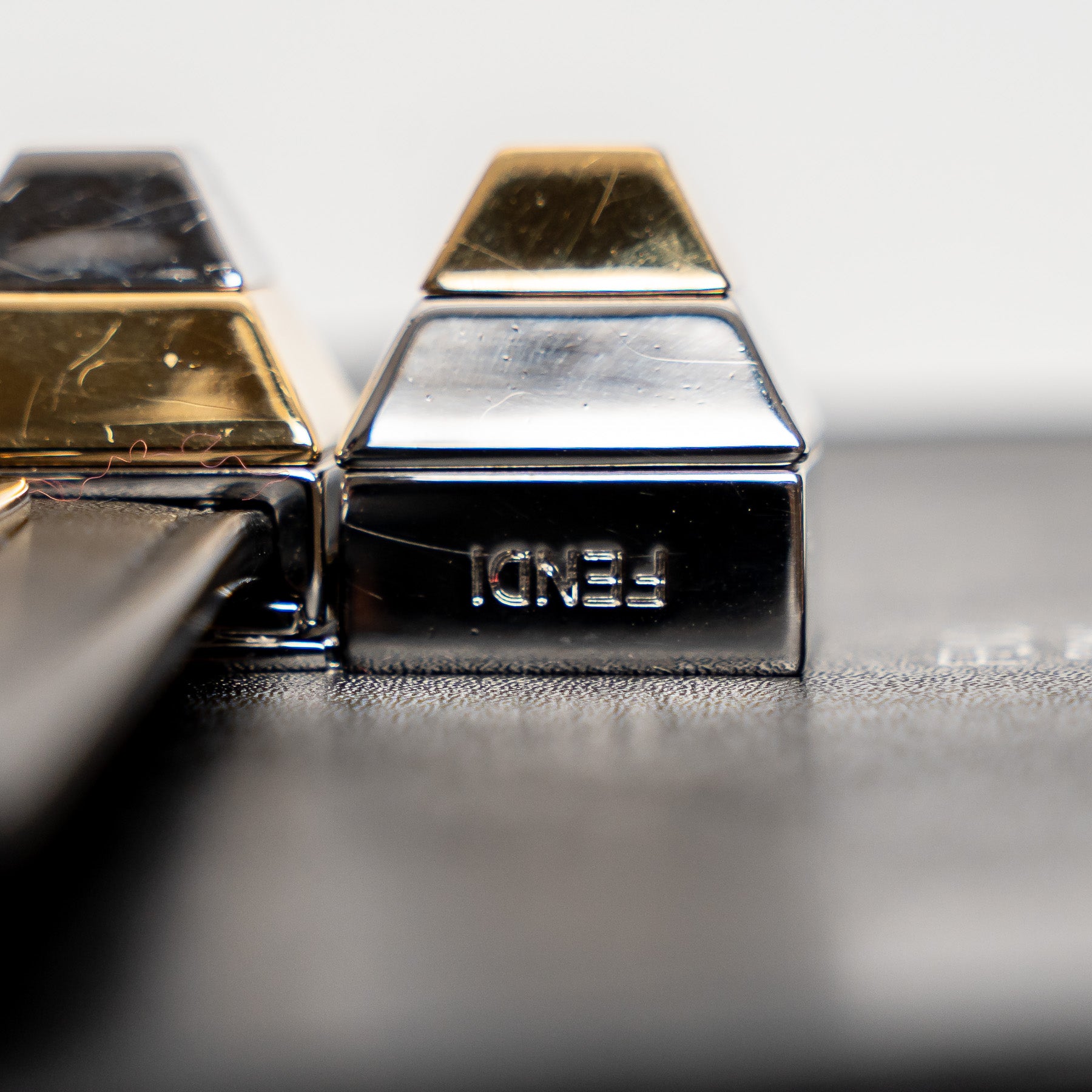 - Exterior Features: Two metal studs featuring a push button closure, Signature Fendi Monster eyes, Chain strap with leather padding, Two gussets
