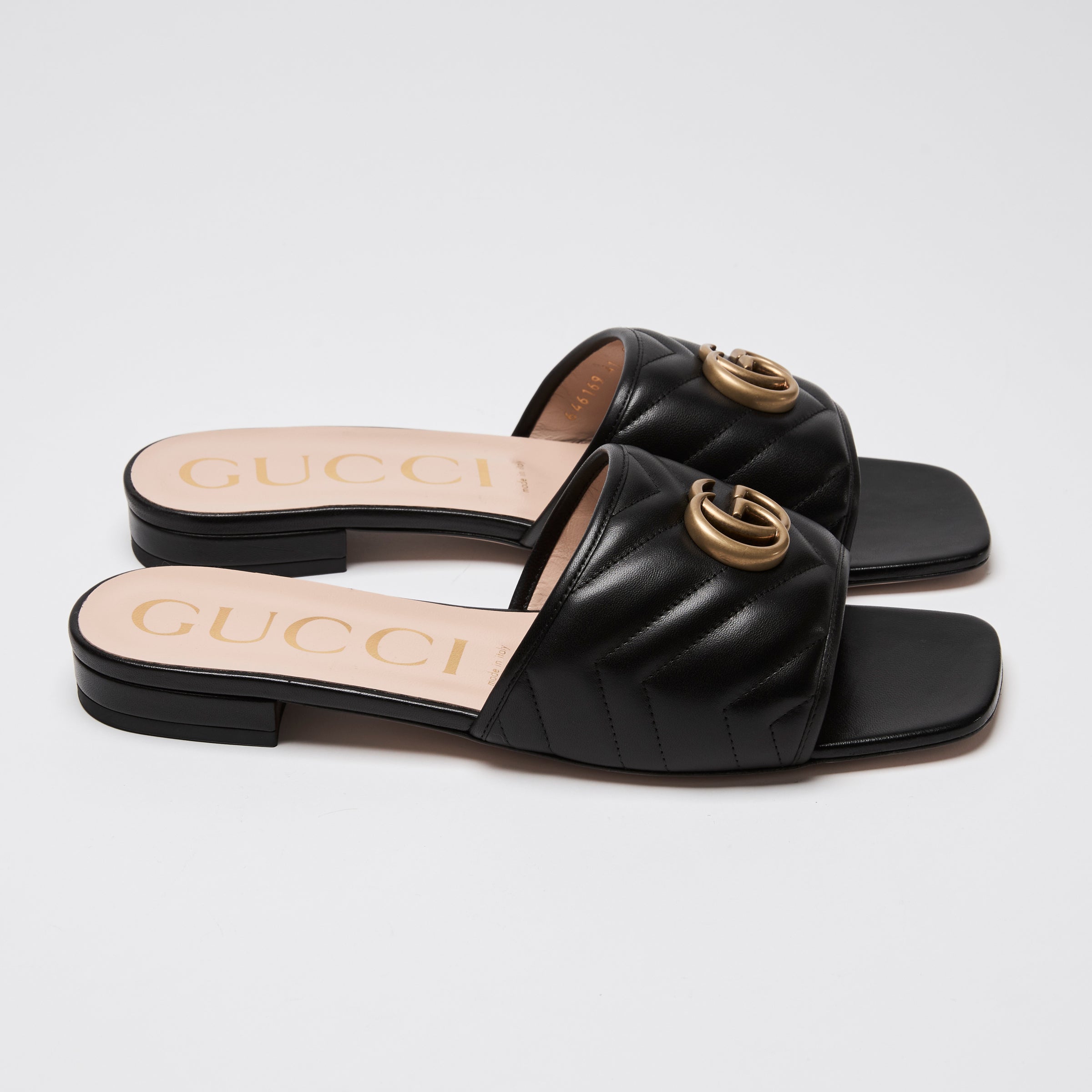 - Details: Chevron quilted leather, Leather insole, Gold GG Marmont, Square toe, Open toe