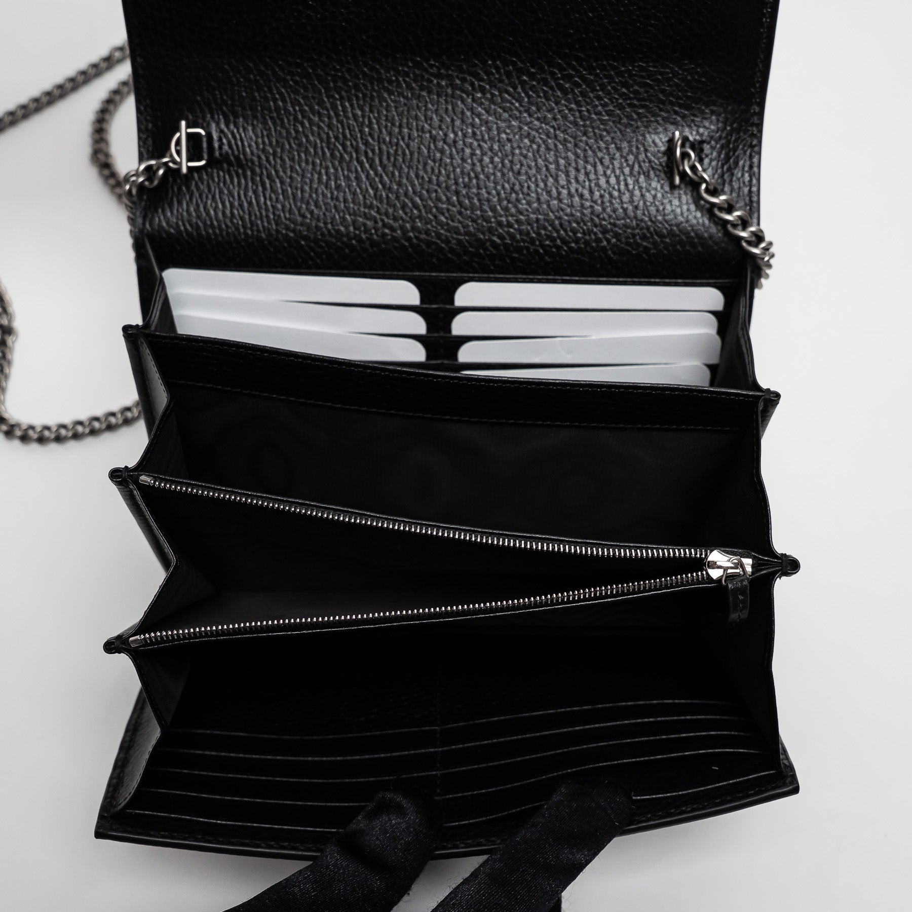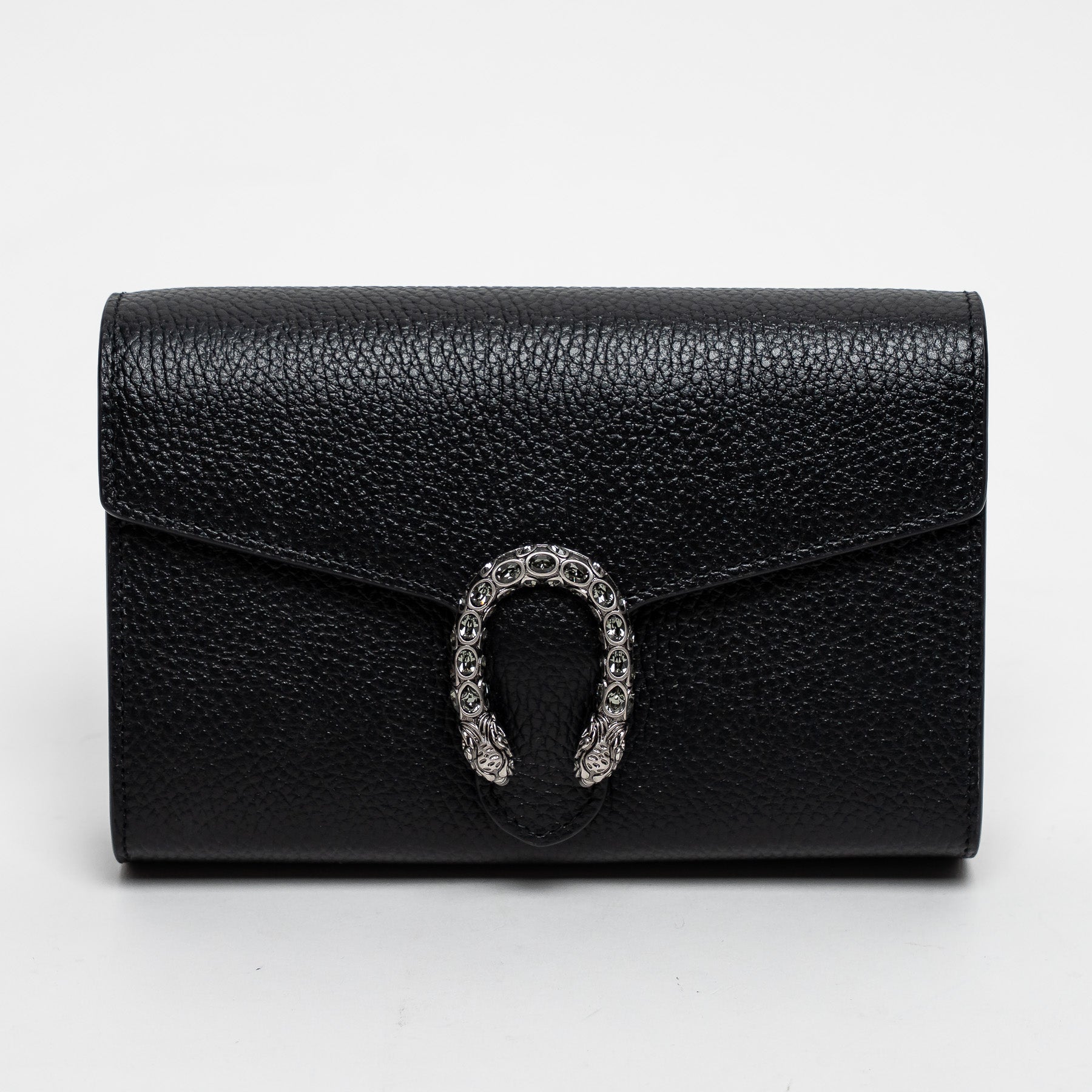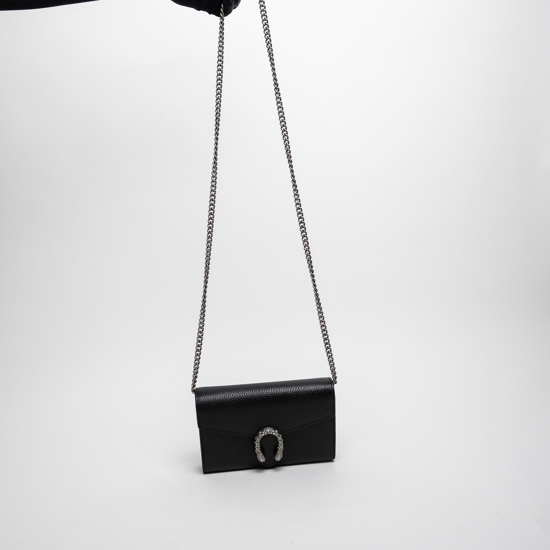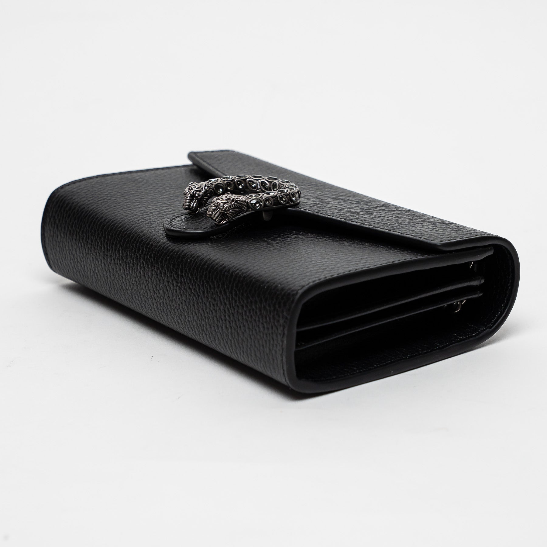 Gucci Black Grained Leather Dionysus Wallet on Chain