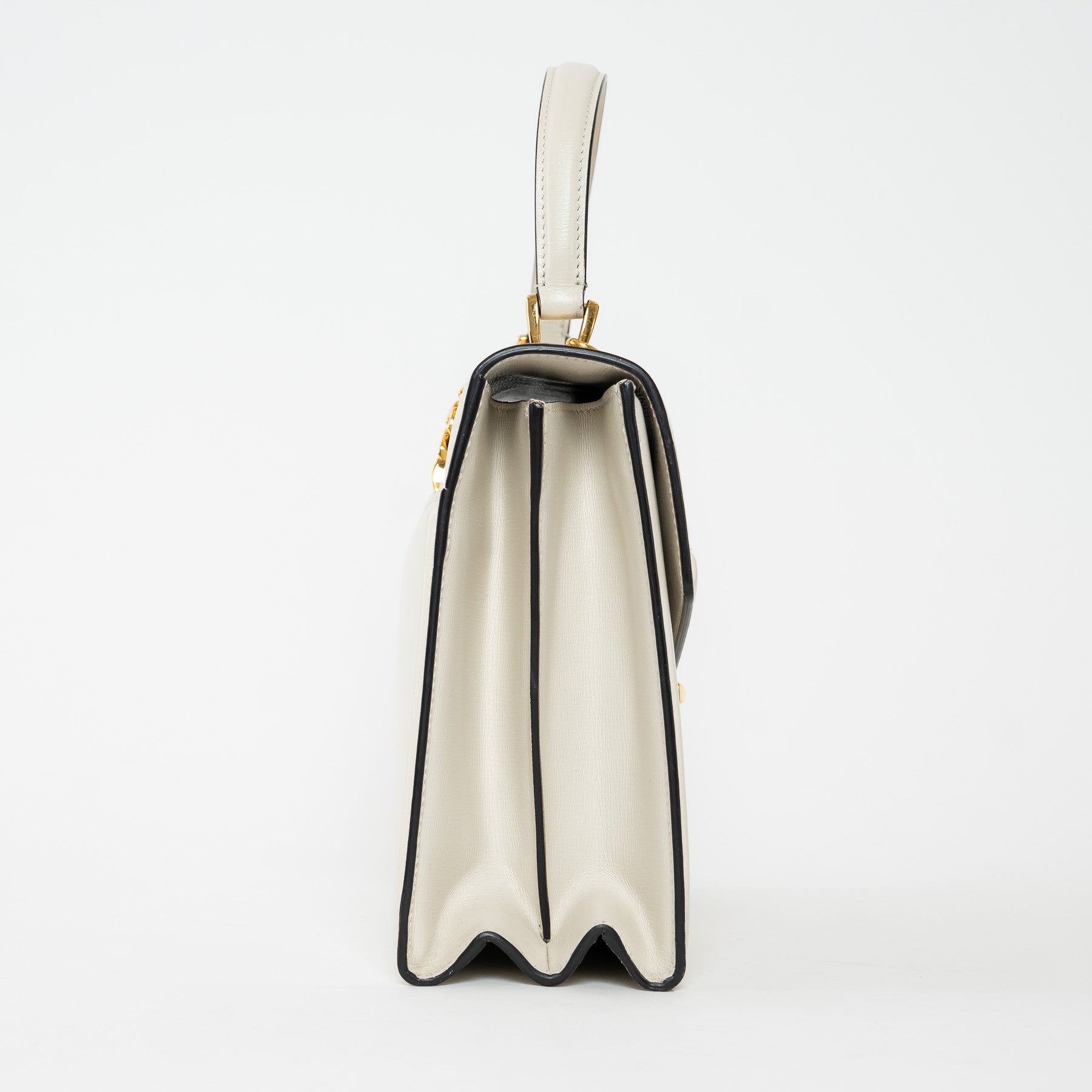 Gucci White Calfskin Leather Medium Sylvie 1969 Top Handle Bag