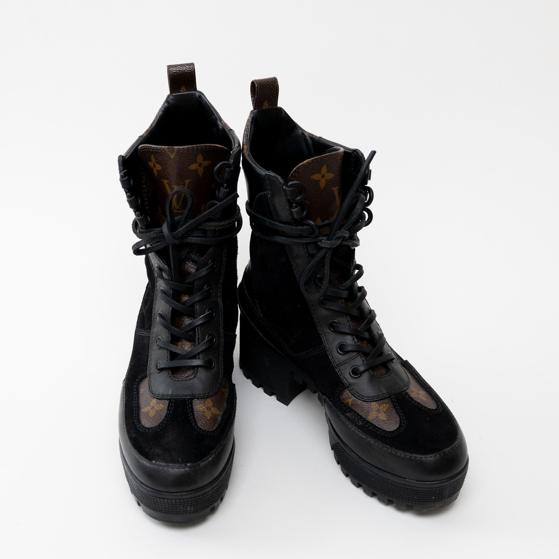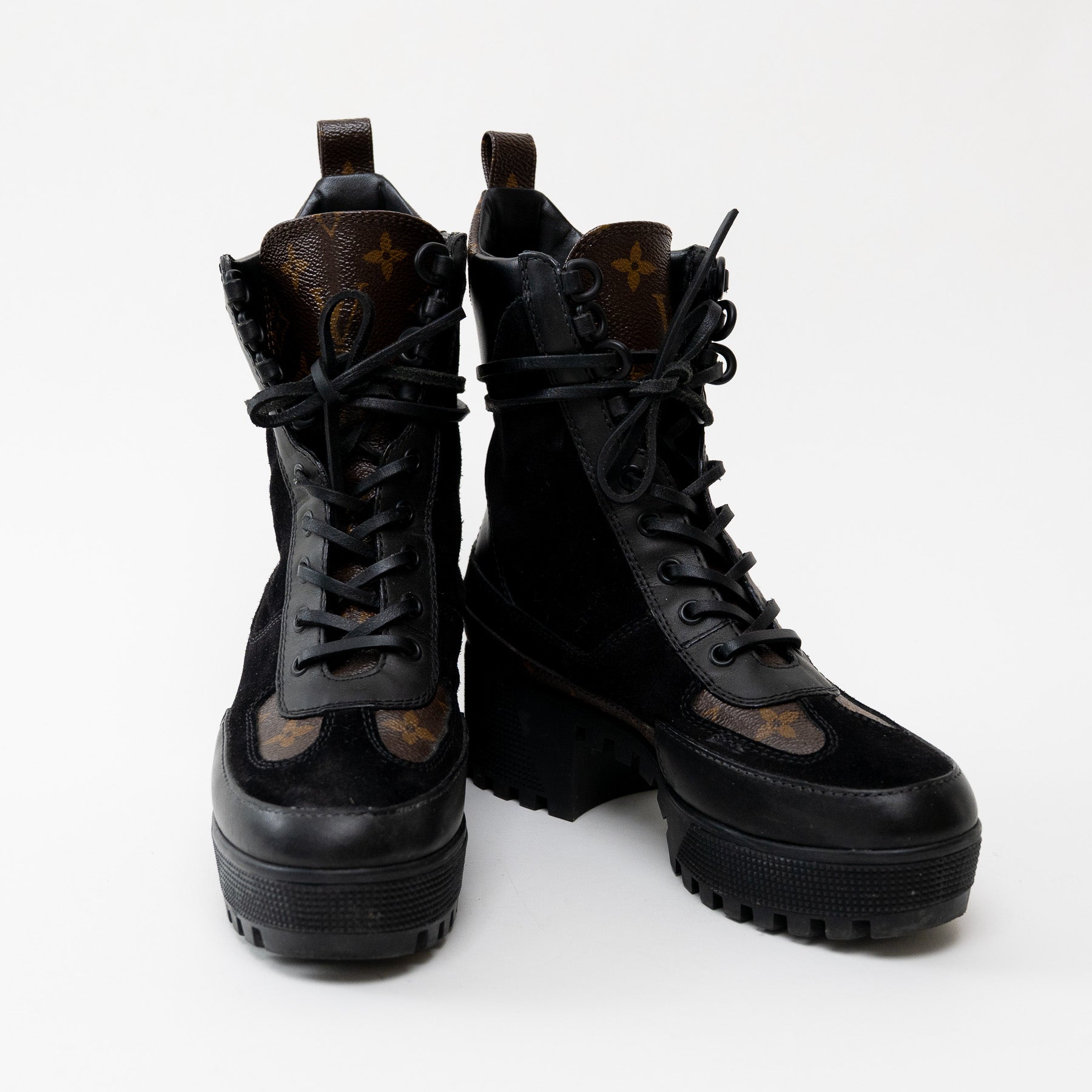 Louis Vuitton Monogram Canvas Black Suede Laureate Platform Desert Boot 36.5