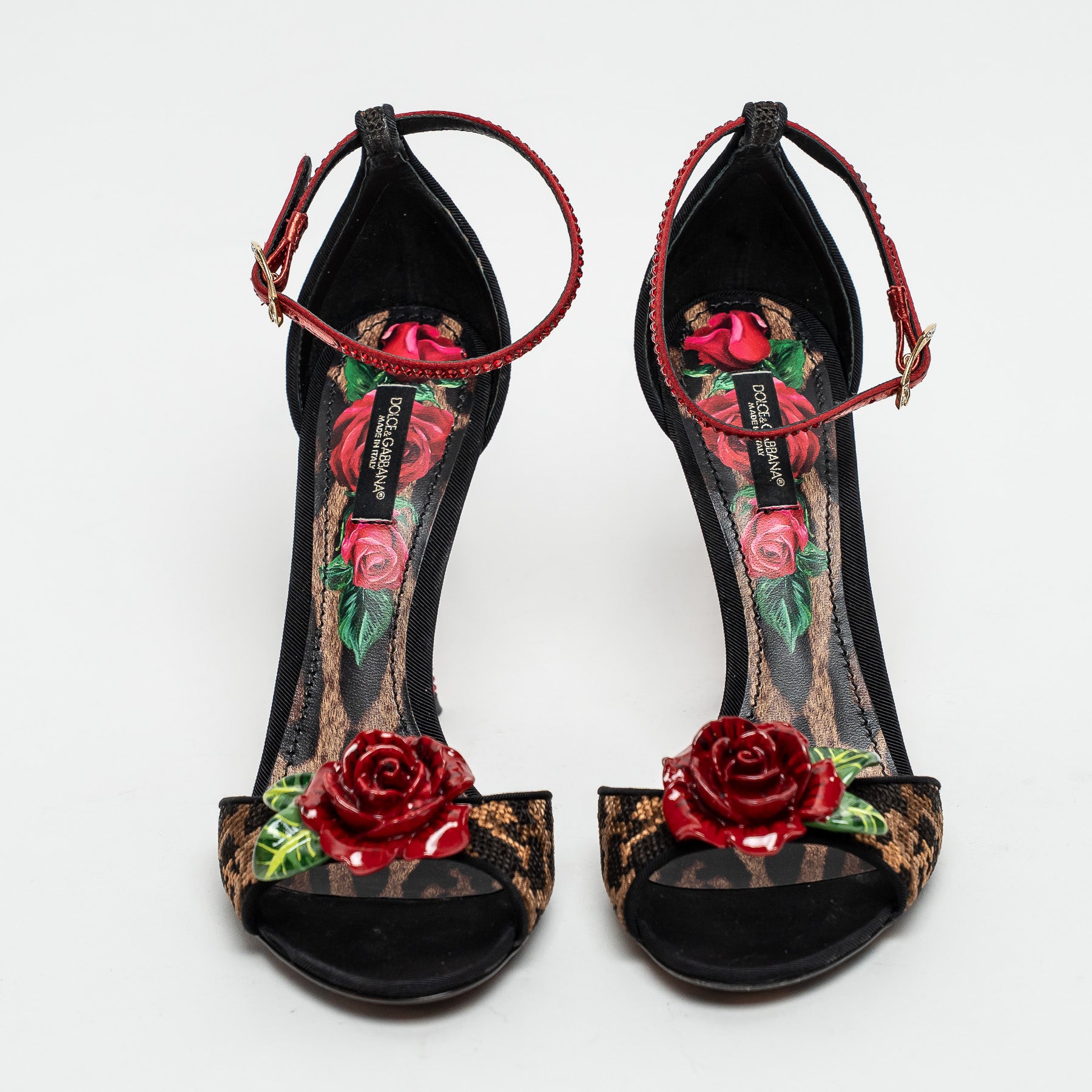 Dolce & Gabbana Leopard Print Canvas with Rose Sandals Size 38