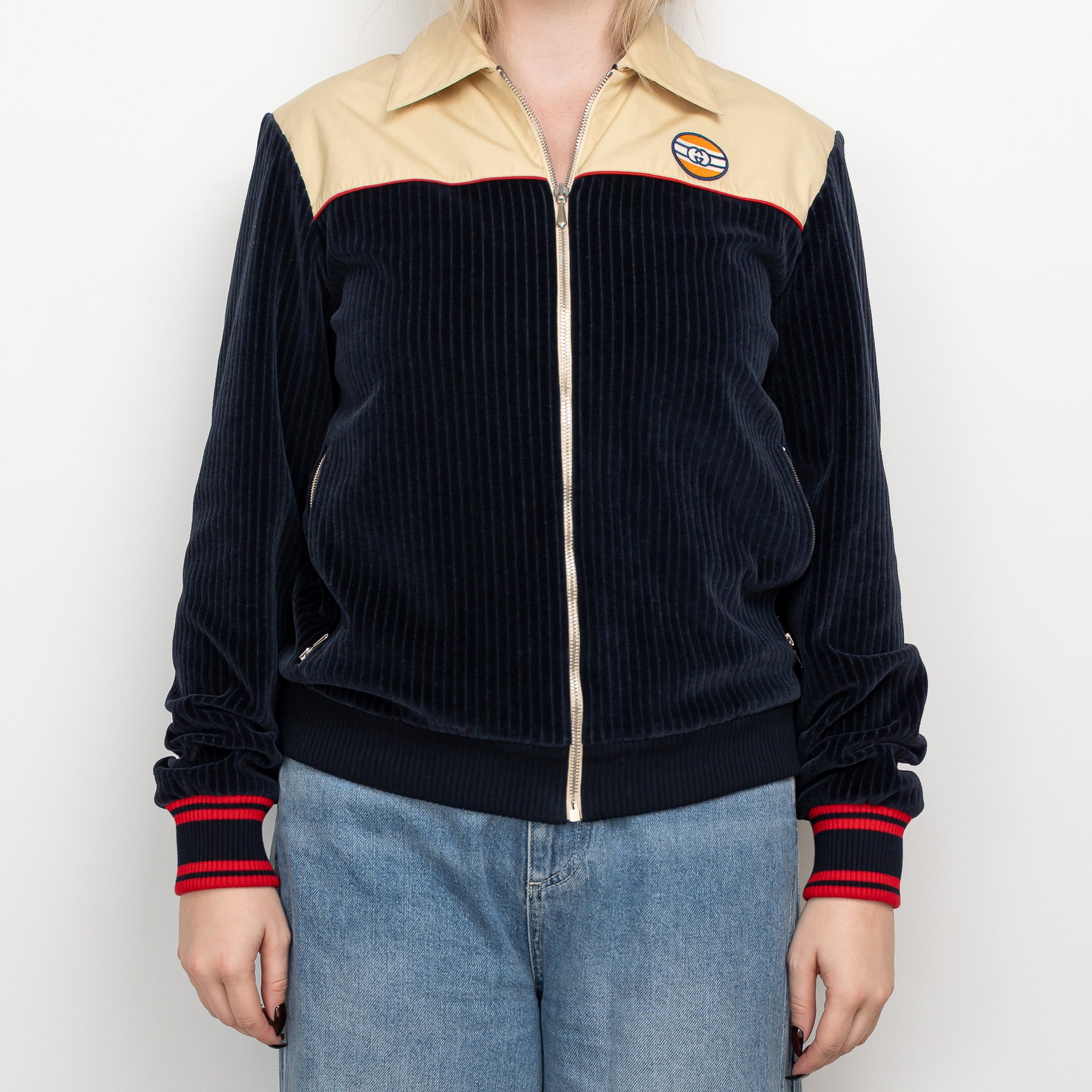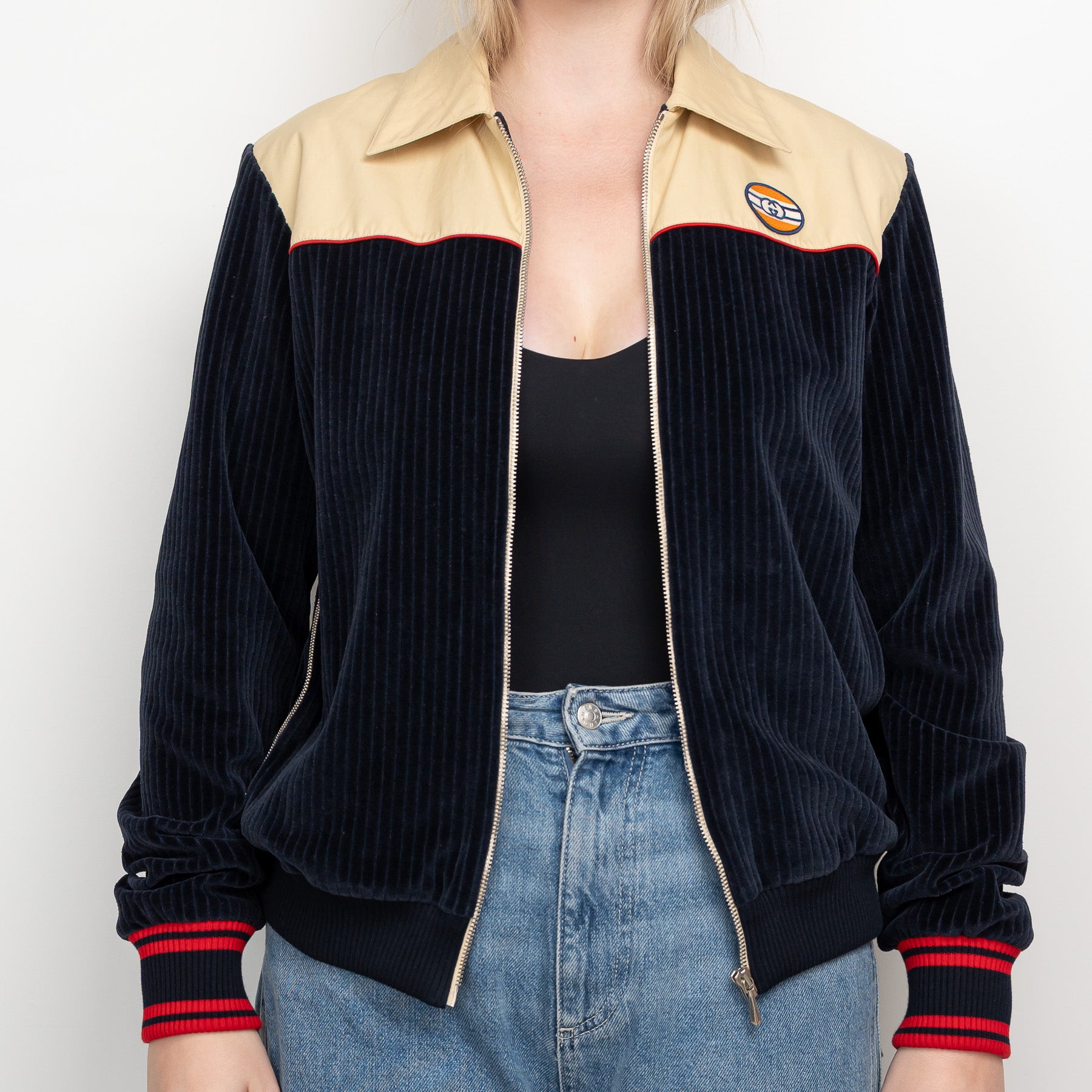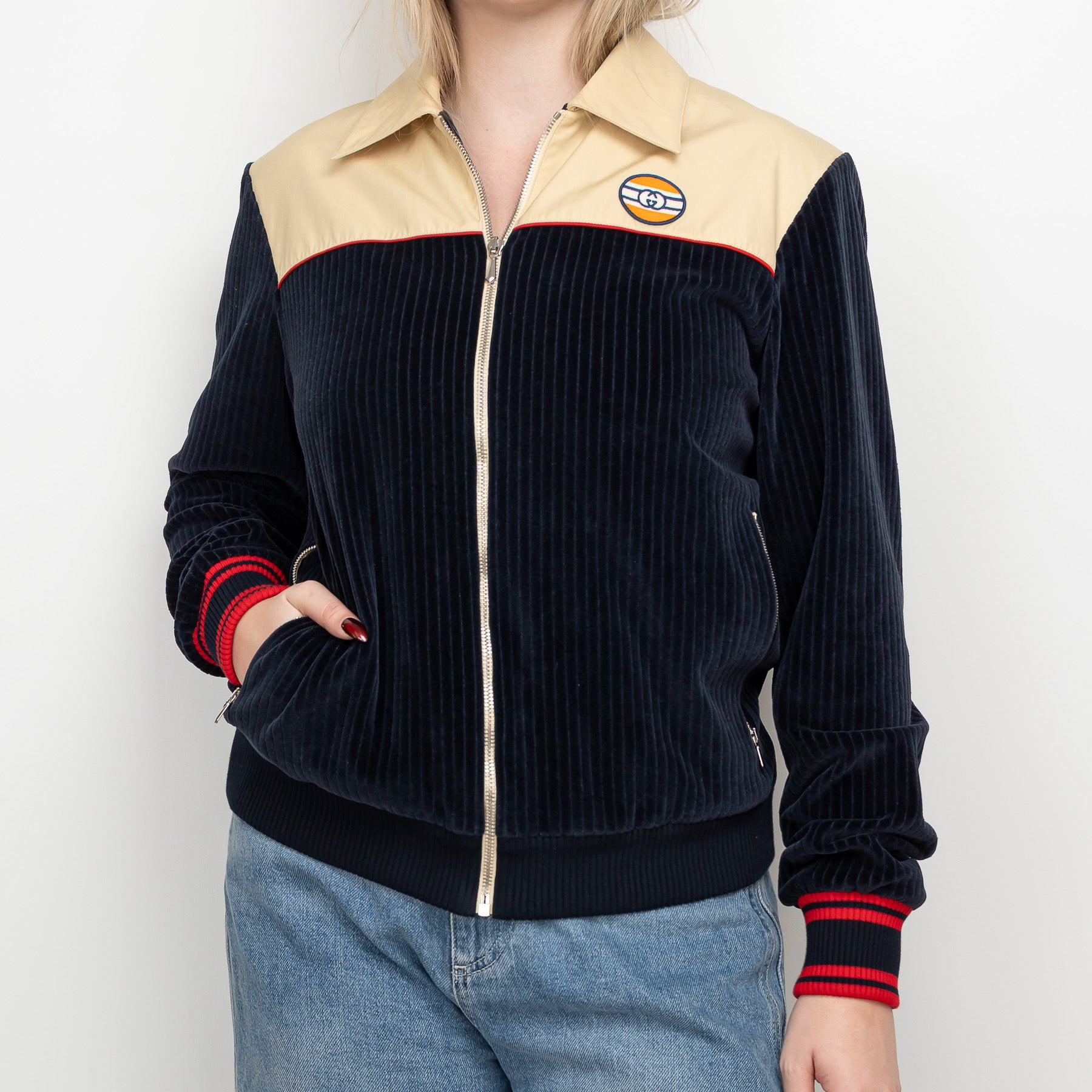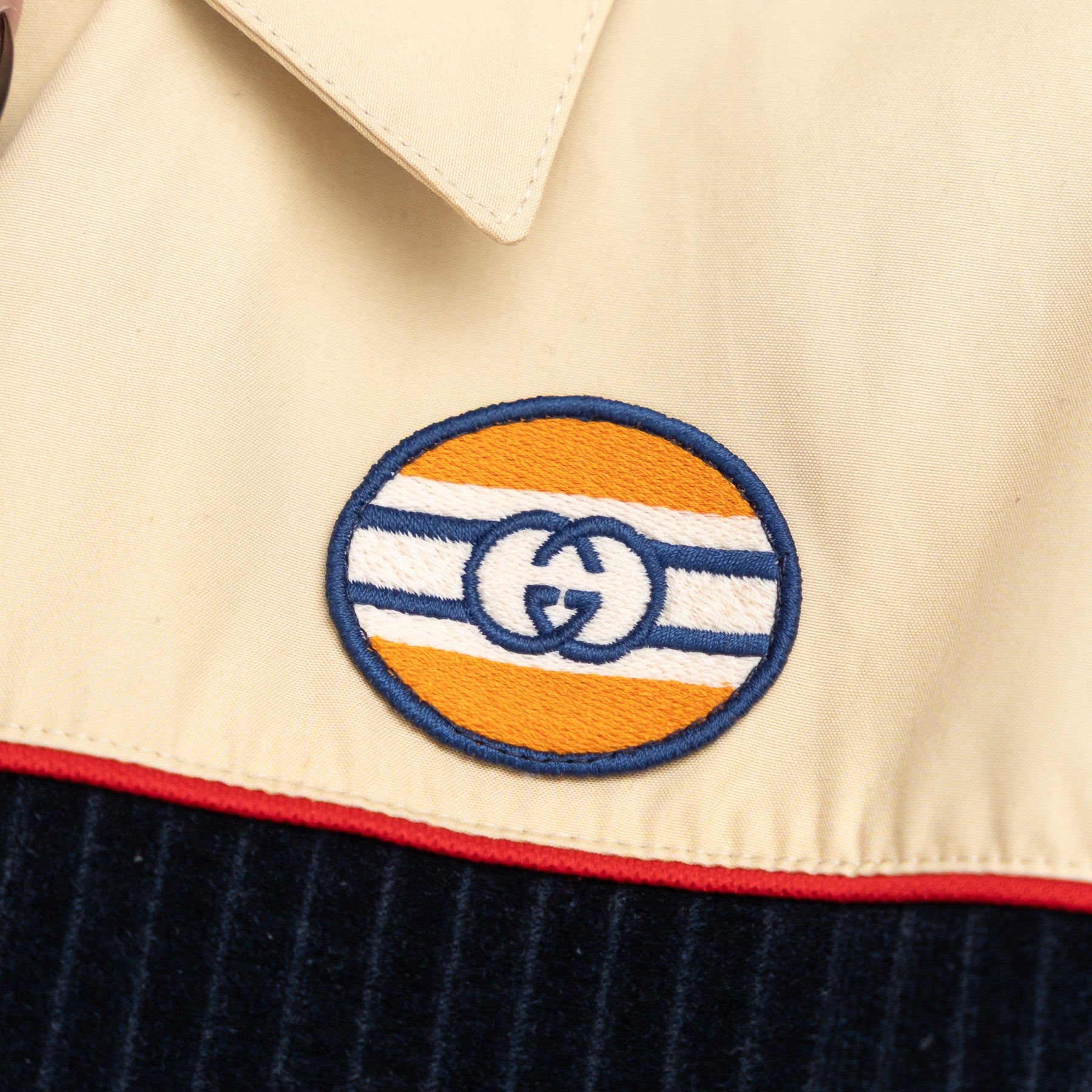 Gucci Beige Cotton and Navy Corduroy Bomber Jacket Size S